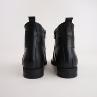 Versatile and effortlessly stylish, the Gamma Ankle Boots by Sala feature a supple black-toned leather upper with elastic side panels for a flexible fit. A low stacked heel, cushioned insole, and side zip make them perfect for all-day comfort and easy wear.