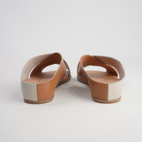 Casual meets chic with the Harli Dark Tan/Almond Leather Slides by Django & Juliette. Crafted from soft leather in a two-tone almond and tan finish, these versatile slides are perfect for effortless everyday wear. The wide crossover straps offer a secure fit, while the cushioned footbed keeps you comfortable whether you’re running errands or heading out for a relaxed evening.