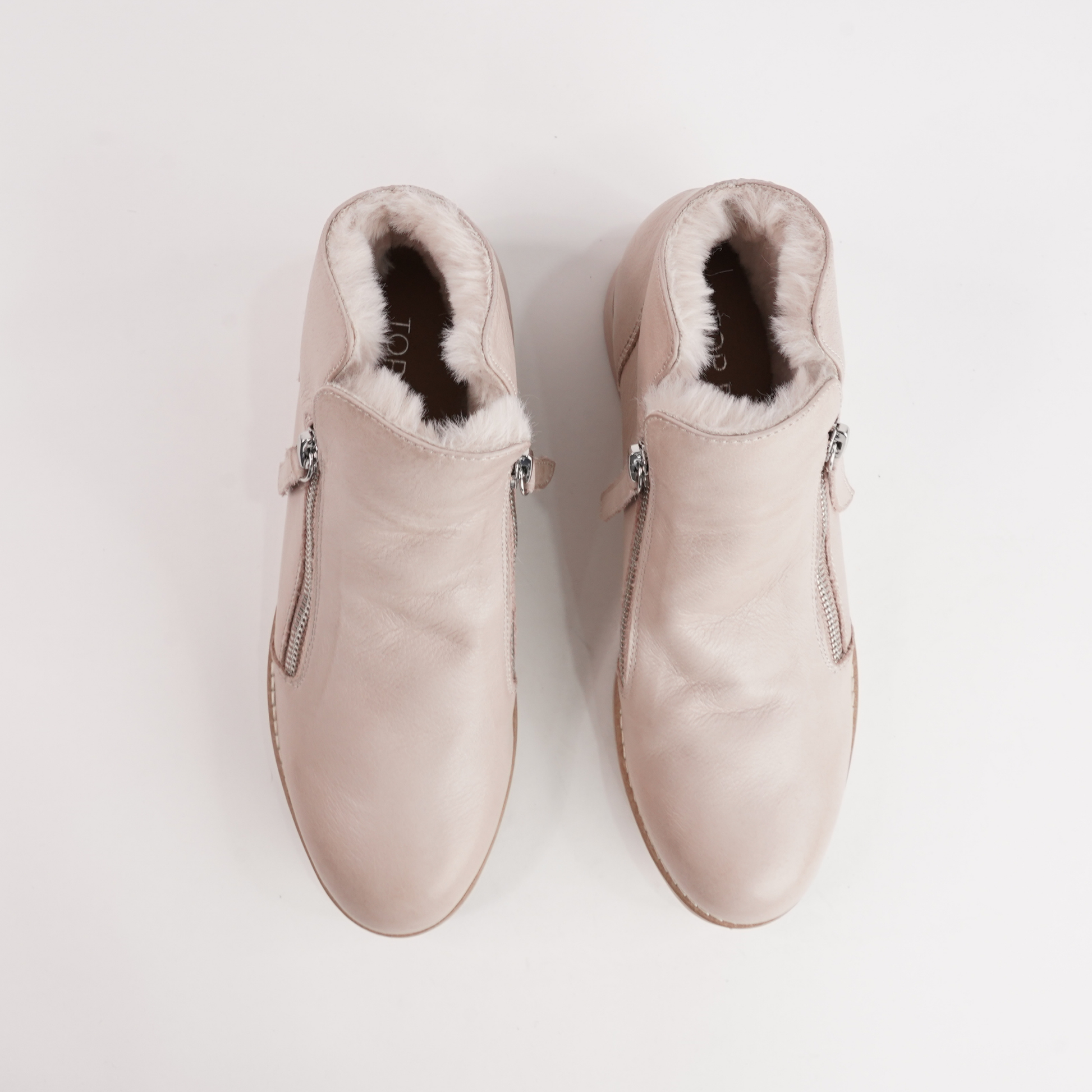 Opal Cappuccino/ Beige Fur Leather Ankle Boots