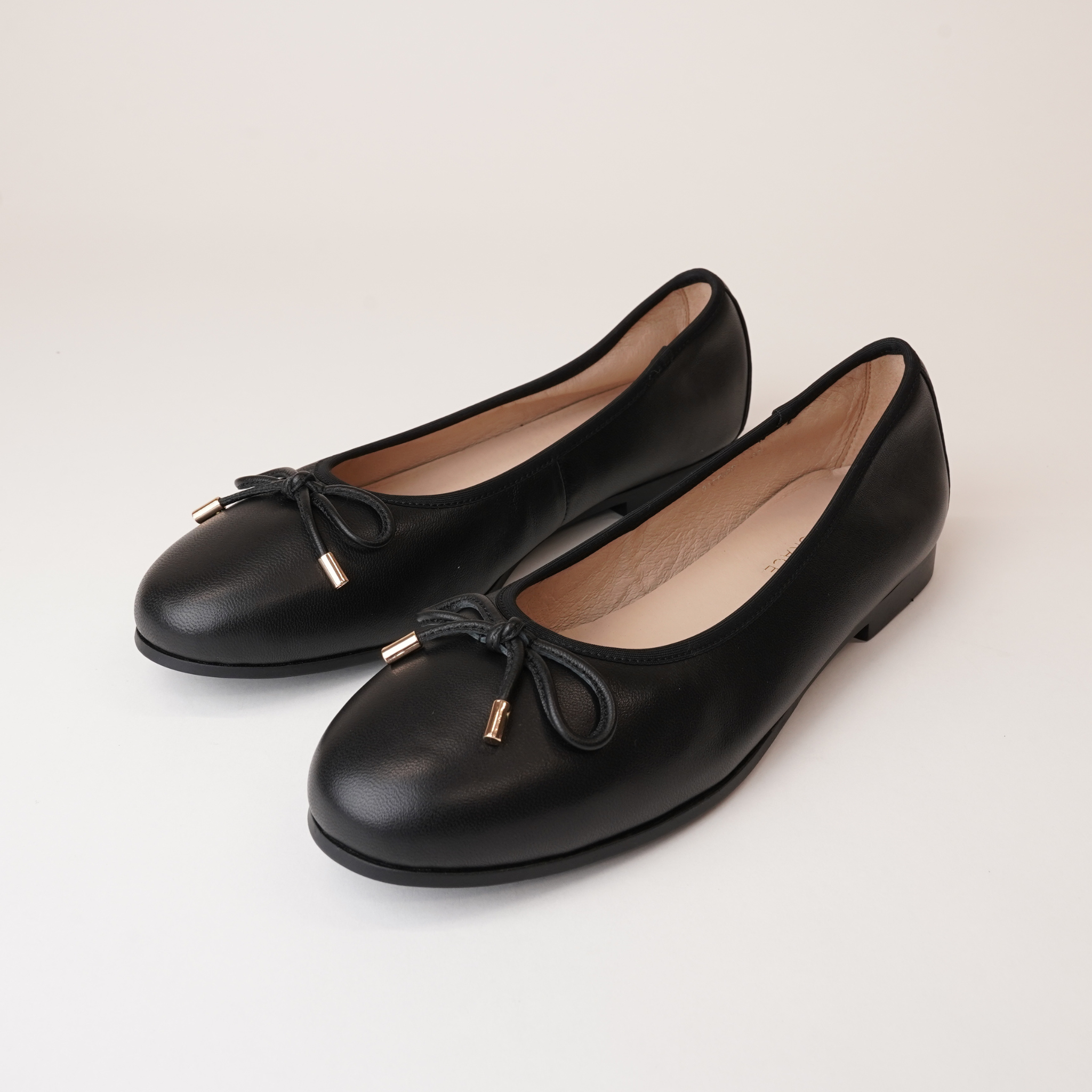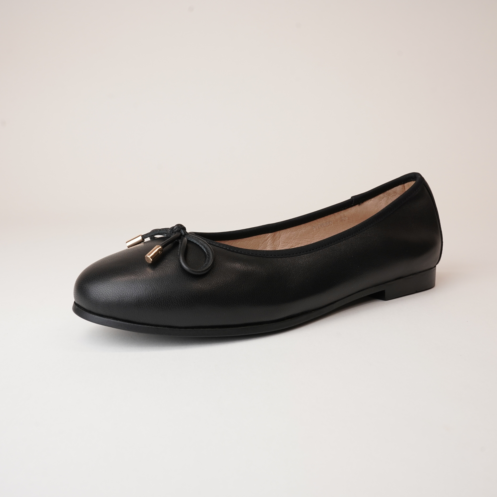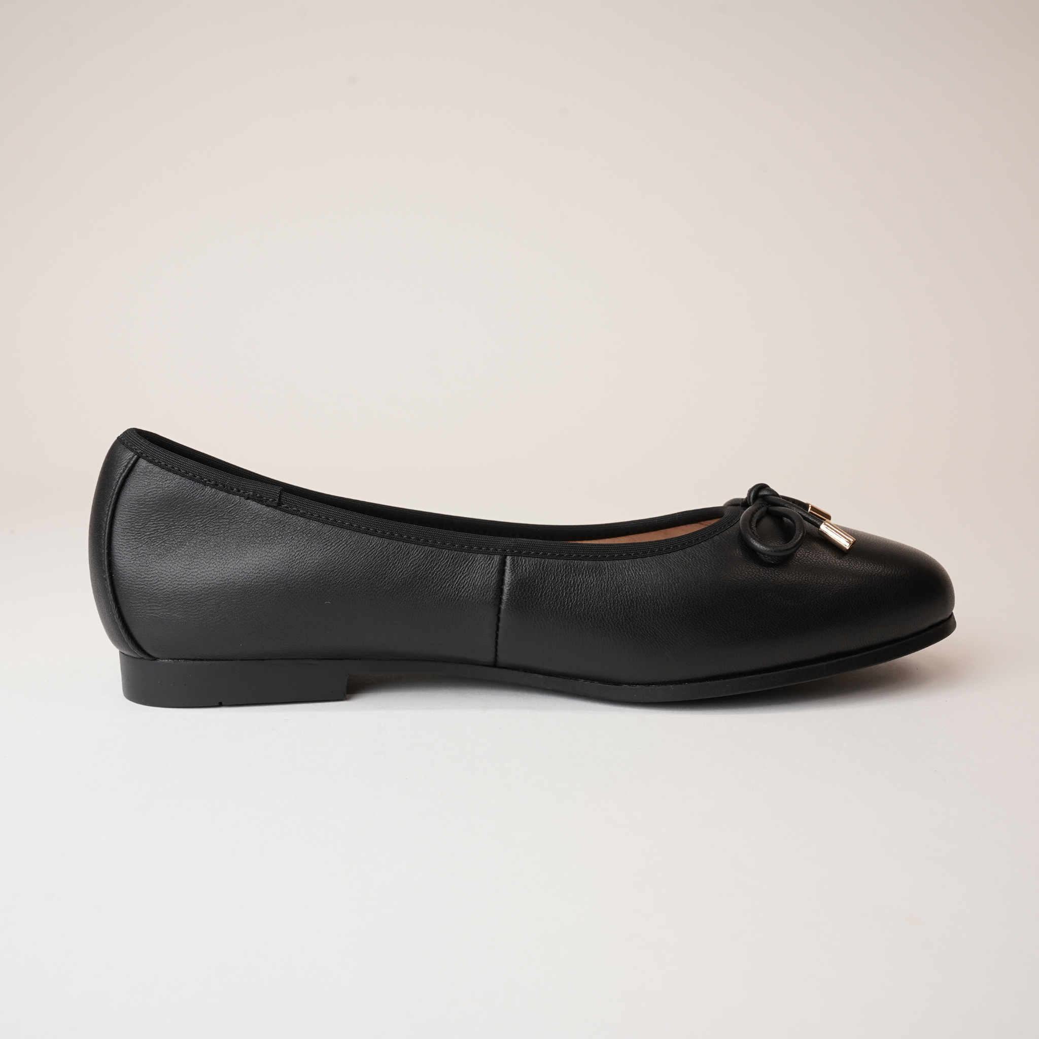 Experience all-day comfort and timeless style with the Picture Black Leather Ballet Flats by With Grace. Crafted from ultra-soft, genuine leather, these flats feel as luxurious as they look. The carefully designed cut provides excellent coverage, ensuring a secure and flattering fit without being too low. A cushioned insole and flexible sole make them perfect for extended wear, while the delicate bow detail with metallic tips adds a subtle, elegant touch. Whether you're heading to the office, running errands, or dressing up for a casual outing, these flats are your go-to for effortless style and unbeatable comfort.