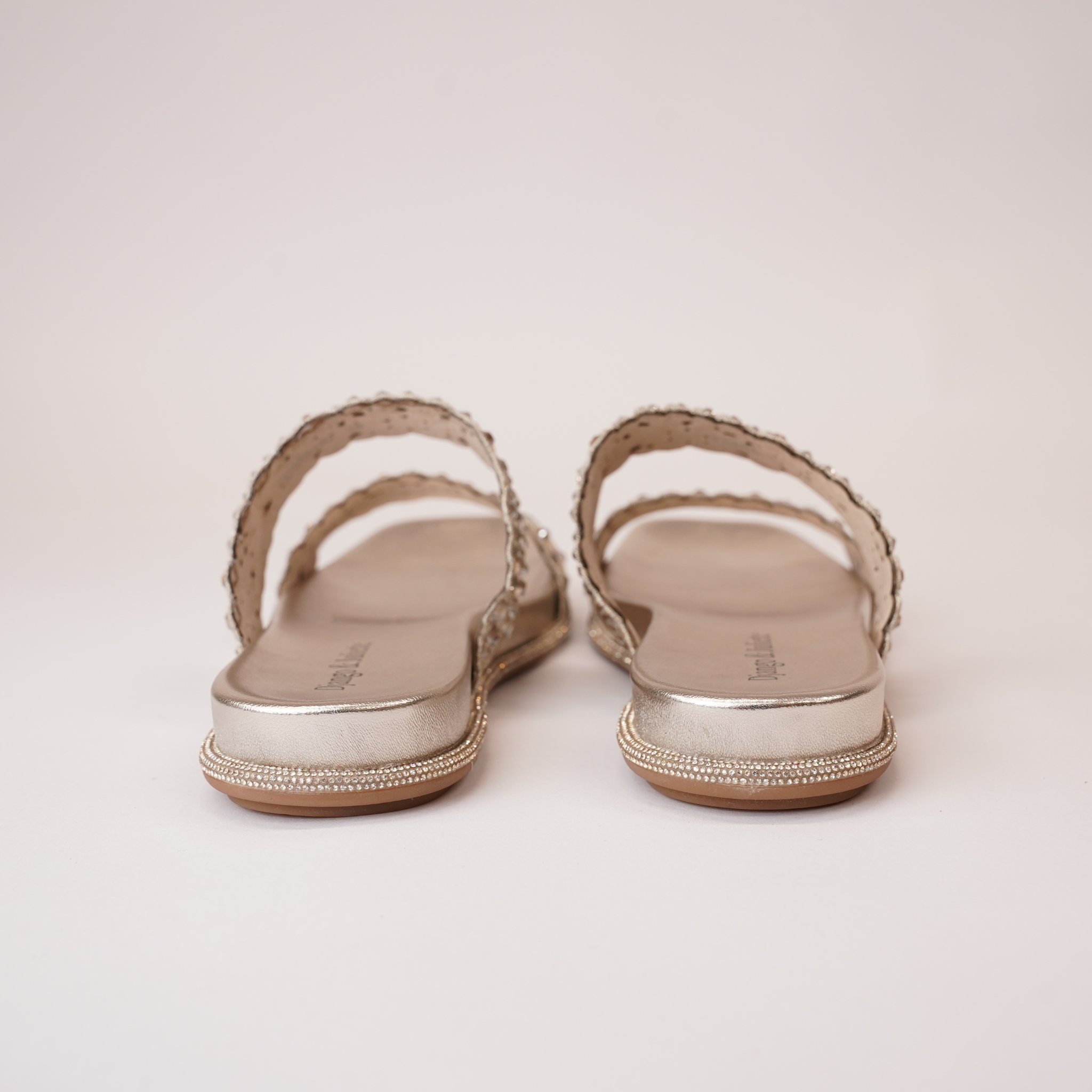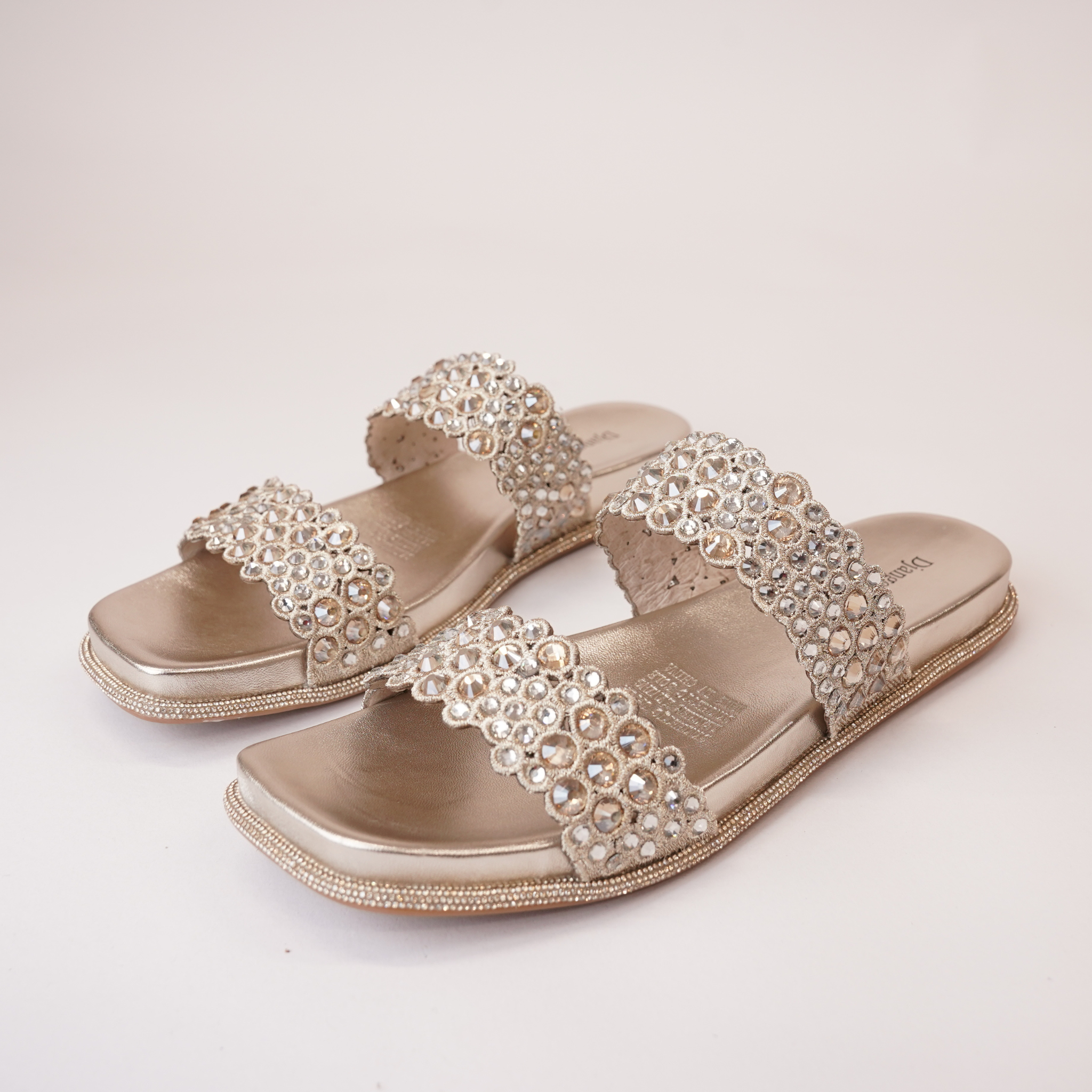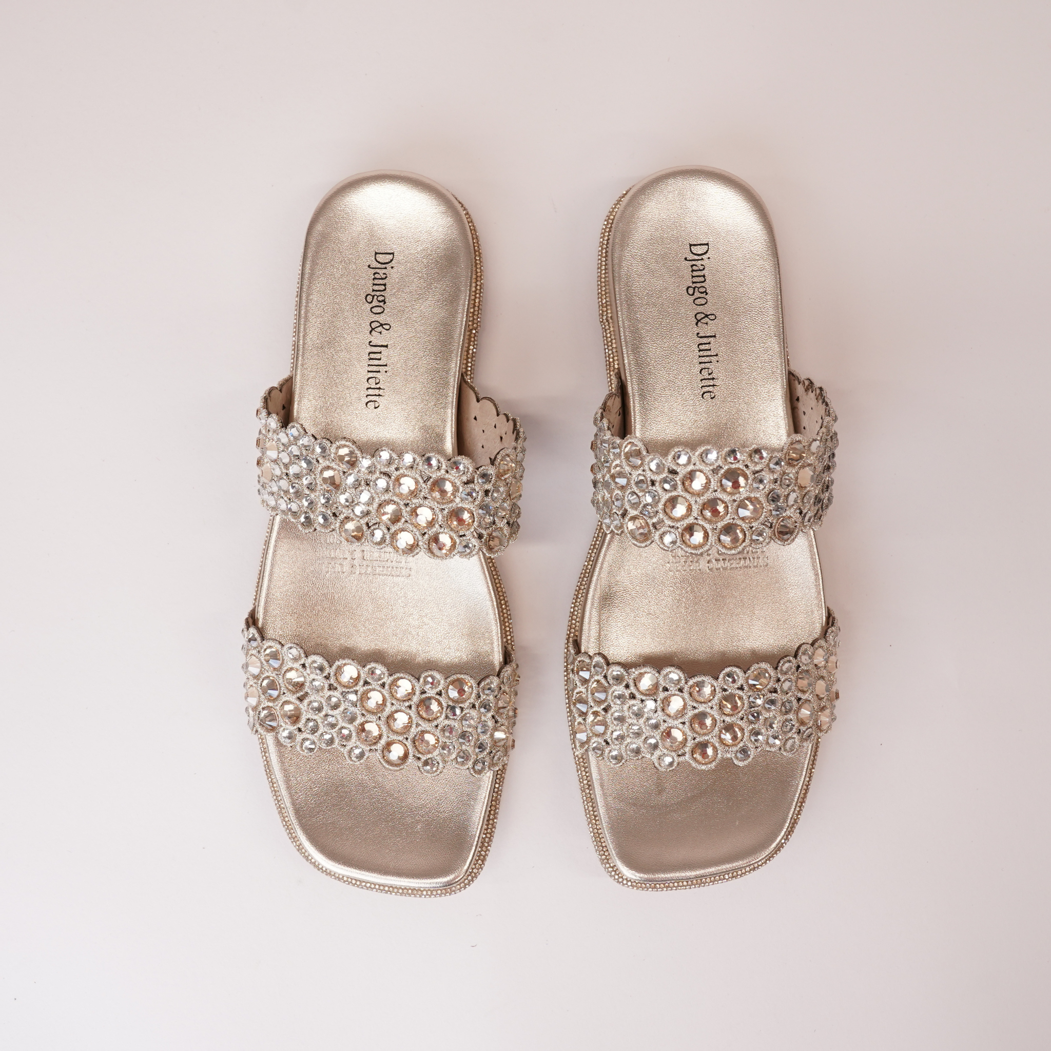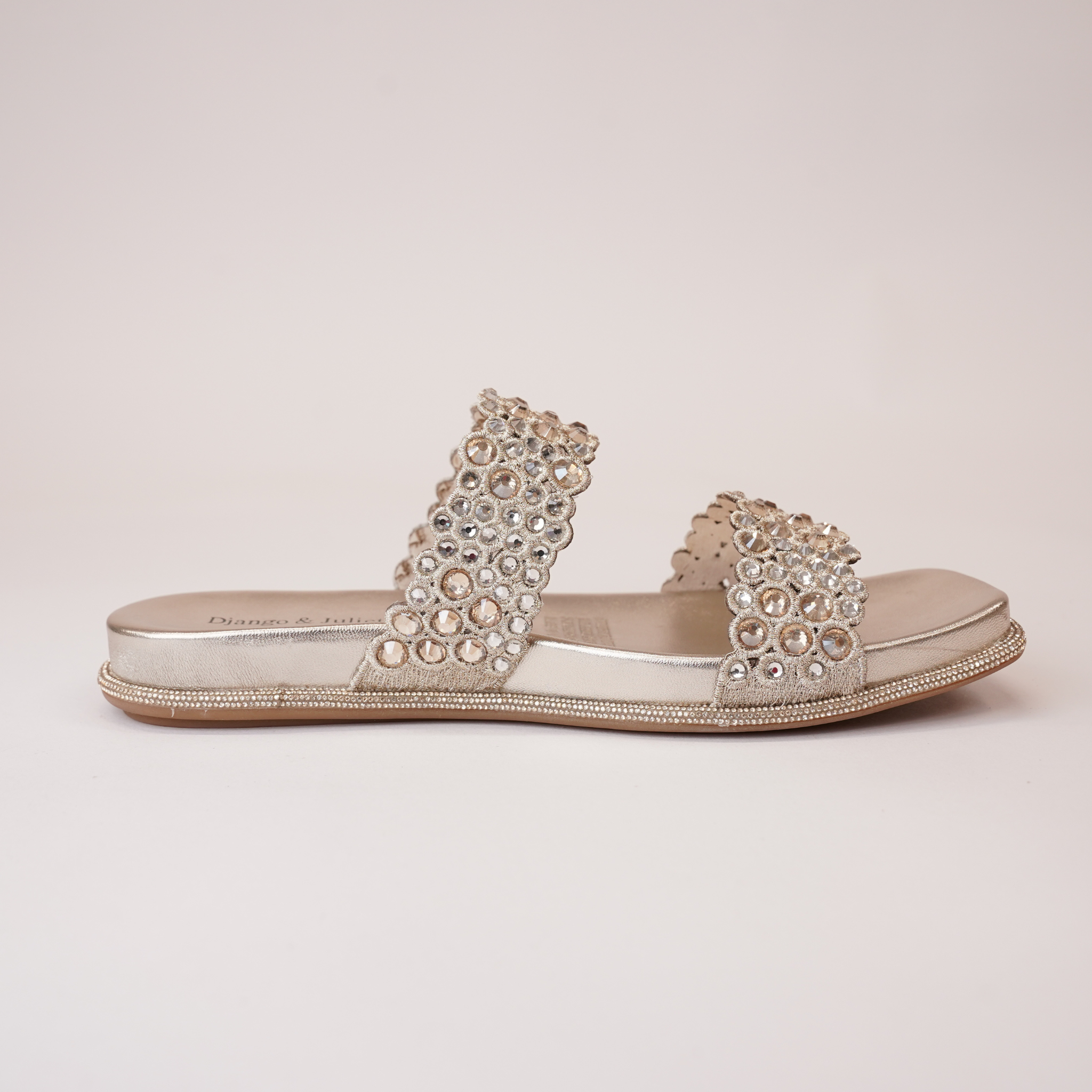 Brighten up your summer style with Yerba Gold Multi Slides by Django &Juliette! Crafted with a synthetic upper, leather lining, and a square toe, these slides are both comfortable and stylish. The jewel-encrusted upper straps add a touch of sparkle to any outfit. Step into the sunshine with Yerba Bright Multi Slides!