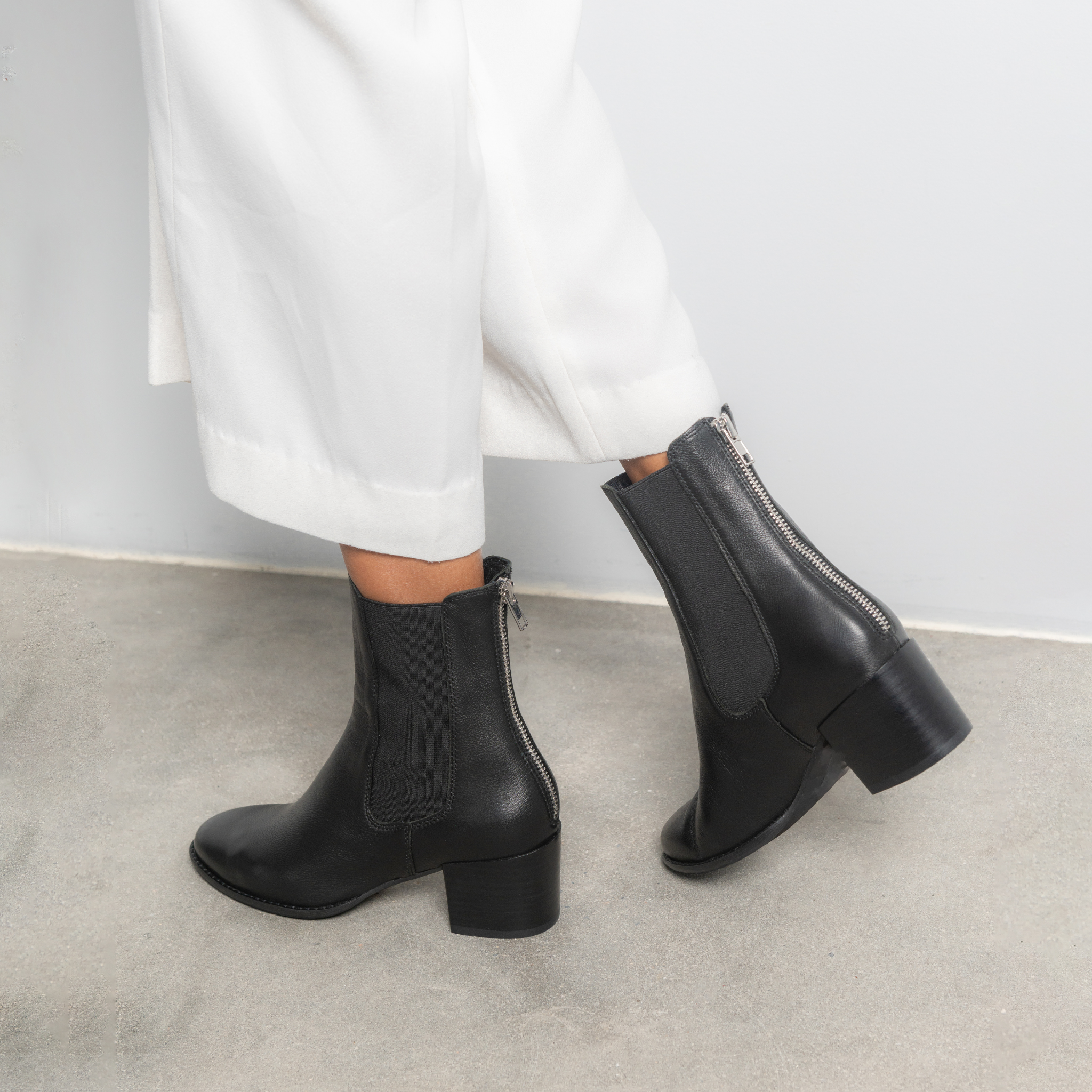 Mycah Black Leather Ankle Boots