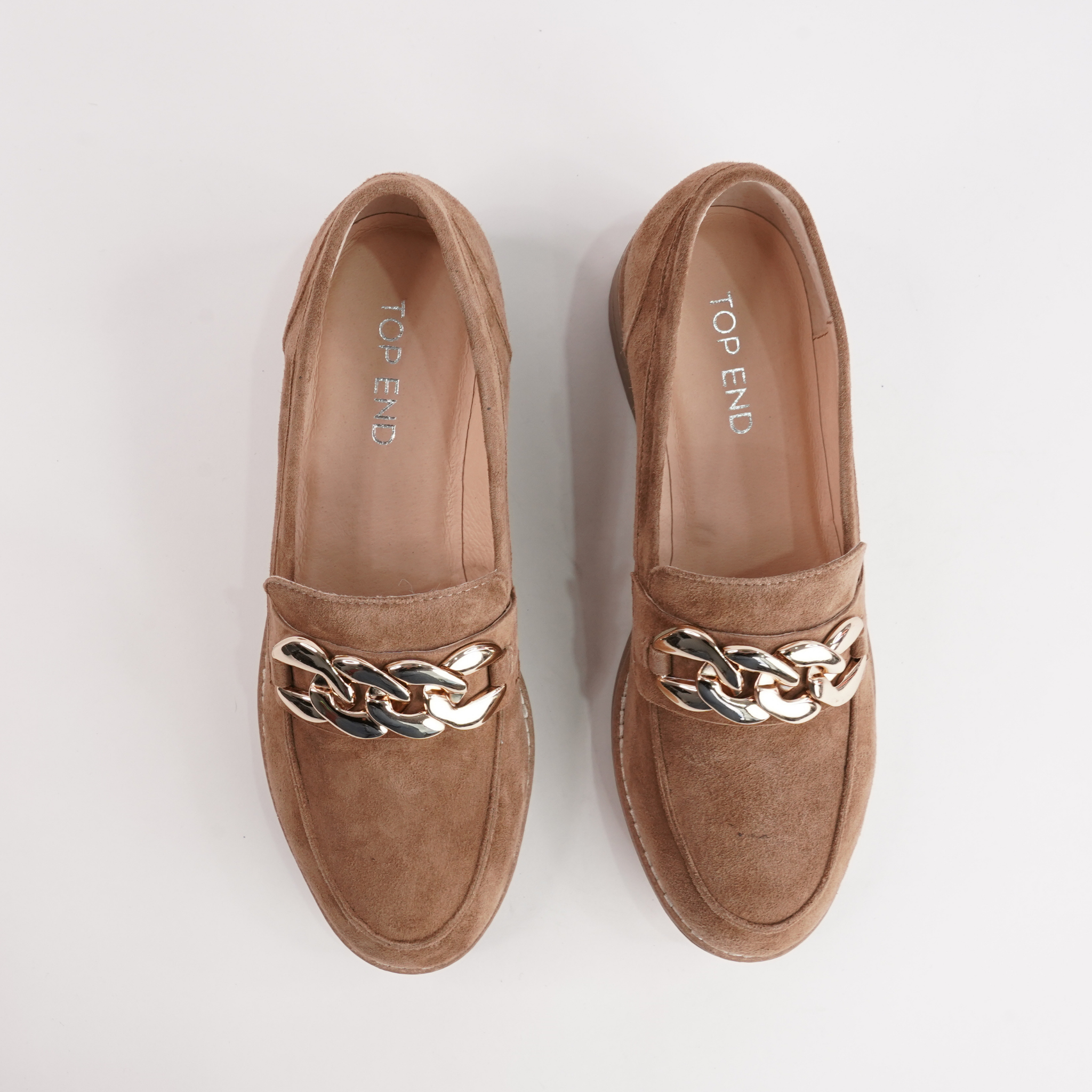 Step up your everyday with the Top End Ozama loafers. Crafted from plush light choc suede, this chic slip-on features a bold gold chain detail and a cushioned sole for all-day comfort and effortless polish.