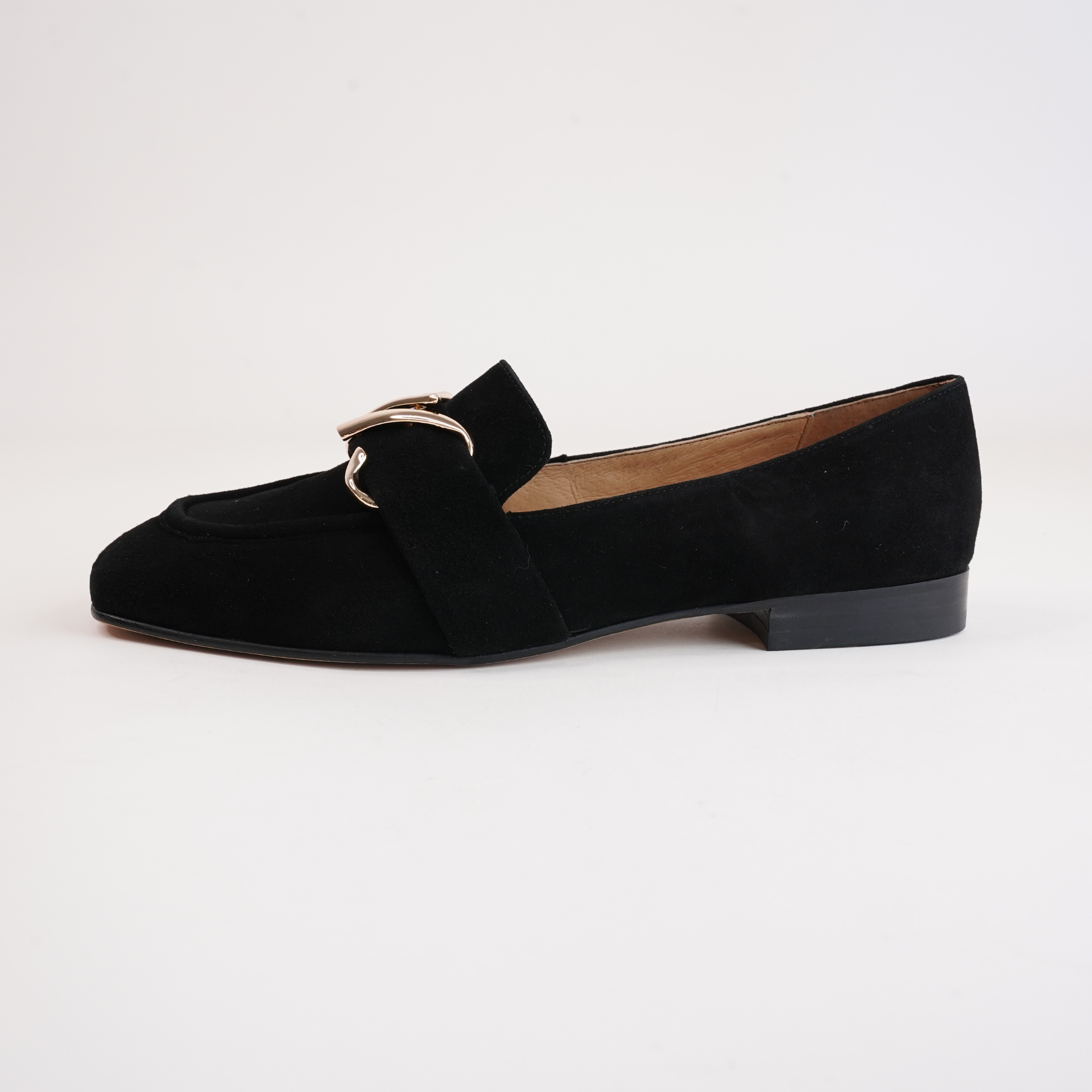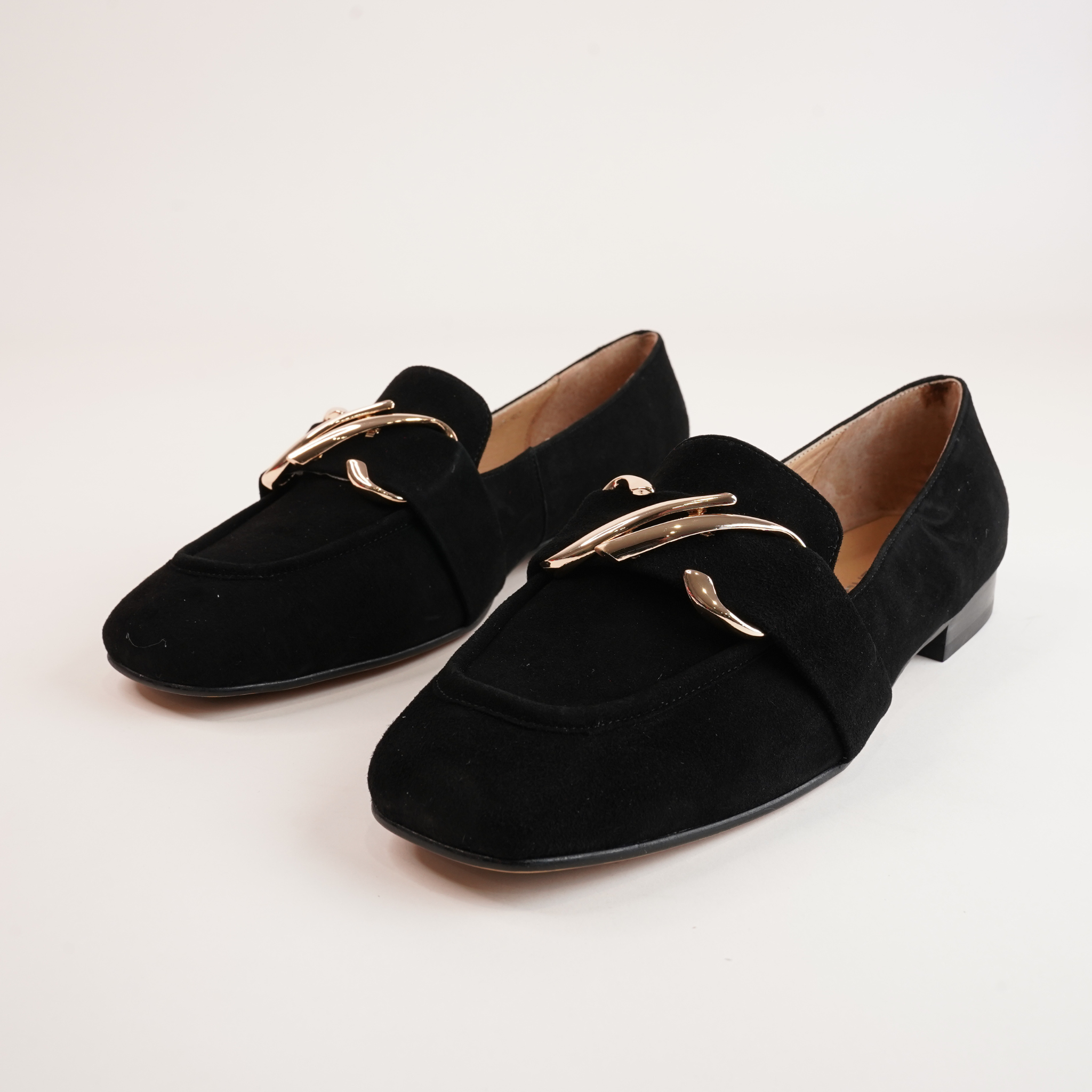 Effortlessly refined and endlessly versatile, the Paydie Black Suede Leather Loafers by Top End are a modern staple. Made from luxe black suede, these flats feature a bold square toe and a sculptural gold-toned buckle detail that adds instant polish. Sleek, stylish, and easy to wear—perfect for elevating your everyday looks.
