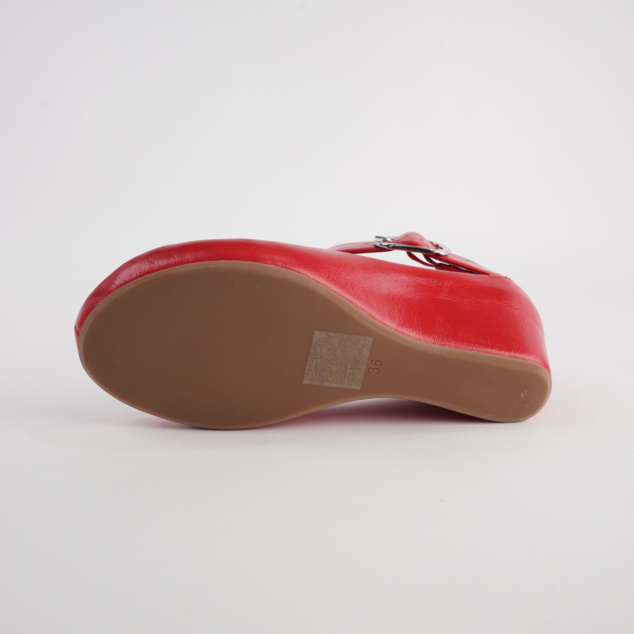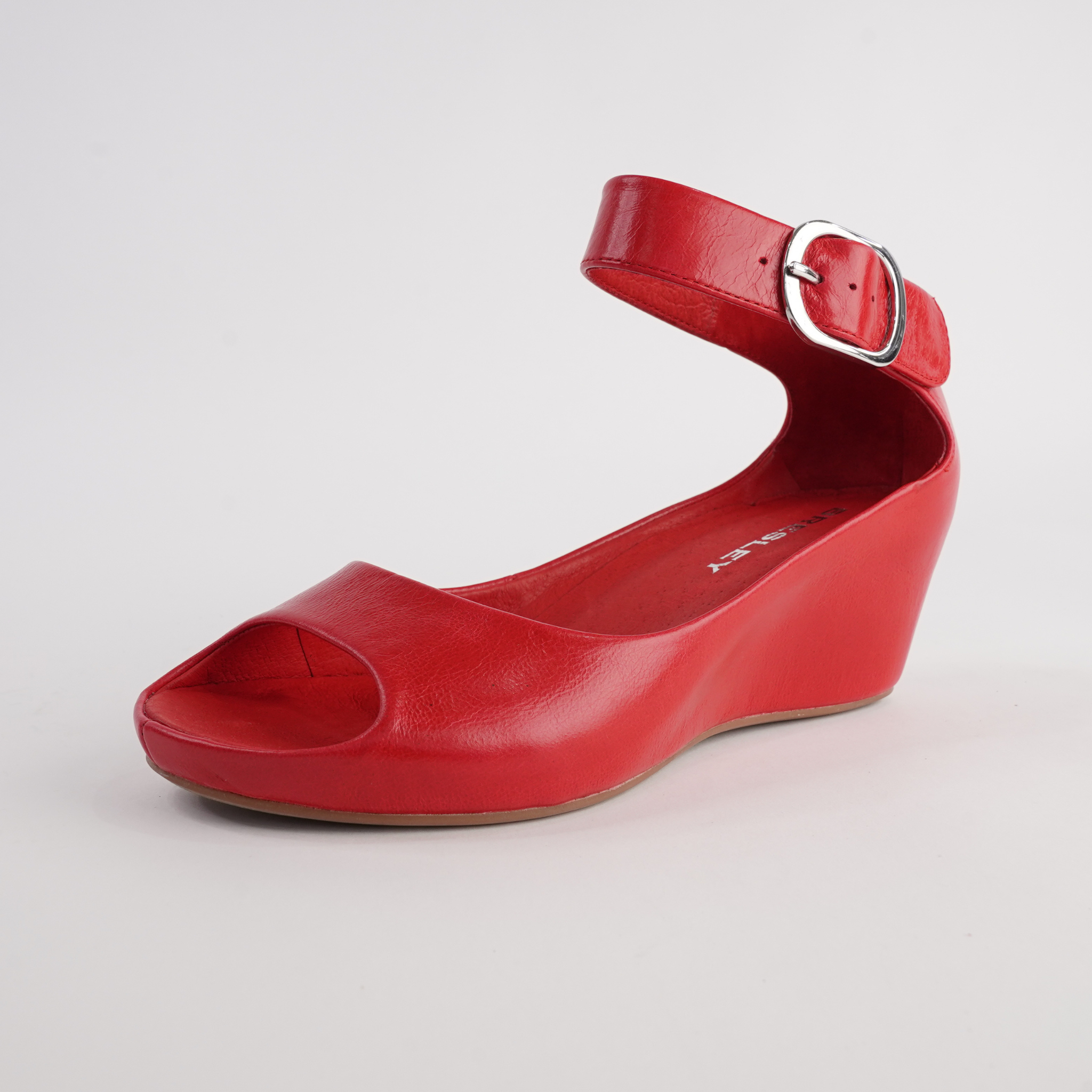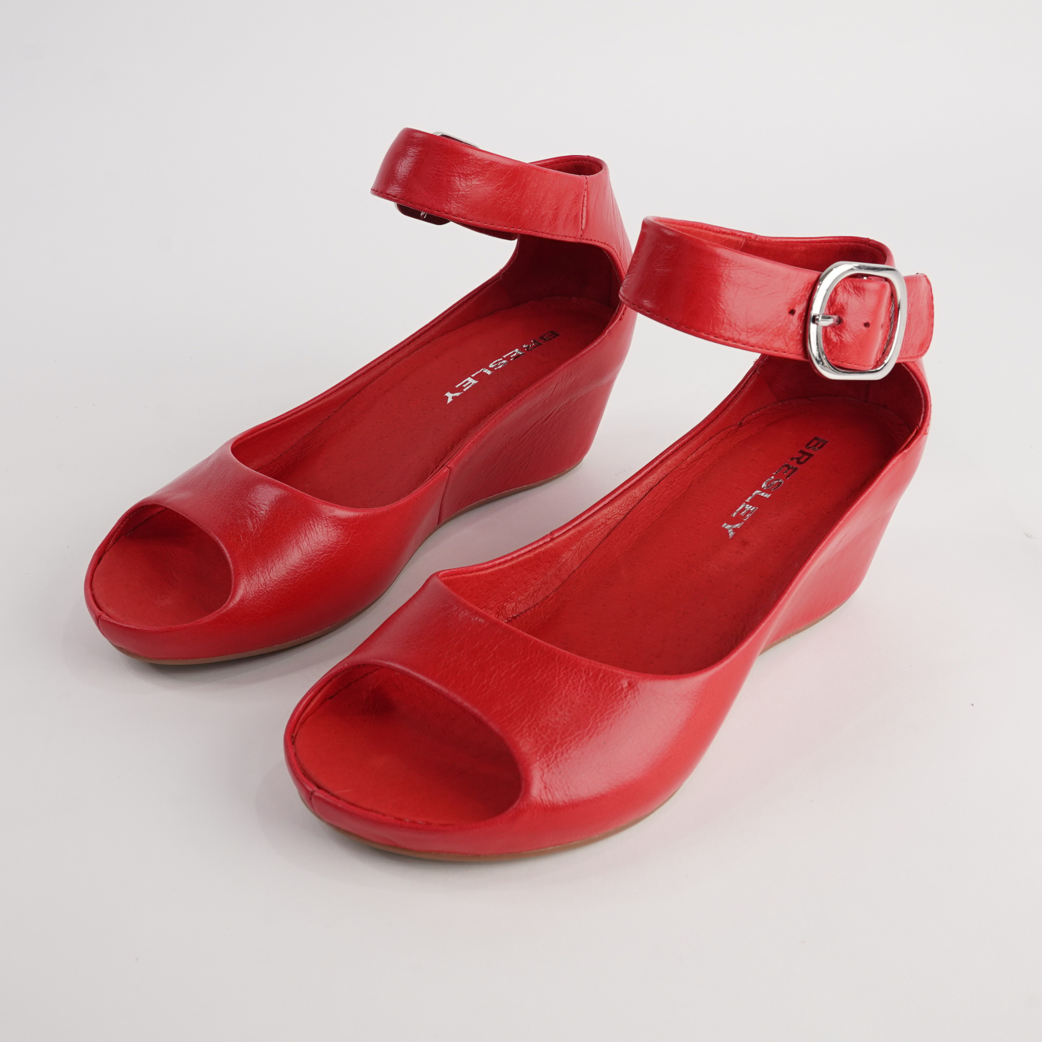 Step into timeless sophistication with the Sangria Wedges by Bresley. Crafted from smooth red leather, these wedges feature a sleek peep-toe design and a secure ankle strap with a polished buckle. The sculpted wedge heel adds height while ensuring comfort, making them the perfect choice for both day and evening wear.