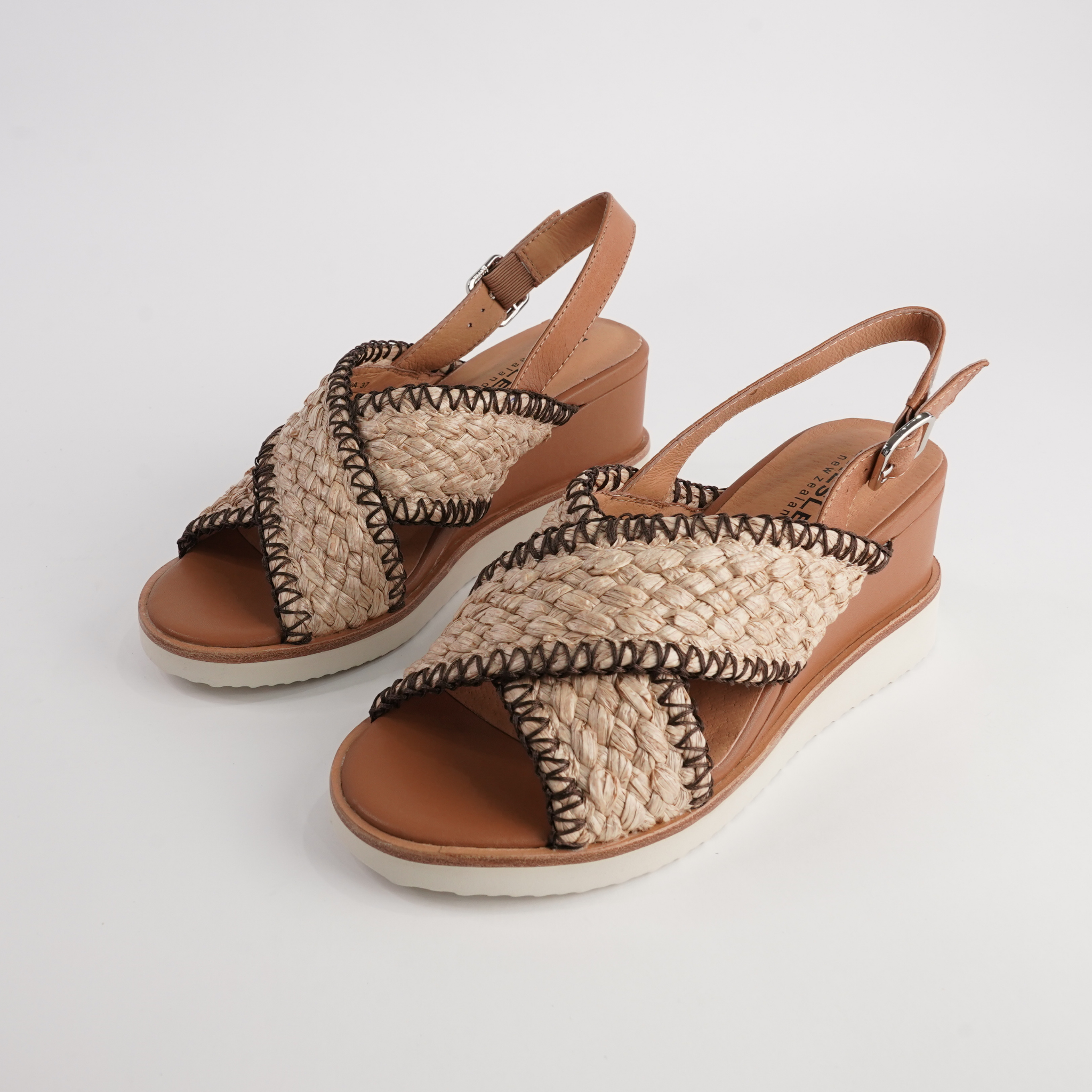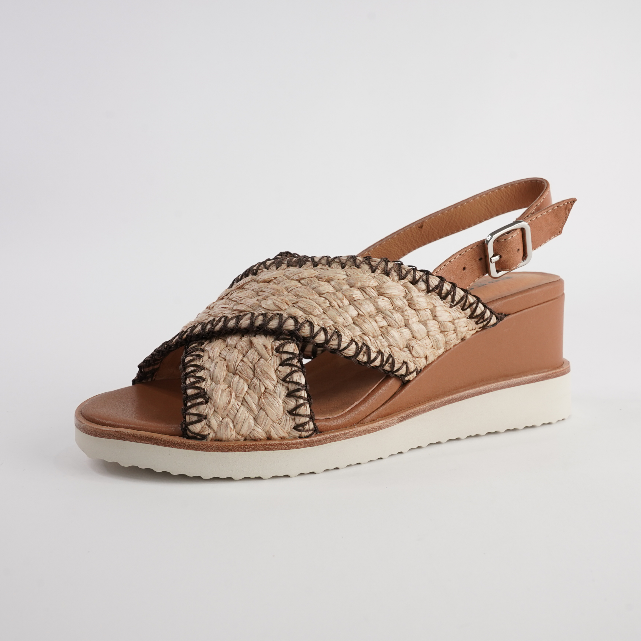 Bring effortless summer charm to your look with the Shayna Sandals by Bresley. Featuring a woven raffia-style crossover upper with bold contrast stitching, these sandals combine texture and style. The adjustable slingback strap ensures a secure fit, while the cushioned footbed and mid-wedge sole keep you comfortable from day to night. Perfect for pairing with everything from flowy dresses to relaxed denim.