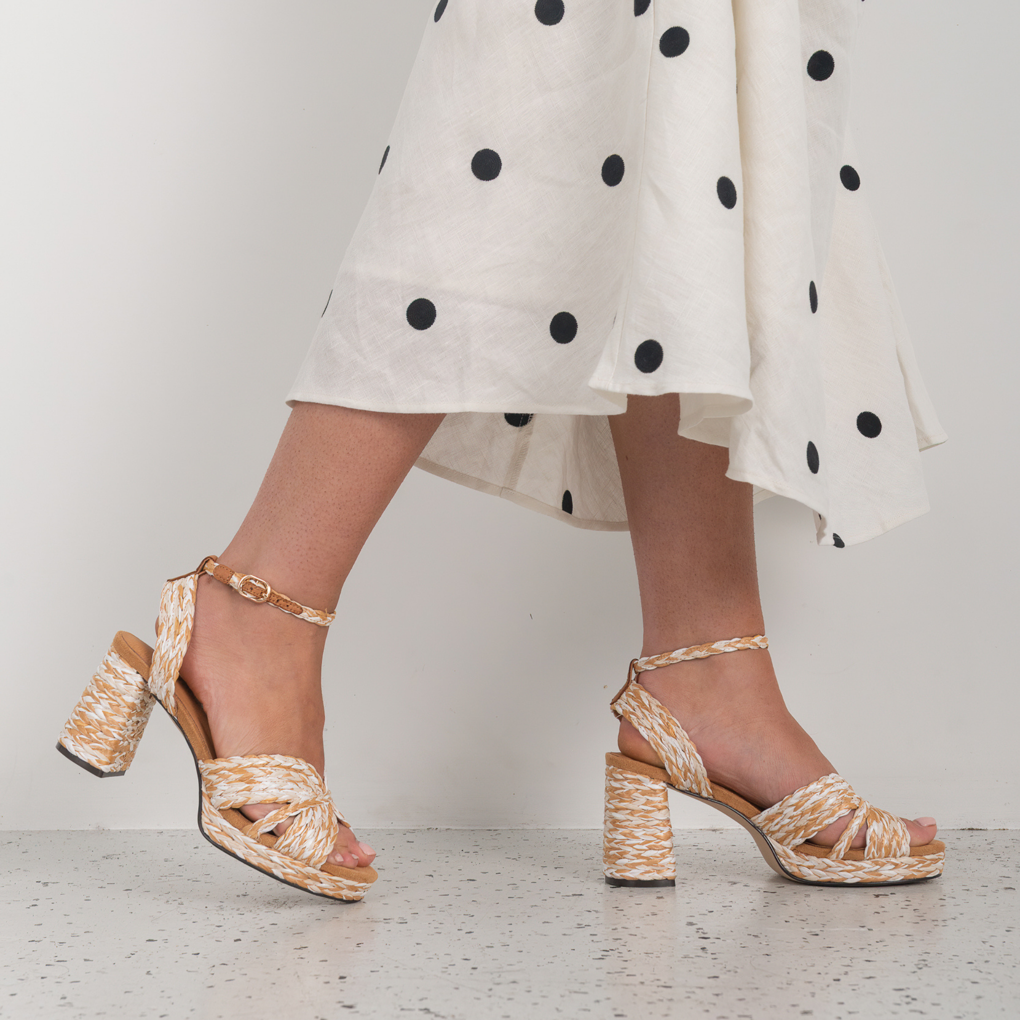 Step into summer with a burst of colour in the Sherrif Heels by Bresley. Designed in a bone multi-tone braided finish, these heels bring playful texture and standout style to any look. The chunky block heel and secure ankle strap provide both height and stability, while the knotted front strap adds a chic, handcrafted touch. Perfect for pairing with dresses, skirts, or wide-leg trousers, Sherrif is your go-to heel for both casual and dressy occasions.