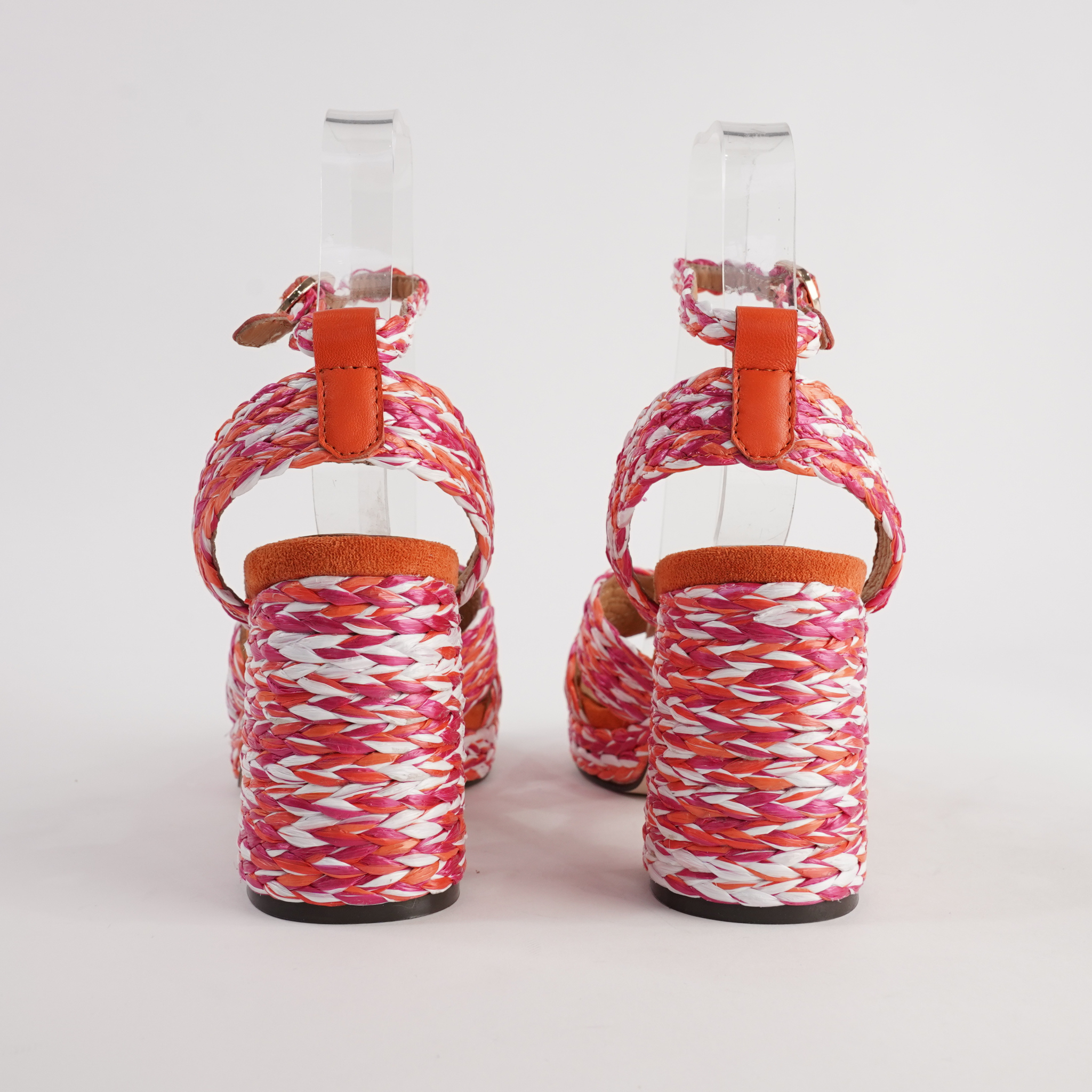 Step into summer with a burst of colour in the Sherrif Heels by Bresley. Designed in a vibrant pink multi-tone braided finish, these heels bring playful texture and standout style to any look. The chunky block heel and secure ankle strap provide both height and stability, while the knotted front strap adds a chic, handcrafted touch. Perfect for pairing with dresses, skirts, or wide-leg trousers, Sherrif is your go-to heel for both casual and dressy occasions.