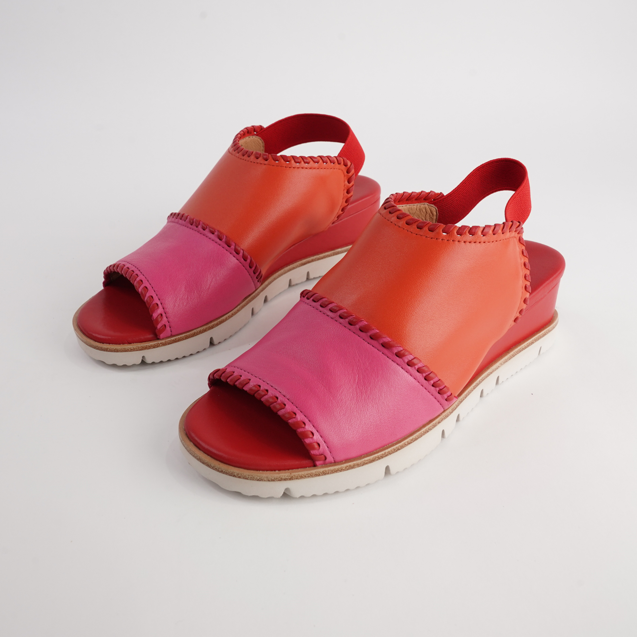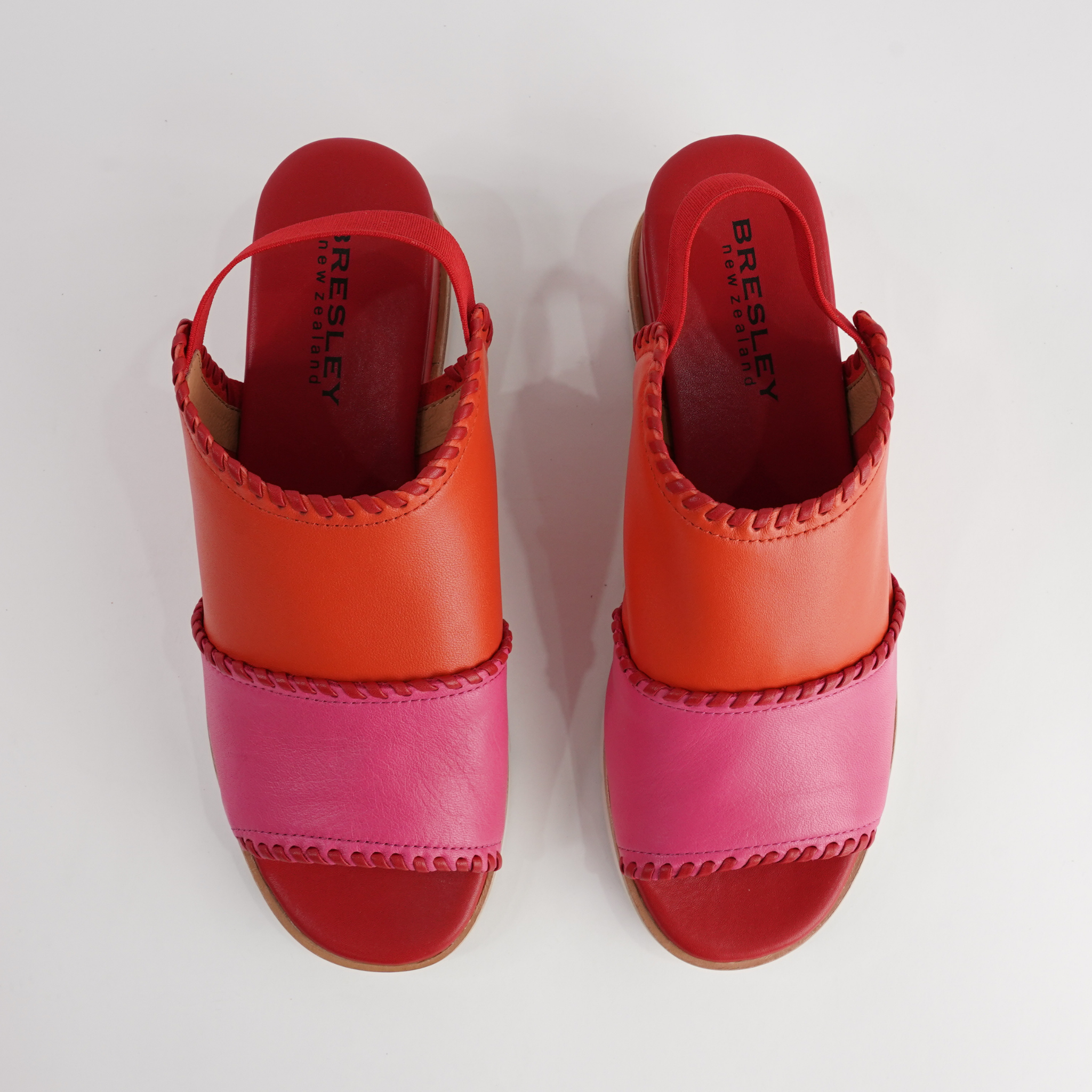 Bright, bold, and undeniably stylish, the Sigma Sandals by Bresley bring a vibrant pop of colour to your summer rotation. Crafted from premium leather in striking pink and red tones, these sandals feature contrast whipstitch detailing for a handcrafted touch. The elasticated slingback ensures a flexible fit, while the cushioned footbed and lightweight wedge sole keep you comfortable all day long.