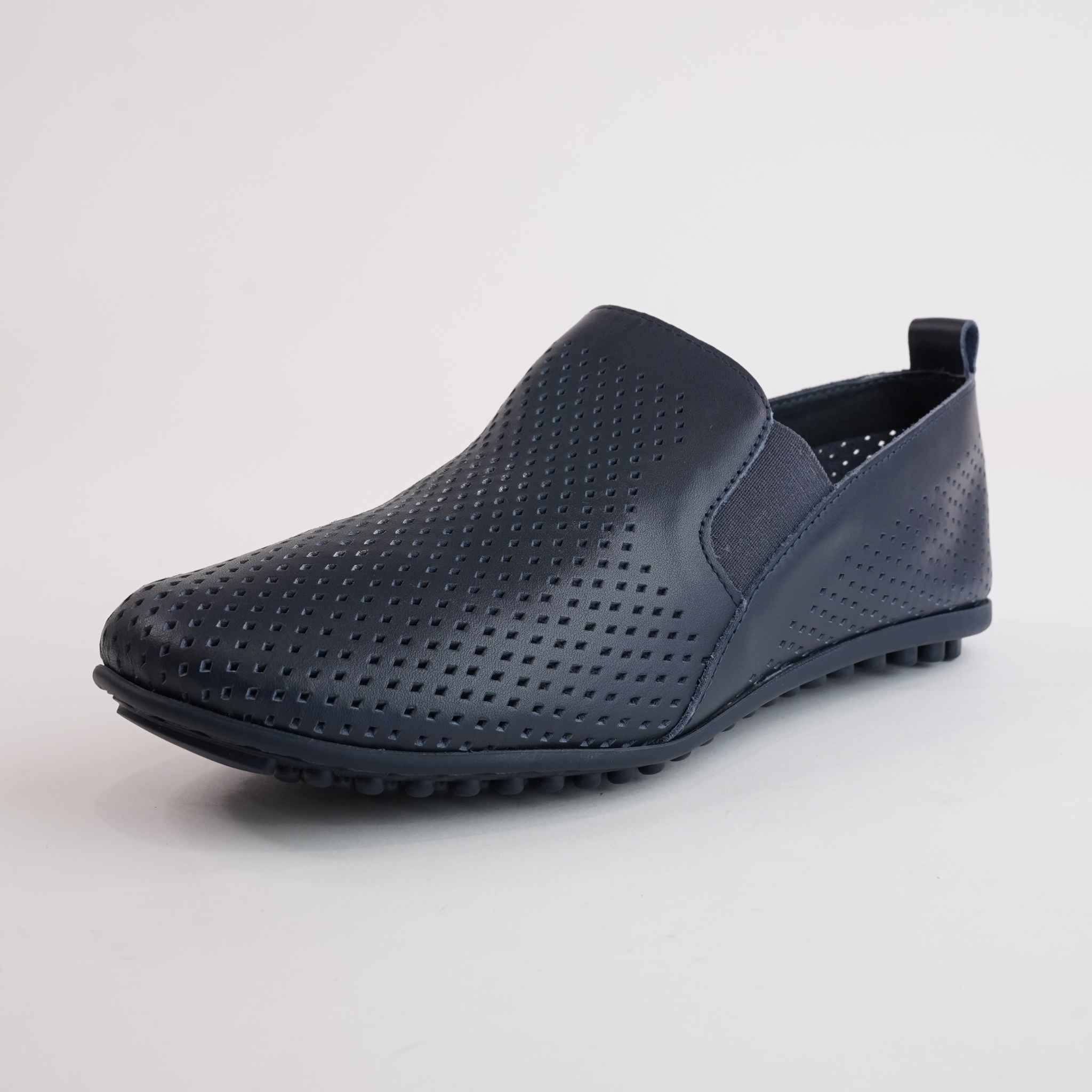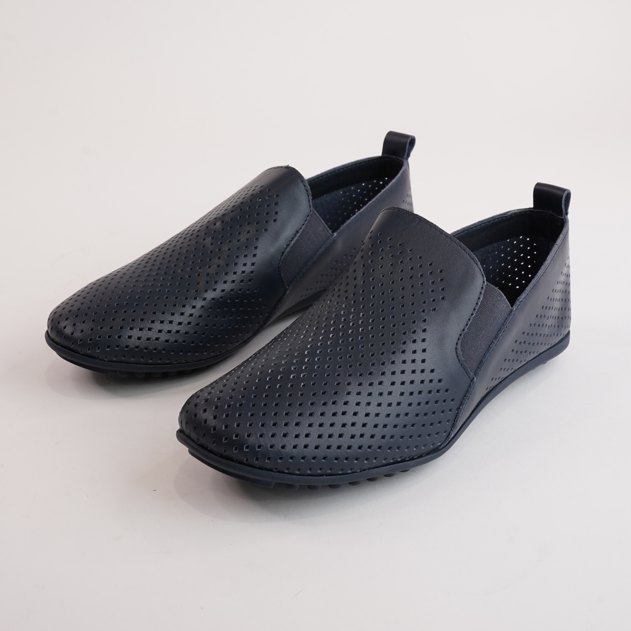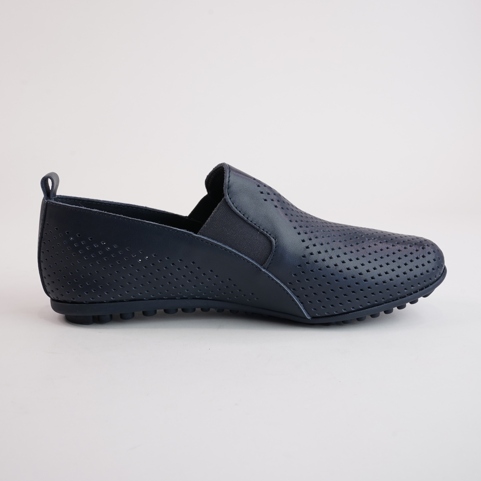 Designed for everyday ease, the Bescara Navy Leather Flats by Django & Juliette blend breathable perforated leather with a lightweight, flexible sole. Slip them on effortlessly with elastic side gussets that provide a secure and comfortable fit, whether you're running errands or strolling through the city.