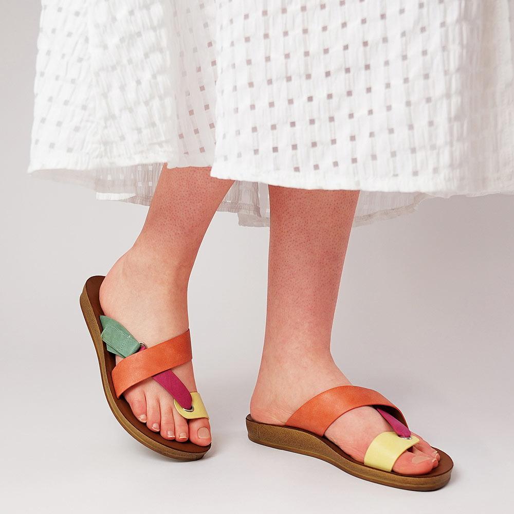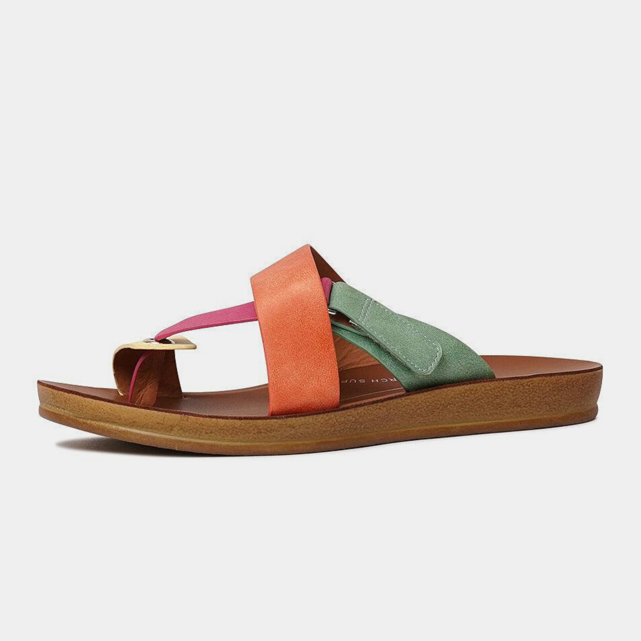 These Bry Colour Combo slides by Los Cabos are set on a comfortable contoured footbed and feature straps in a playful array of pink, green, yellow and orange. We're sure that these playful slides are bound to put a smile on your face even on the hottest, stickiest of days. Whether you're ducking out to grab an ice cream or trying to cool down at the beach, these cute sandals are the perfect pair to wear all summer long.