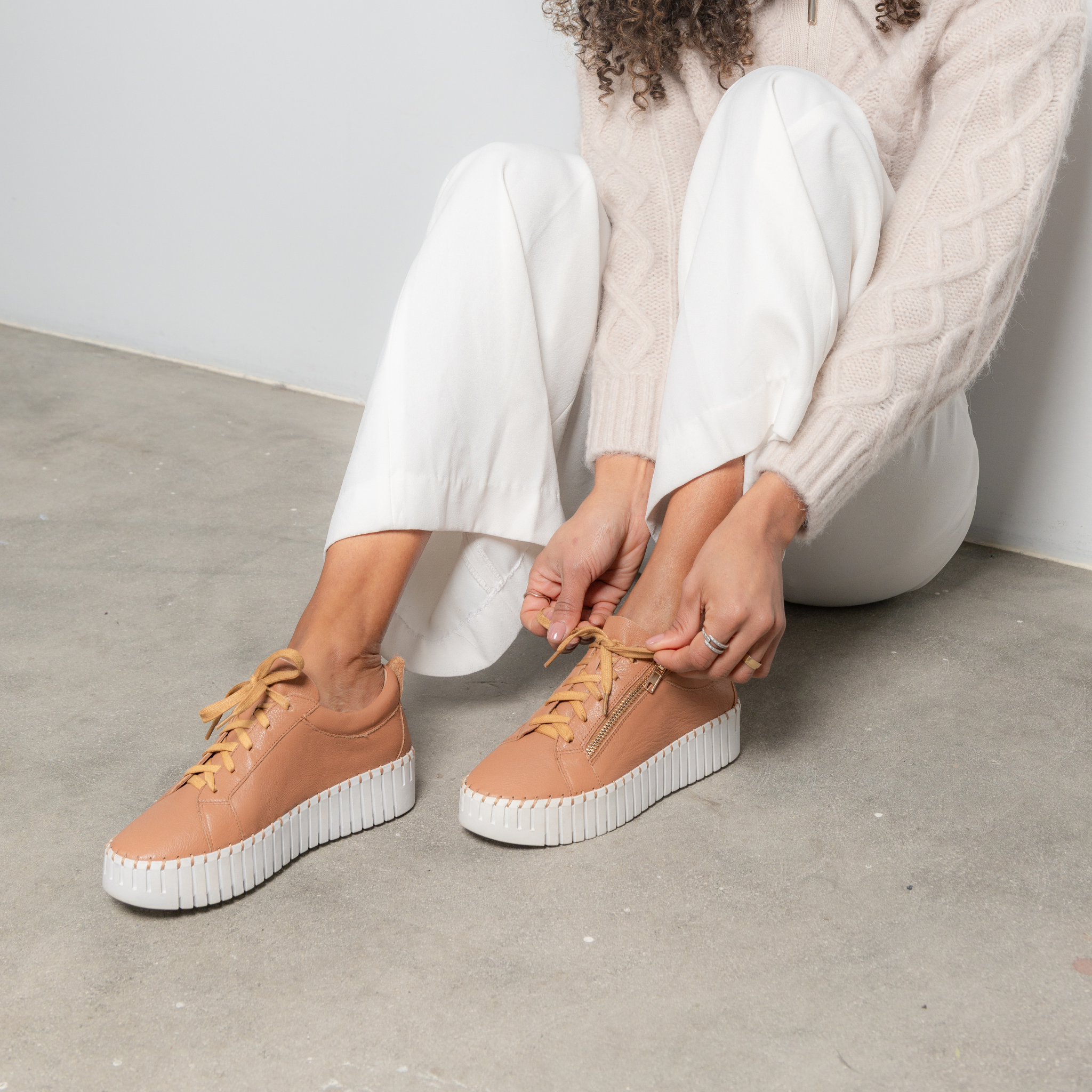 Expertly crafted with a leather upper, Bump Scotch Leather Sneakers by Django & Juliette offer both style and comfort. The cleated platform sole, at a height of 4.4cm, provides excellent traction and support. This versatile shoe features a side fastening zip and lace-up front for easy wear. Plus, the removable, orthotic-friendly insoles offer customizable comfort.