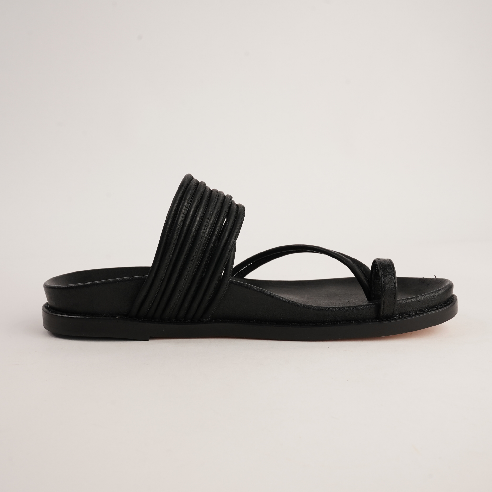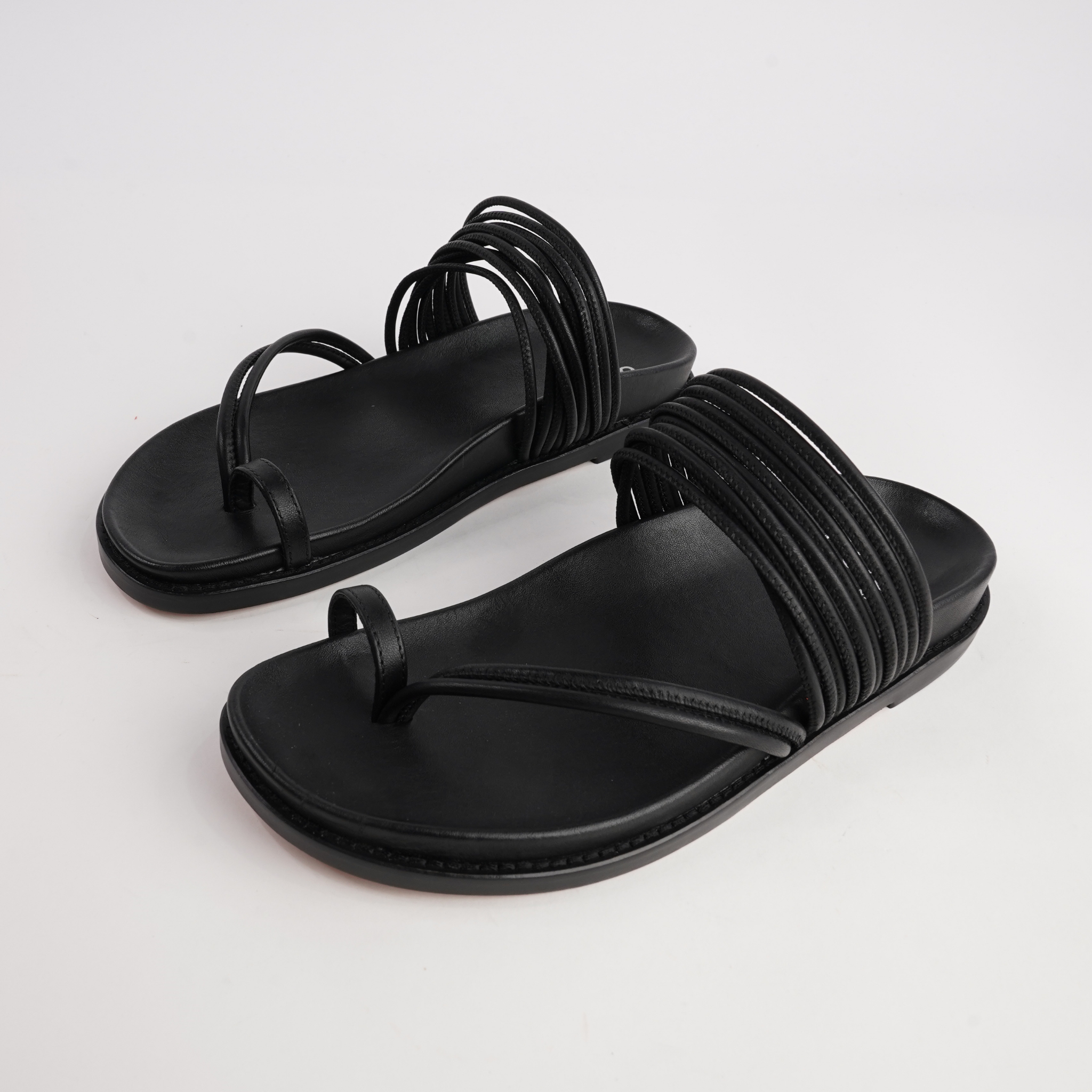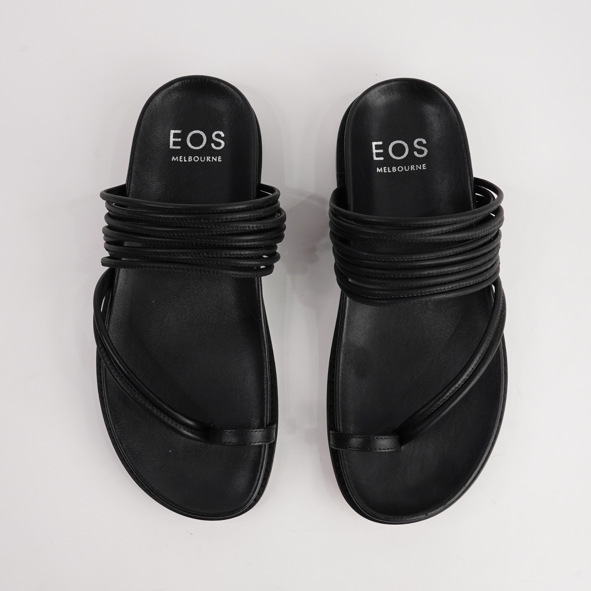 Minimalist in form yet bold in design, the Carmelle Sandals by EOS Footwear are a modern staple for effortless summer dressing. Crafted from supple black leather, this slide features slender rolled straps that wrap gracefully across the foot, creating a statement look with refined edge. A soft leather footbed and flexible sole ensure day-long comfort, making Carmelle the perfect companion for both casual and elevated occasions.