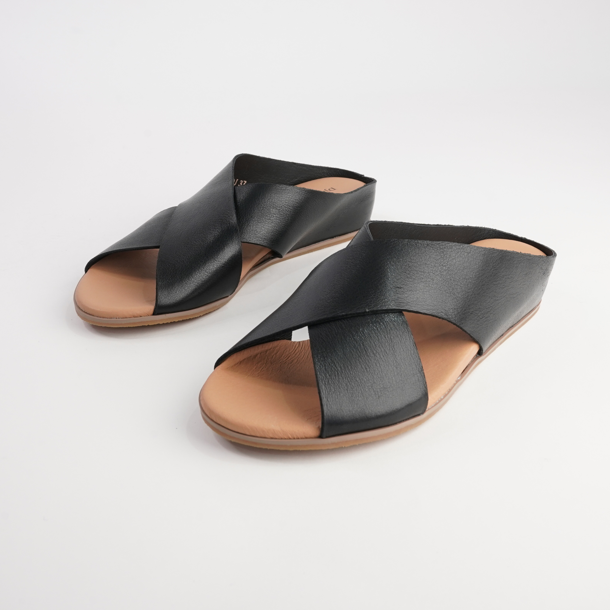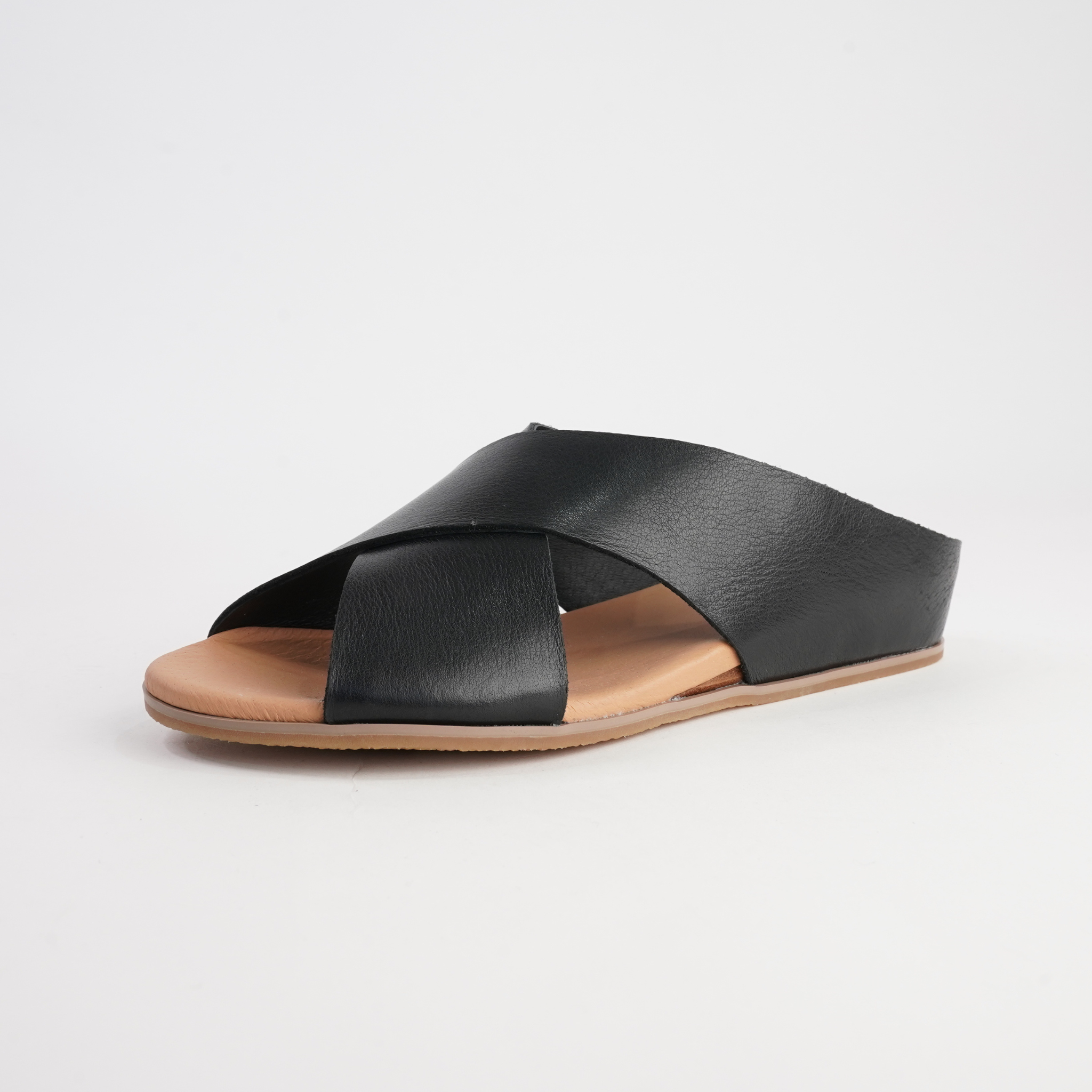 Simple, sleek, and endlessly versatile – the Harli Black Leather Slides by Django & Juliette are the perfect slip-on sandals for effortless everyday wear. Crafted from smooth leather with wide crossover straps, they deliver a secure fit and minimalist style. The cushioned footbed keeps you comfortable from morning coffee runs to summer evenings out.