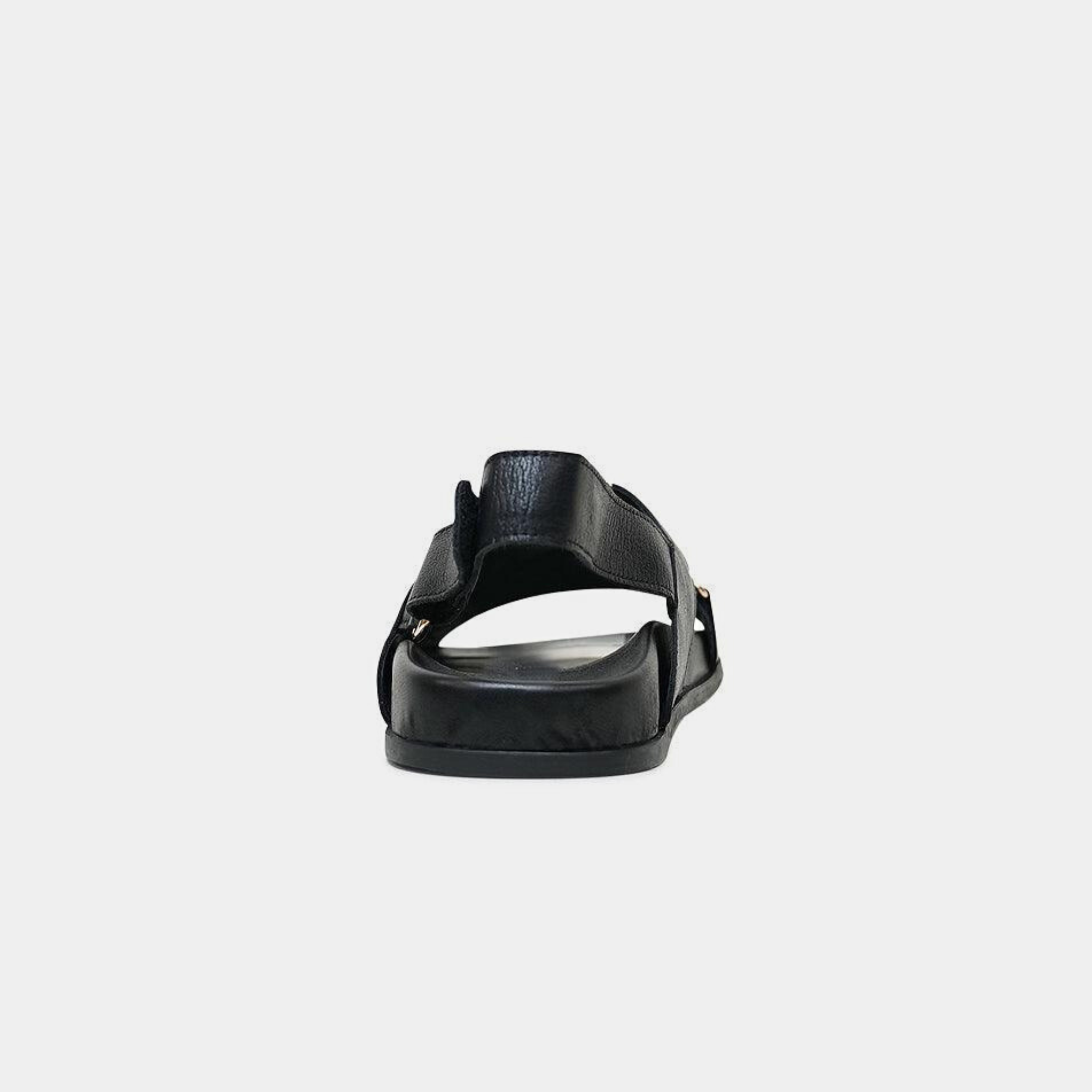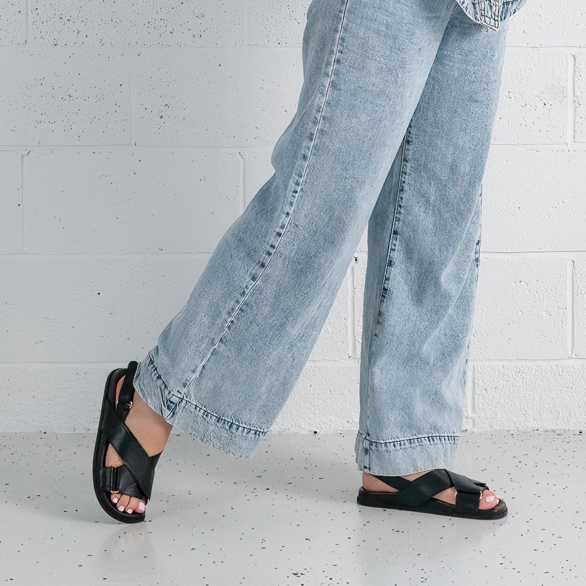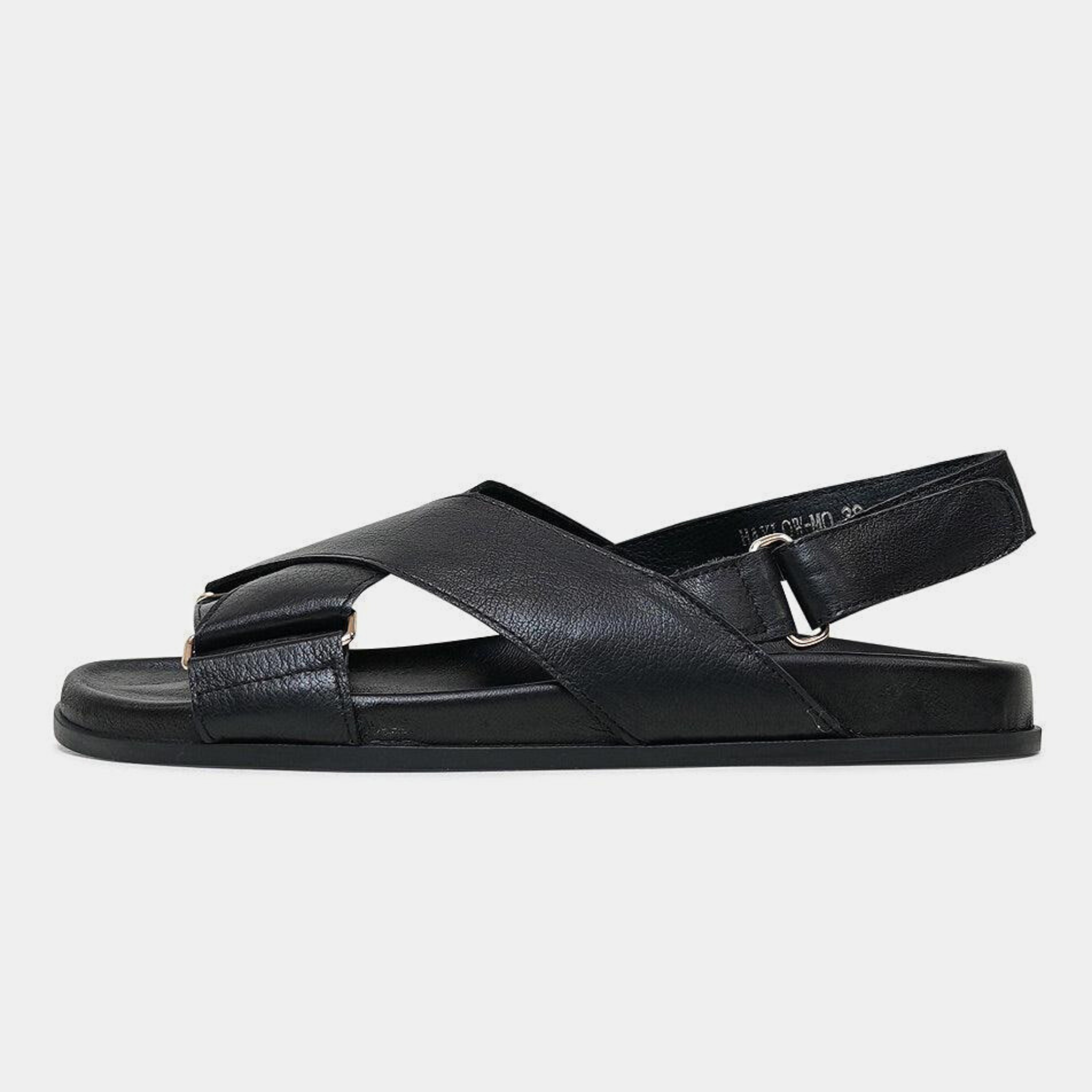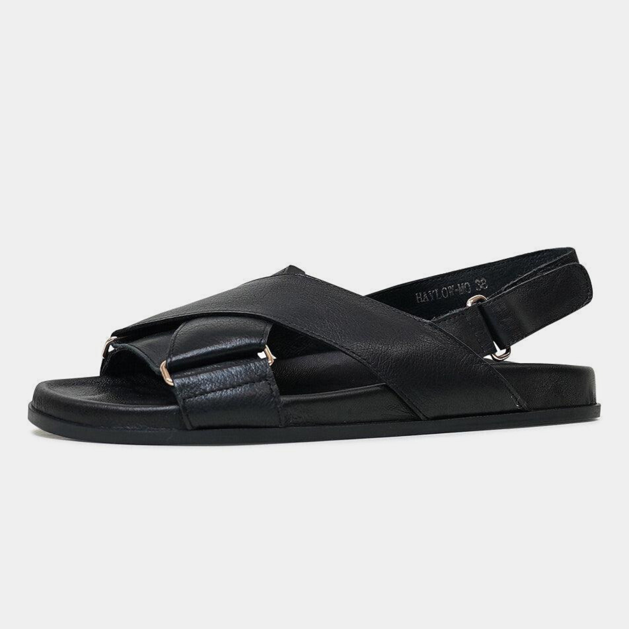 These Haylow Black sandals by Mollini feature a trendy and comfortable moulded footbed and chunky crisscross straps for support. Style yours with a silk slip dress to add and toughen up an otherwise feminine piece. Their versatile black leather will complement a range of pieces in your wardrobe.