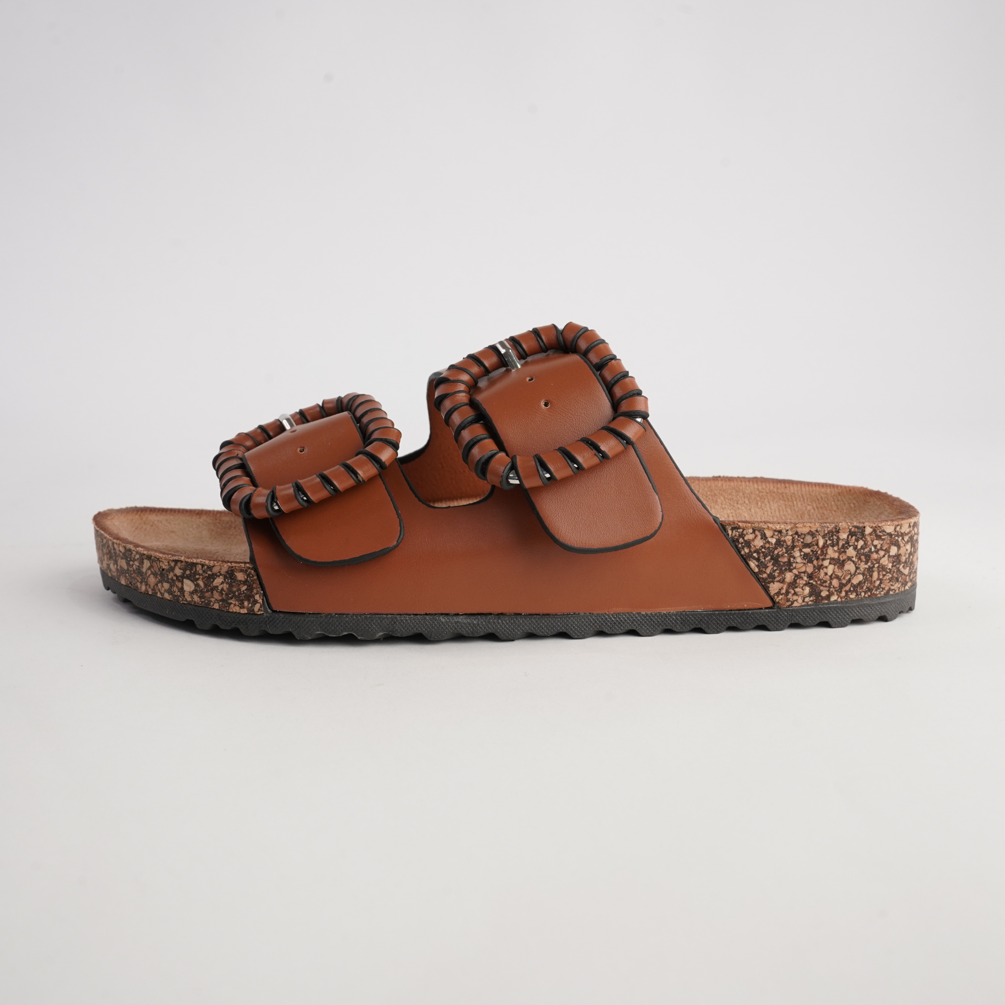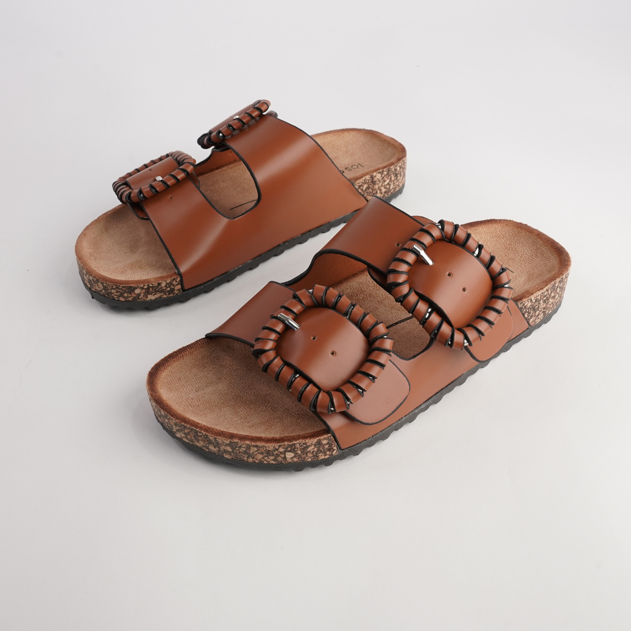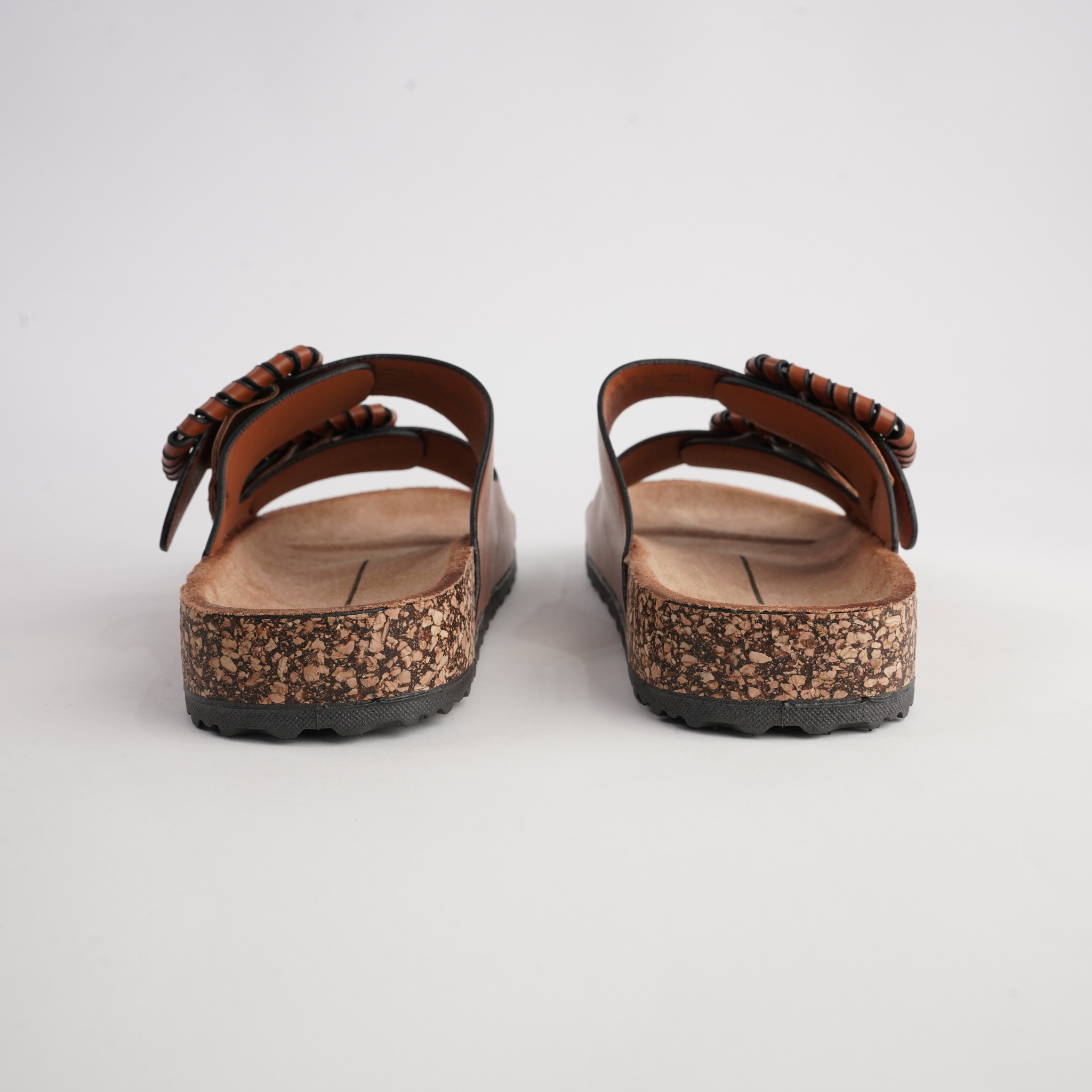 Step into playful comfort with the Jirona Brandy Slides by Los Cabos. Featuring bold, oversized buckles with contrast edging, these slides bring a fresh and contemporary twist to a classic silhouette. The cork-look footbed offers natural cushioning, while the slip-on design ensures effortless wear—perfect for casual days, weekend outings, or adding a pop of fun to everyday looks.