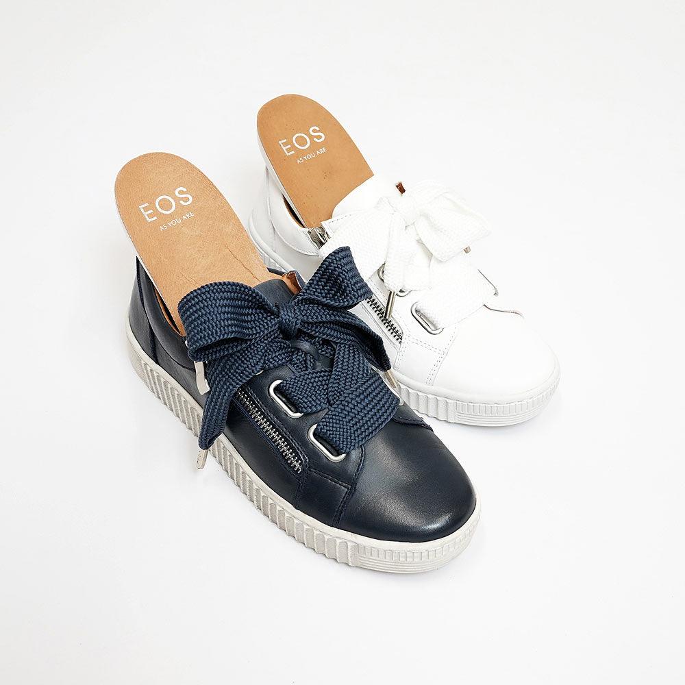 The Jovi Navy by EOS is the only sneaker you need this season. Encompassing master craftsmanship with high-quality Italian leather, this comfortable sneaker sits upon a chunky statement sole, is orthotic-friendly and makes a statement with funky oversized laces. Pair this versatile shoe with anything from jeans, a white tee and blazer for a casual-chic office look or with your favourite linen midi dress for the perfect weekend look.