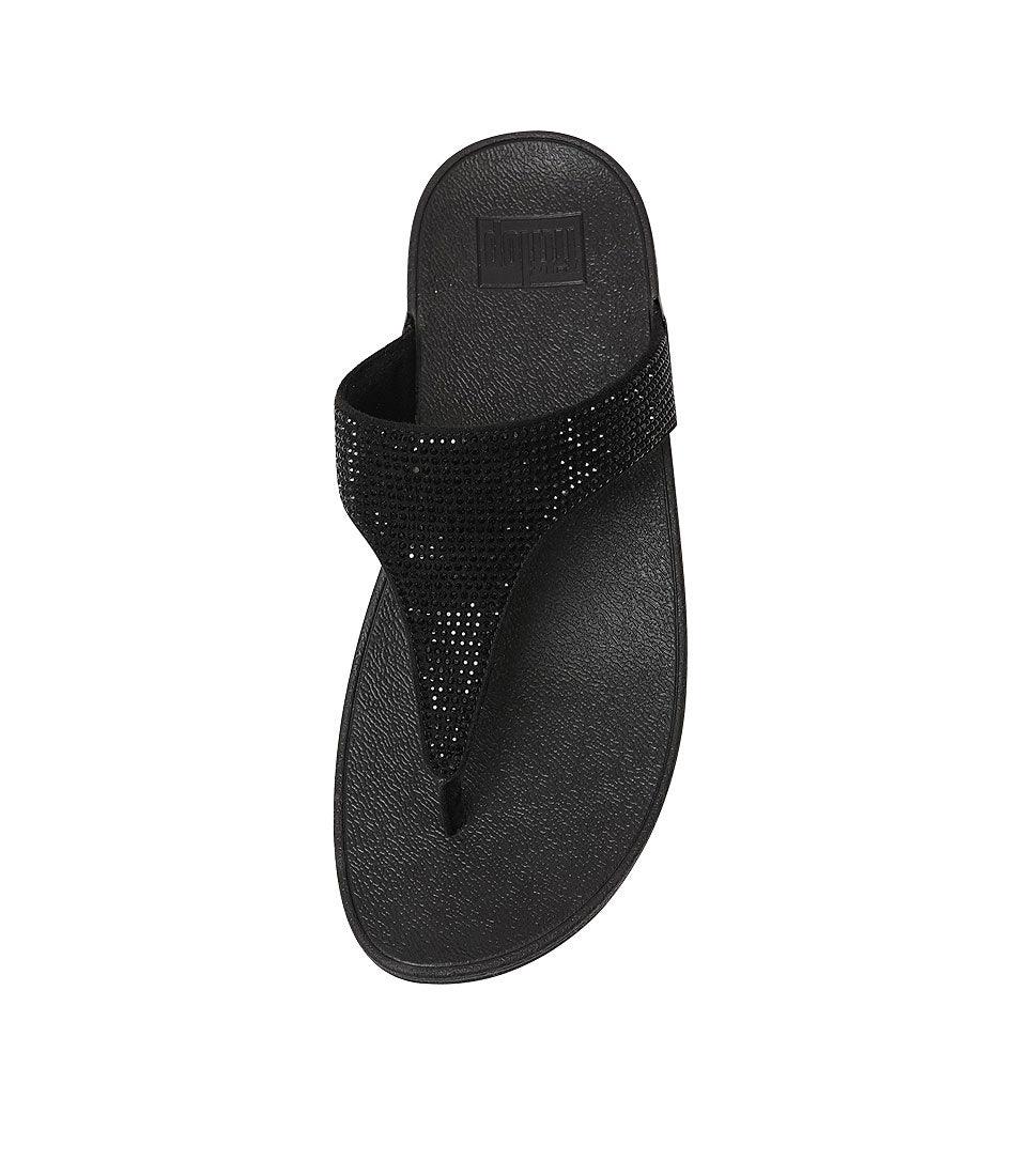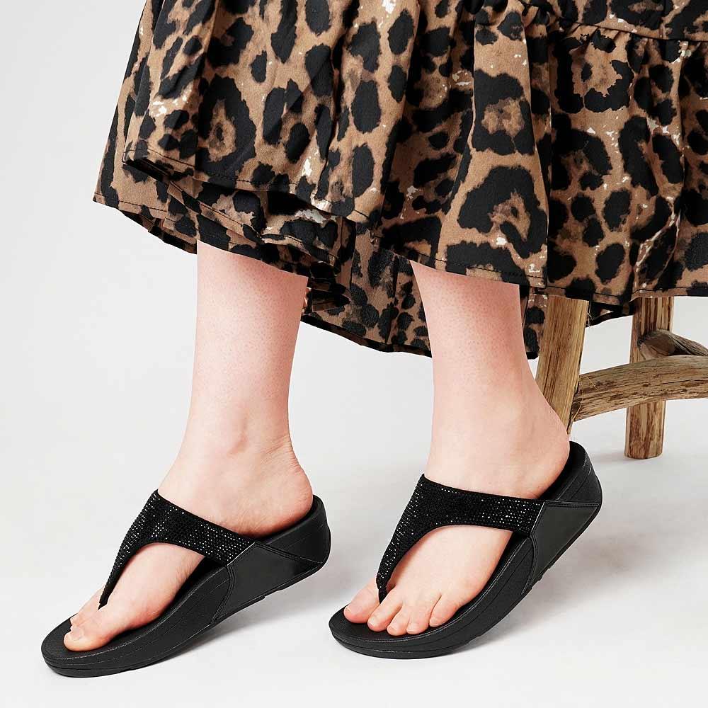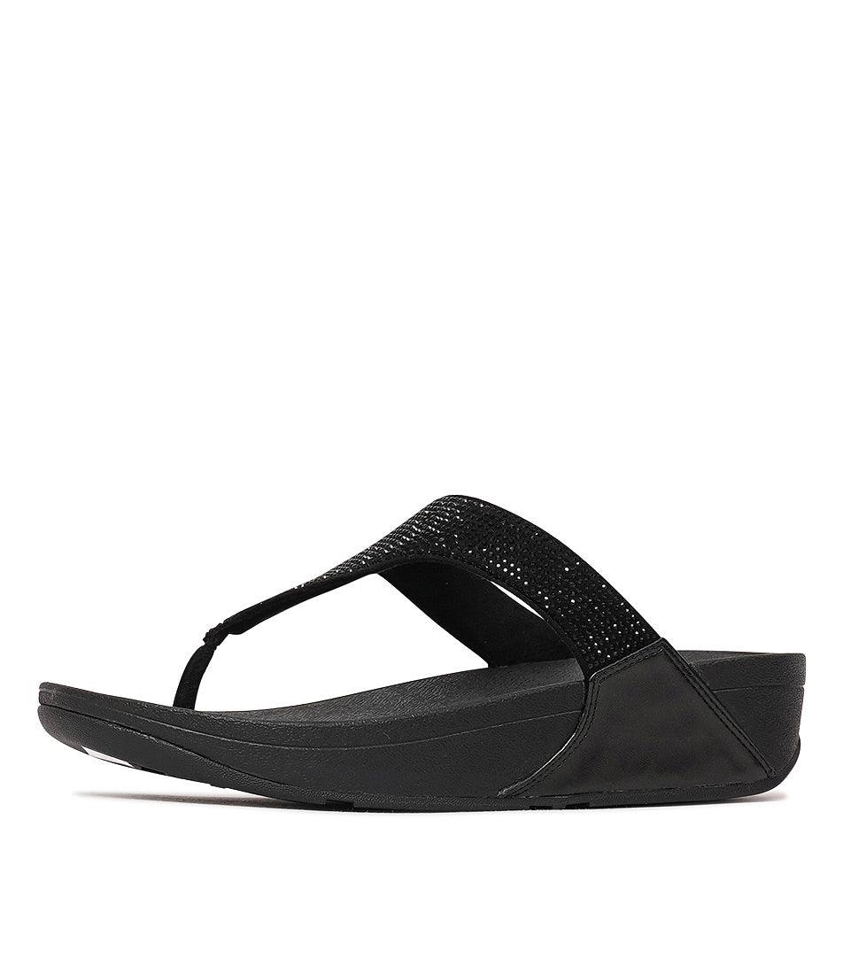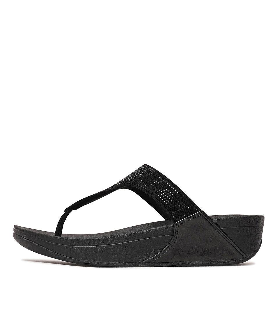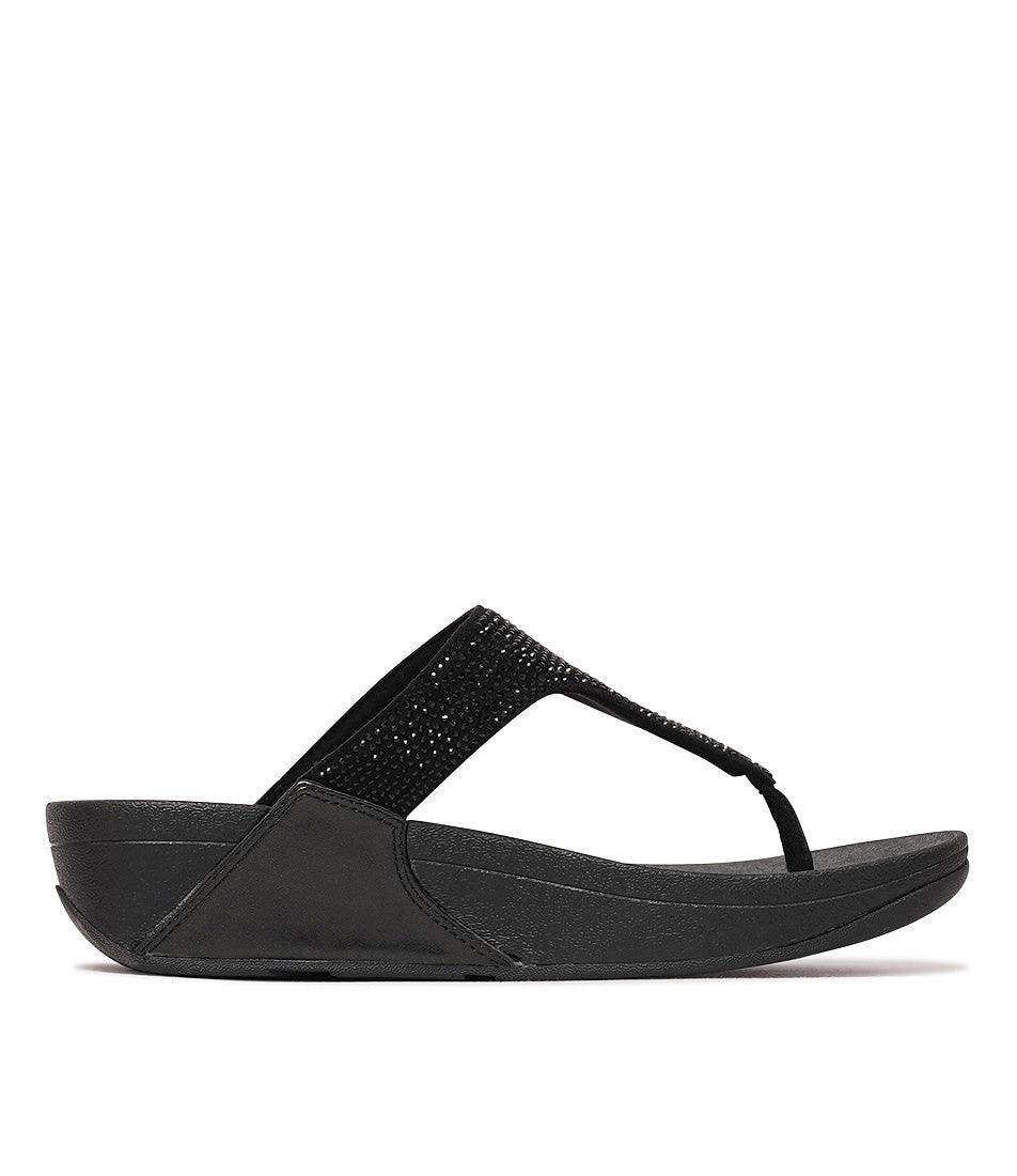 The Lulu Crystal All Black thonged sandals from FitFlop sit on a 4.5cm wedge heel and feature a diamante strap that adds an elevated edge to this classic summer staple. Style yours with everything from sundresses to shorts.