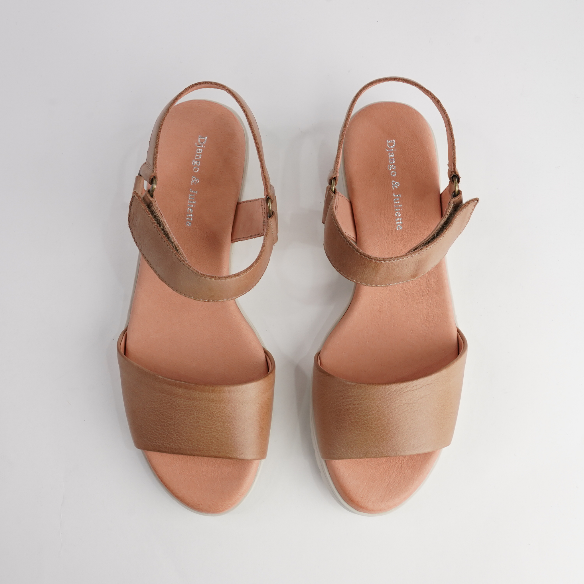 Minne Dark Tan/ Almond Sole Leather Sandals