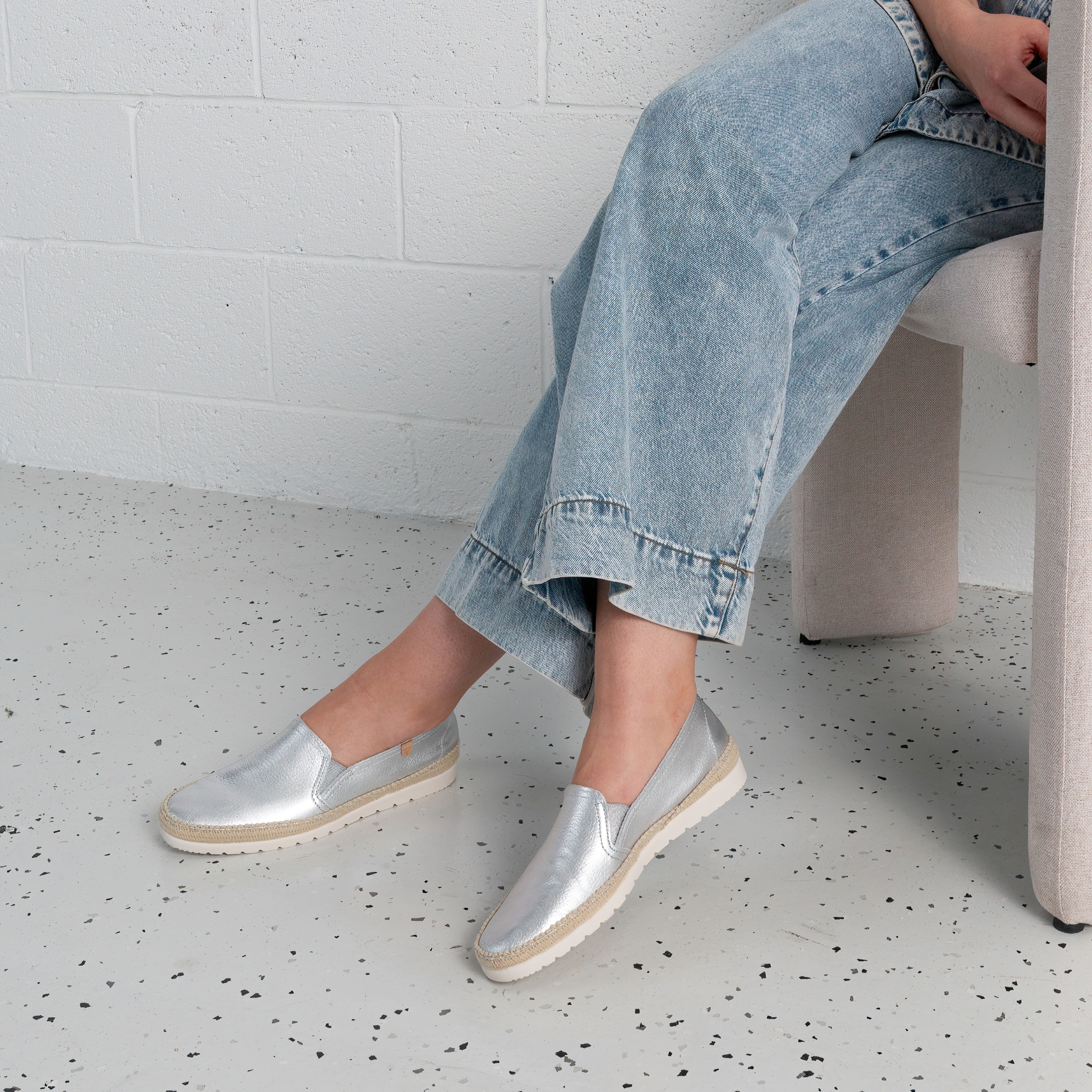 The Nuria Silver slip-on flats by Verbenas will make a stylish addition to your summer holiday wardrobe. These metallic flats are casual, comfortable and versatile. Their bold silver finish will, surprisingly, work really well with almost everything in your summer wardrobe. Just throw on your favourite shorts and tee and you'll be ready to enjoy that summer sunshine.