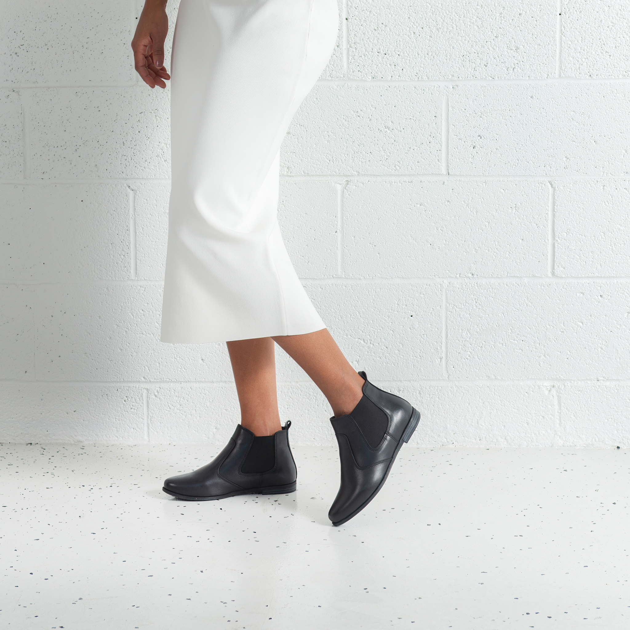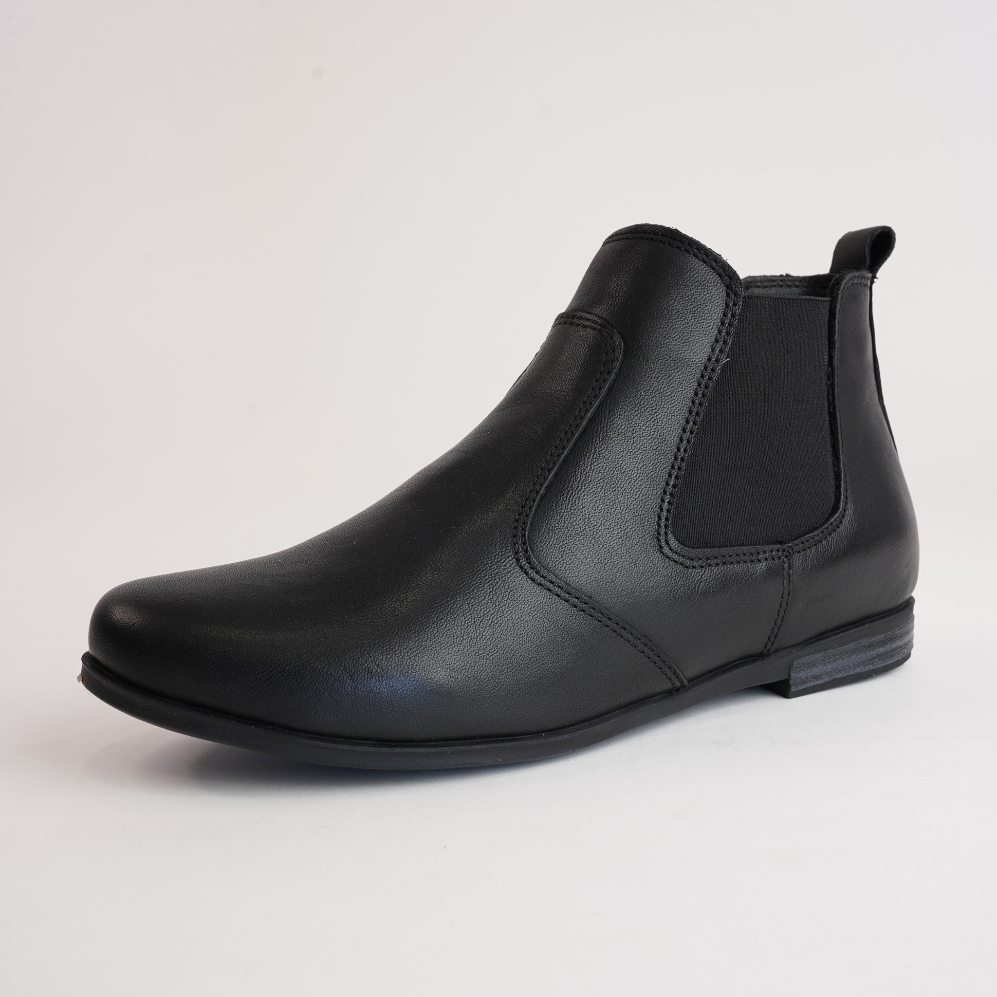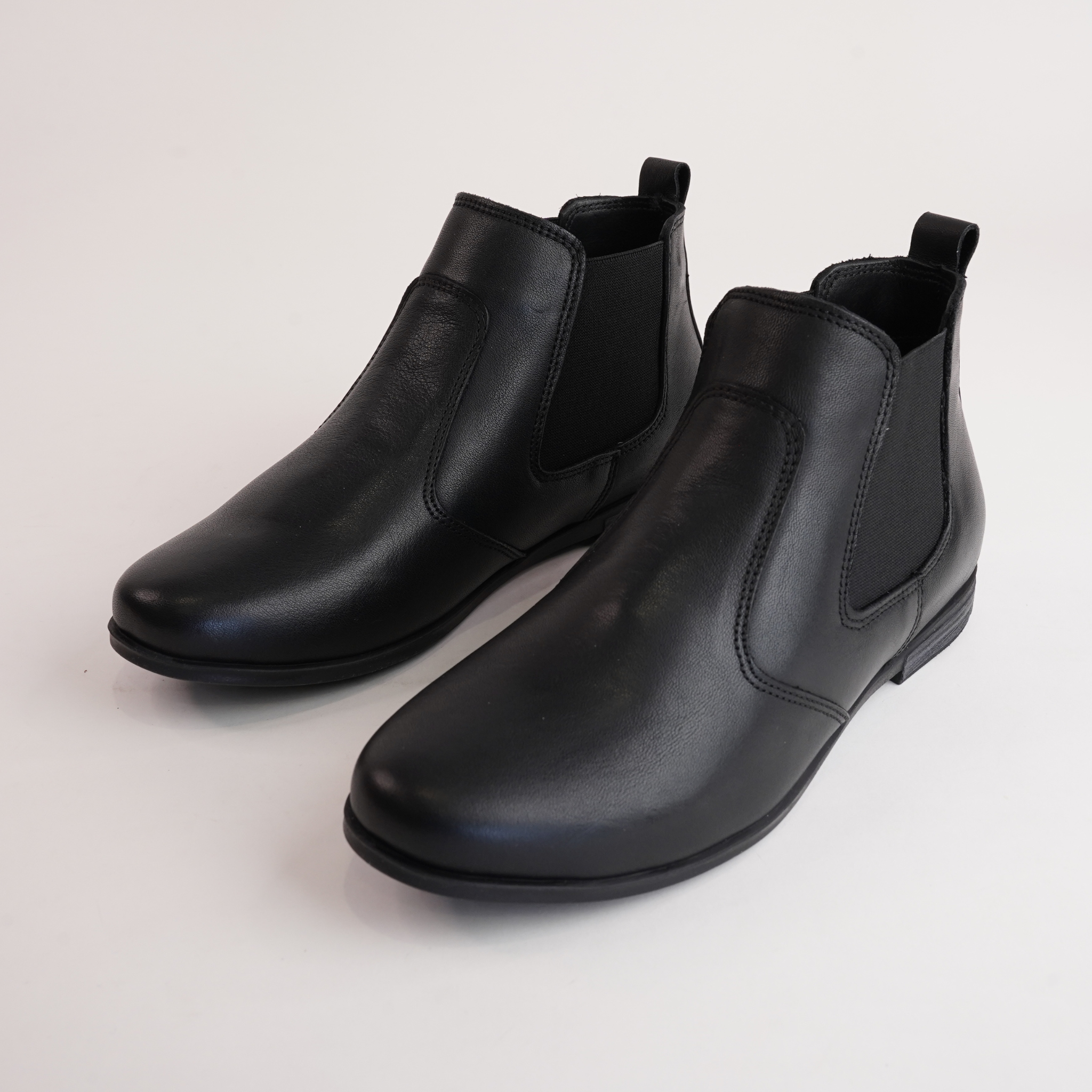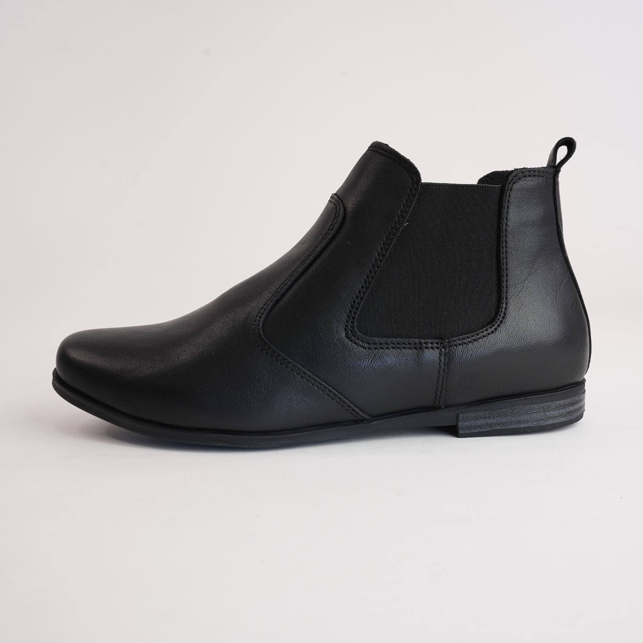 Upgrade your wardrobe with the Crystal Black Leather Ankle Boots by Sala. Designed with a classic Chelsea boot silhouette, these boots feature a smooth leather finish, elastic side panels, and a pull-tab for easy wear. A refined staple for effortless styling.