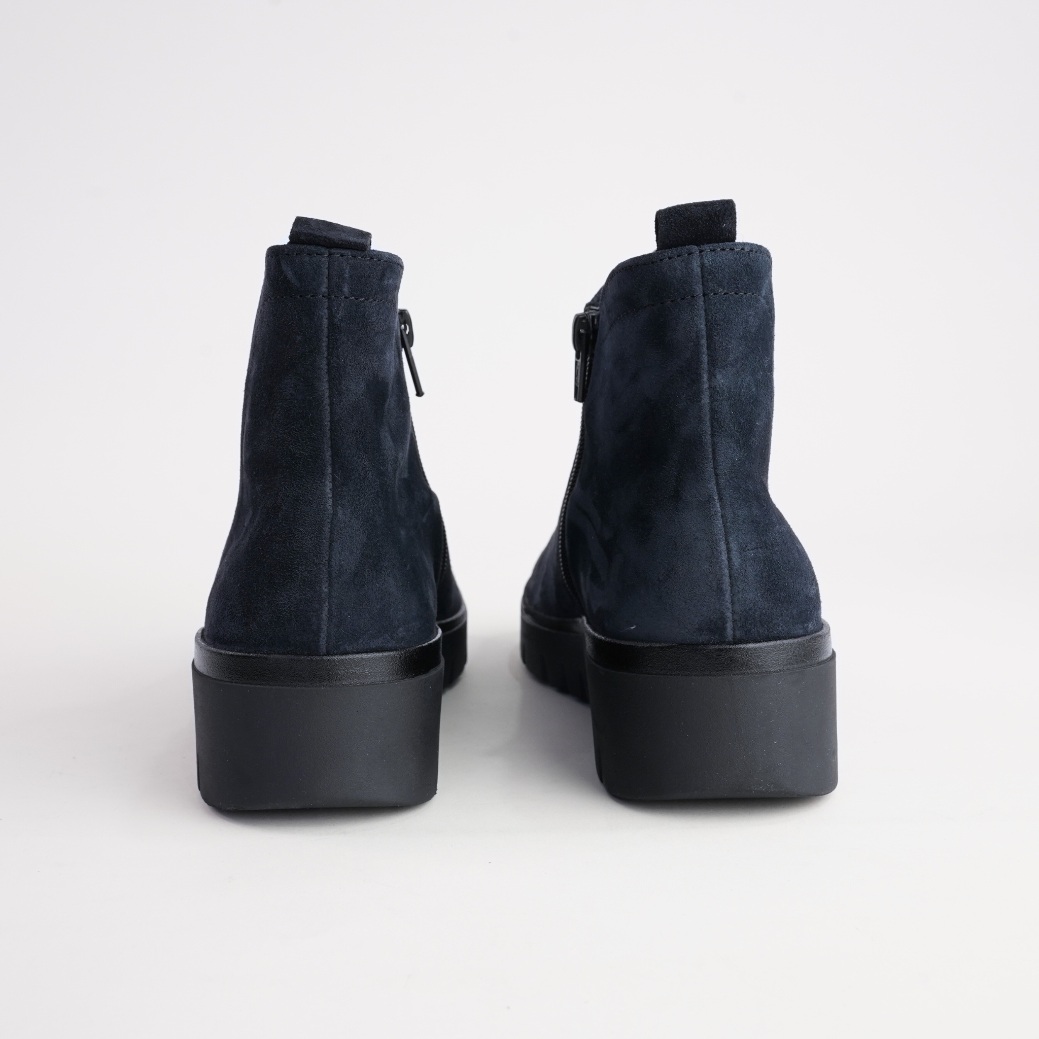 The Gertie Dark Blue Suede Leather Ankle Boot by Gabor is your go-to for sleek, everyday comfort. Featuring a soft suede upper, chunky sole, and elastic gussets for easy wear, this orthotic-friendly boot blends style with function in every step.