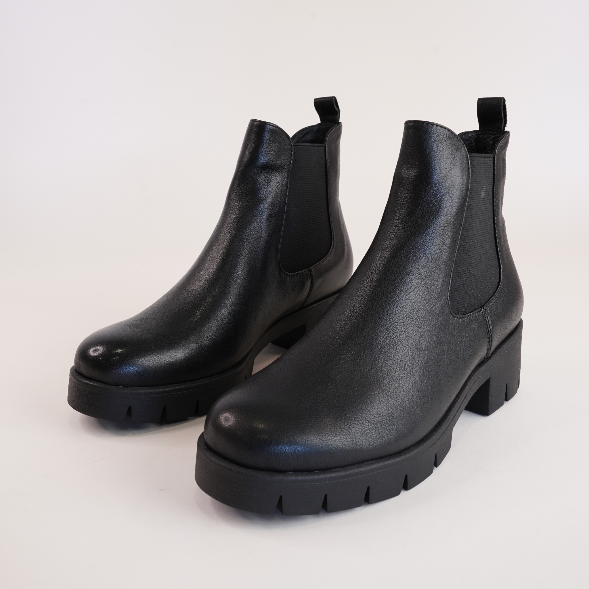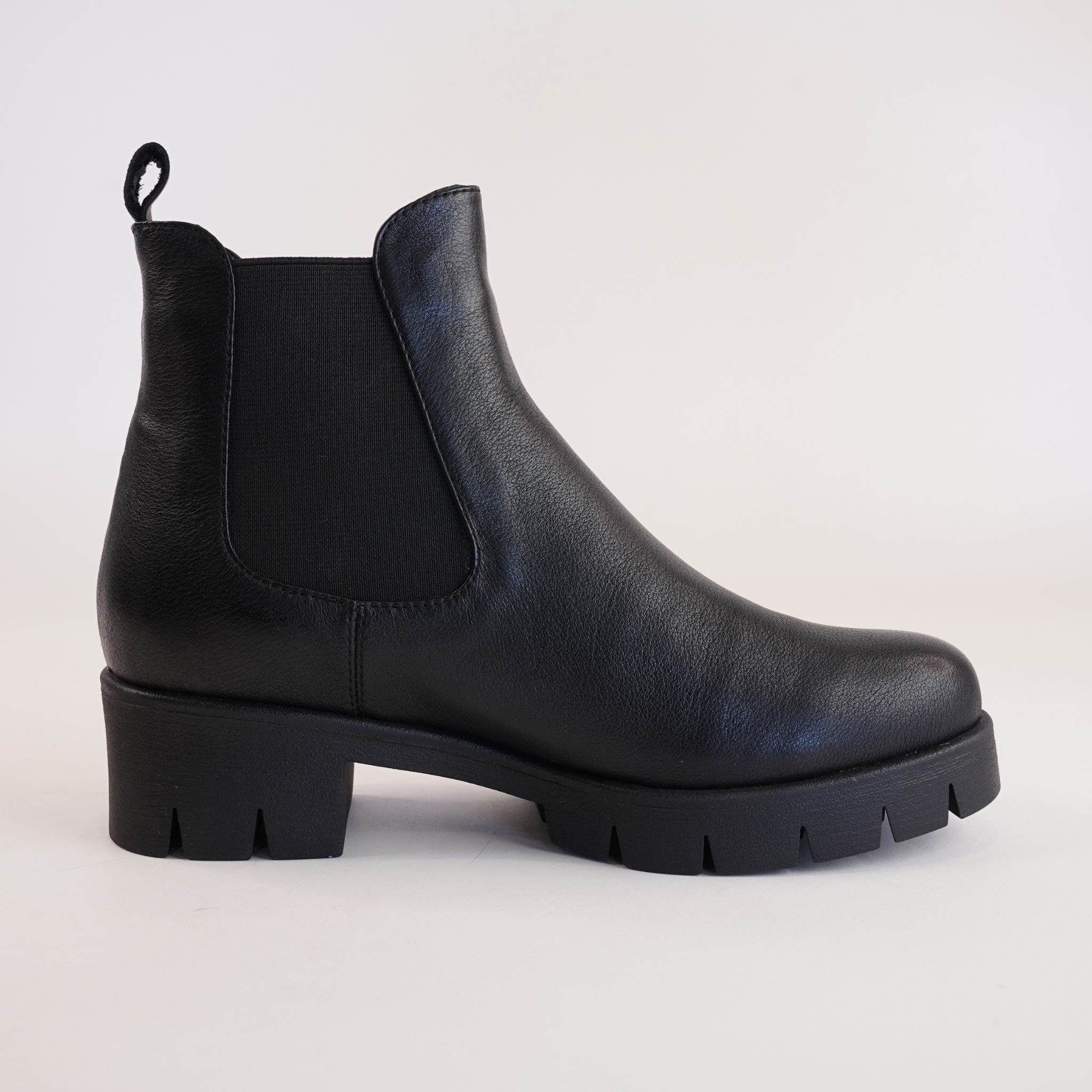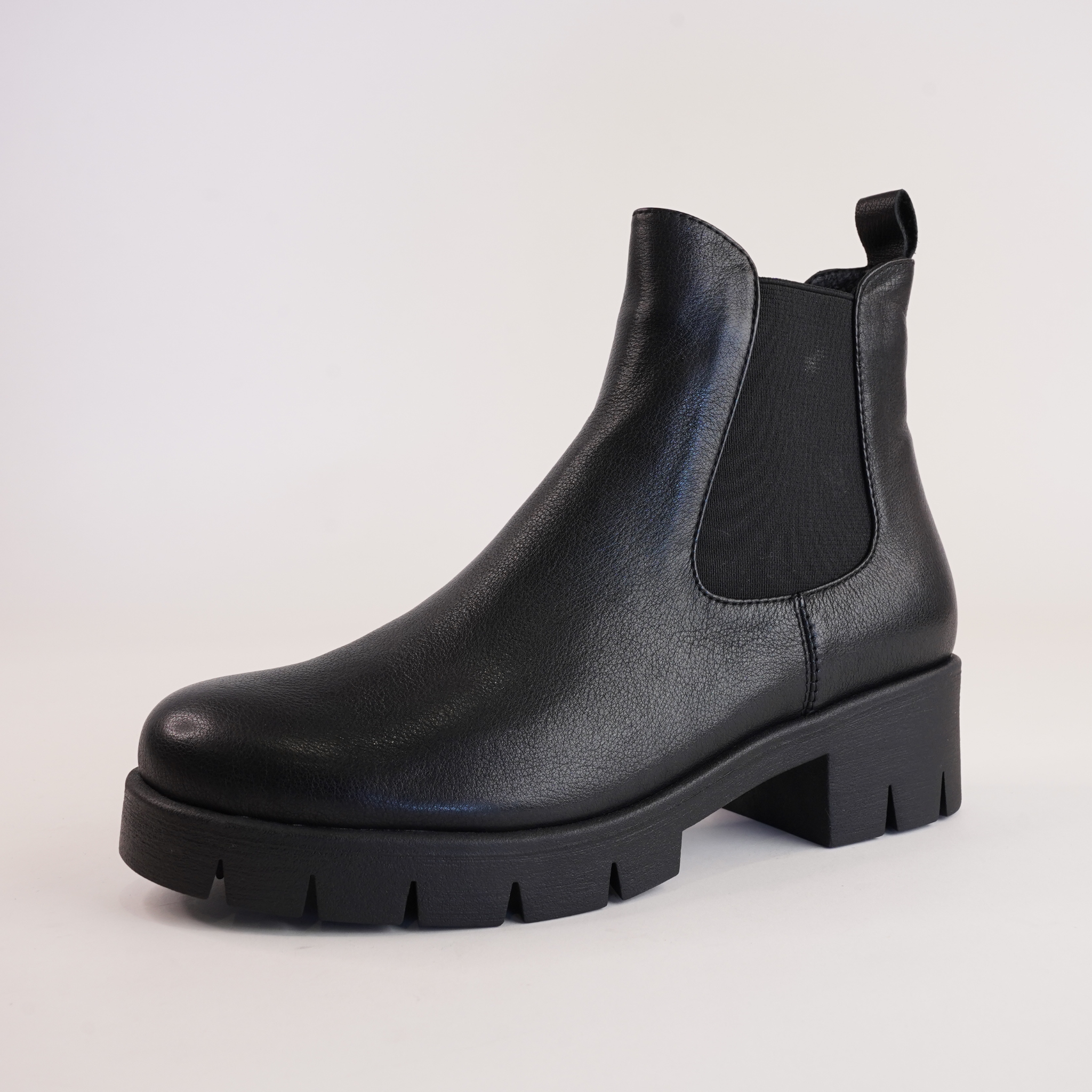 The Hampy Black Leather Ankle Boots by Django & Juliette are a modern take on the classic Chelsea boot. Featuring a smooth leather upper, elastic side panels for easy wear, and a chunky treaded sole, these boots offer a perfect mix of sophistication and durability.