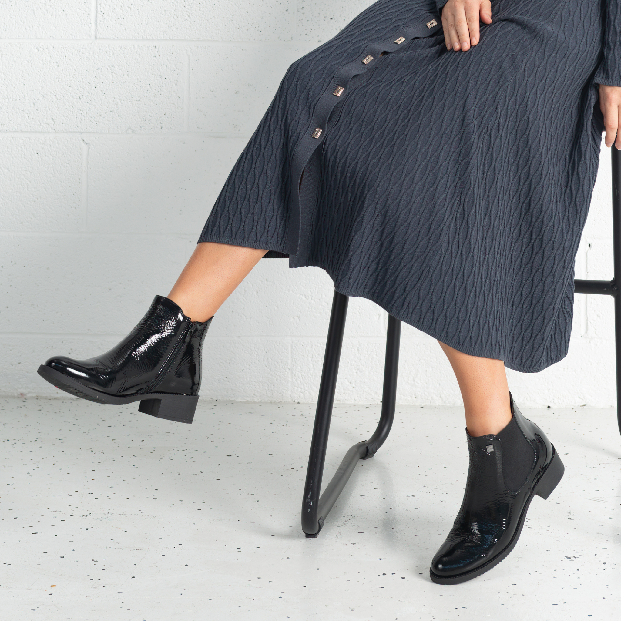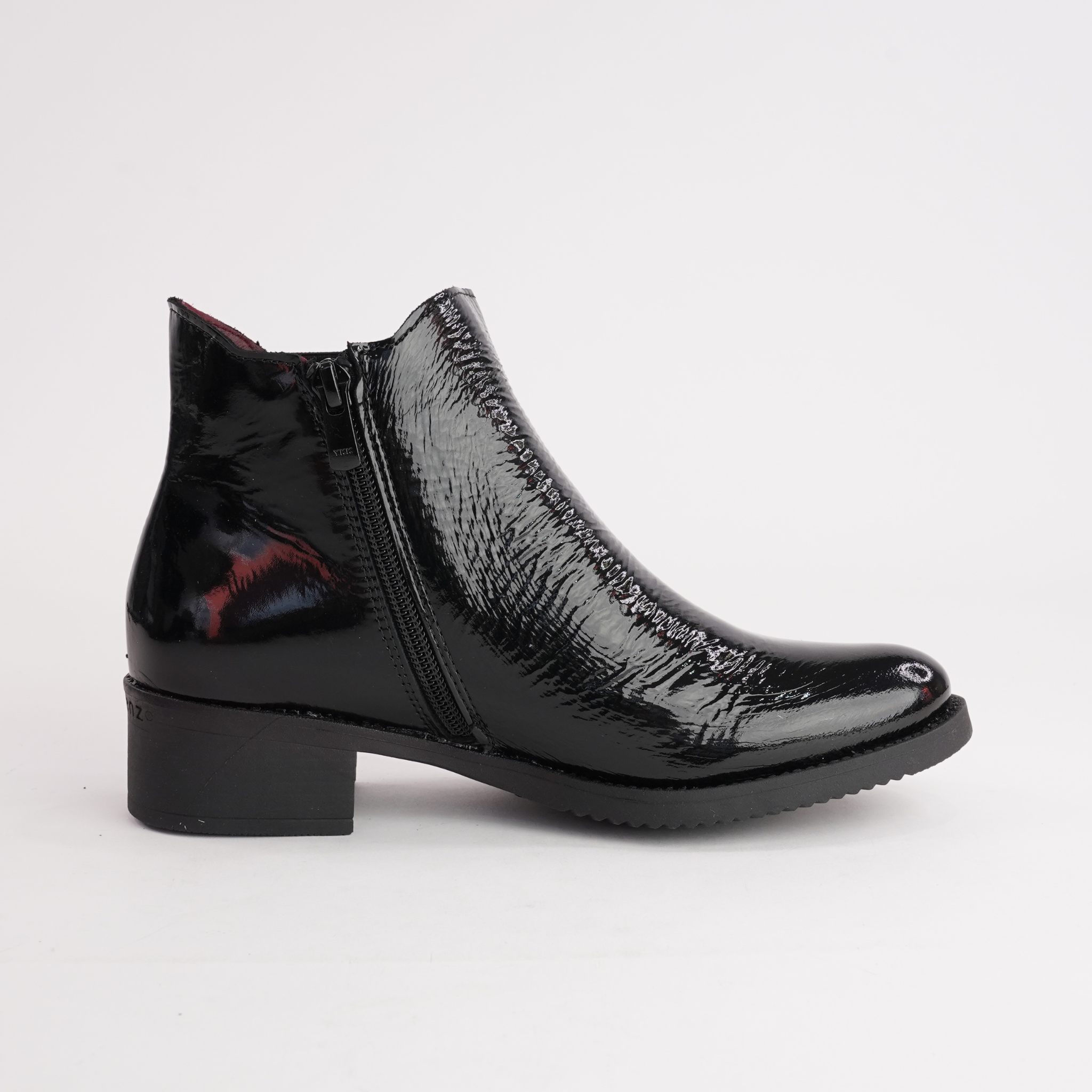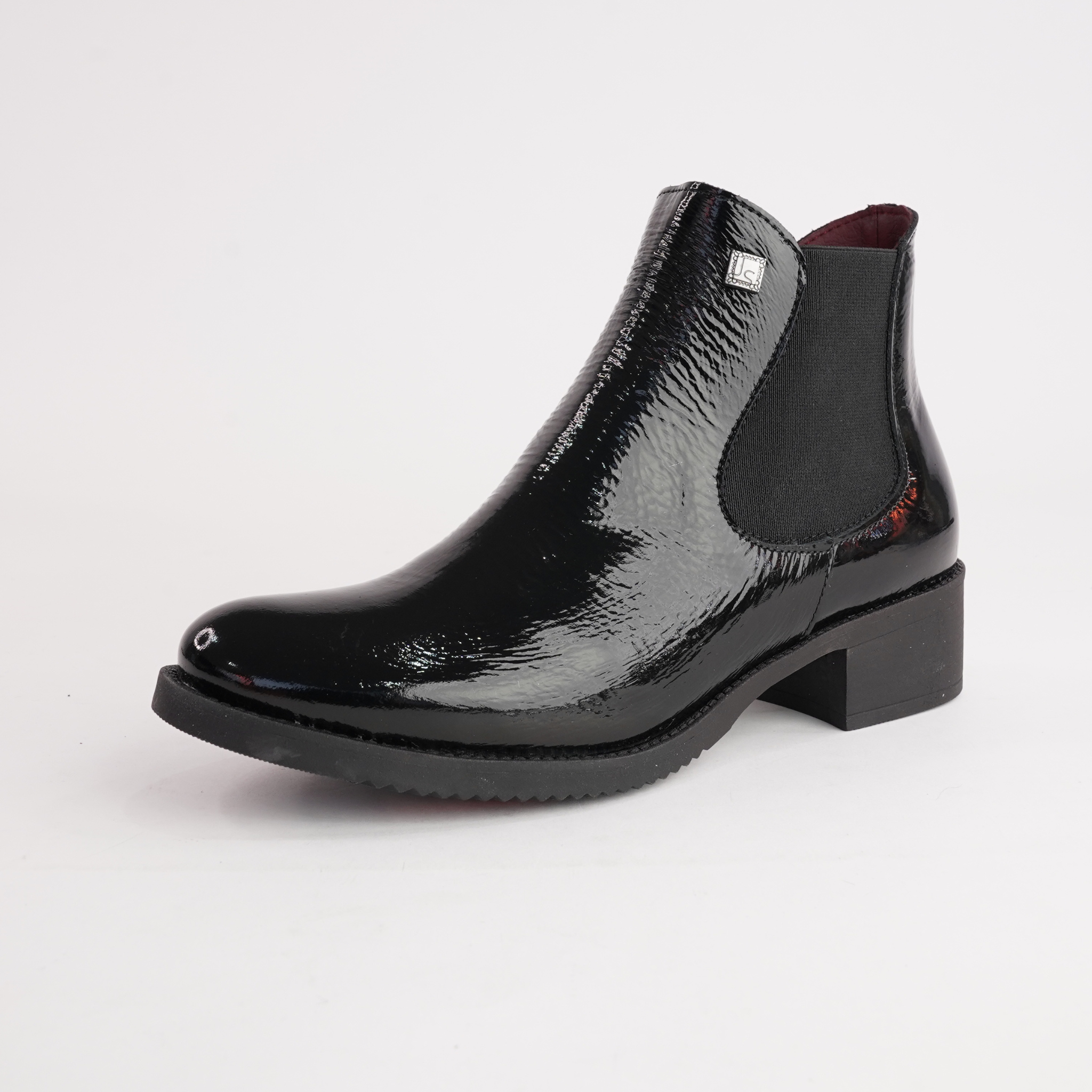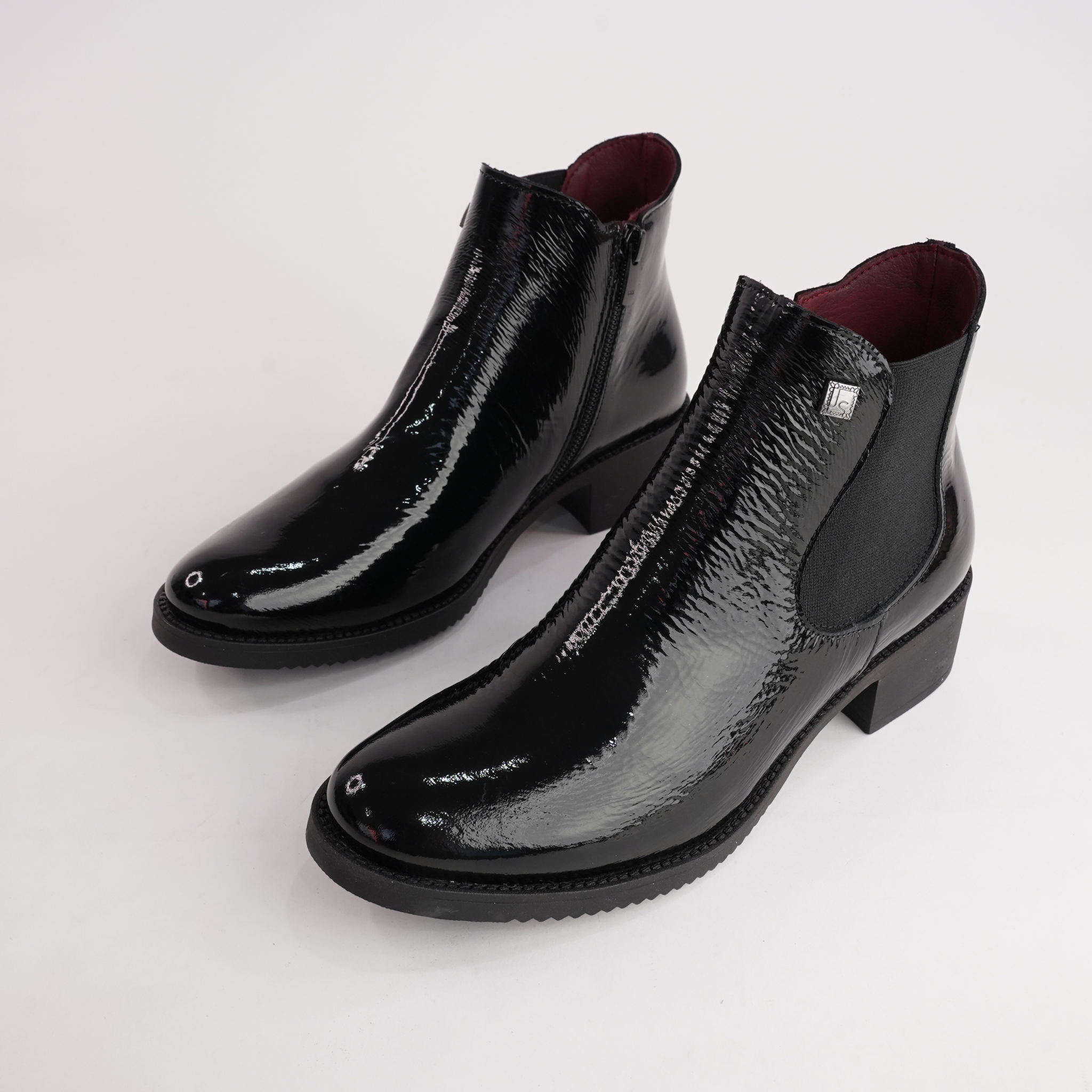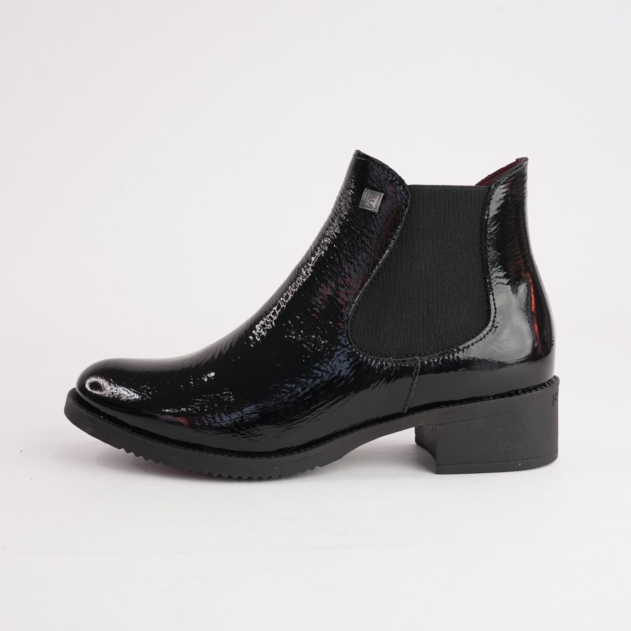 The Js-2181 Black Patent Boots by Jose Saenz bring a contemporary edge to the classic Chelsea boot. Designed with an inner zip for fuss-free wear, elastic side panel for flexibility, and a sleek high-shine finish, this pair blends fashion and function effortlessly.