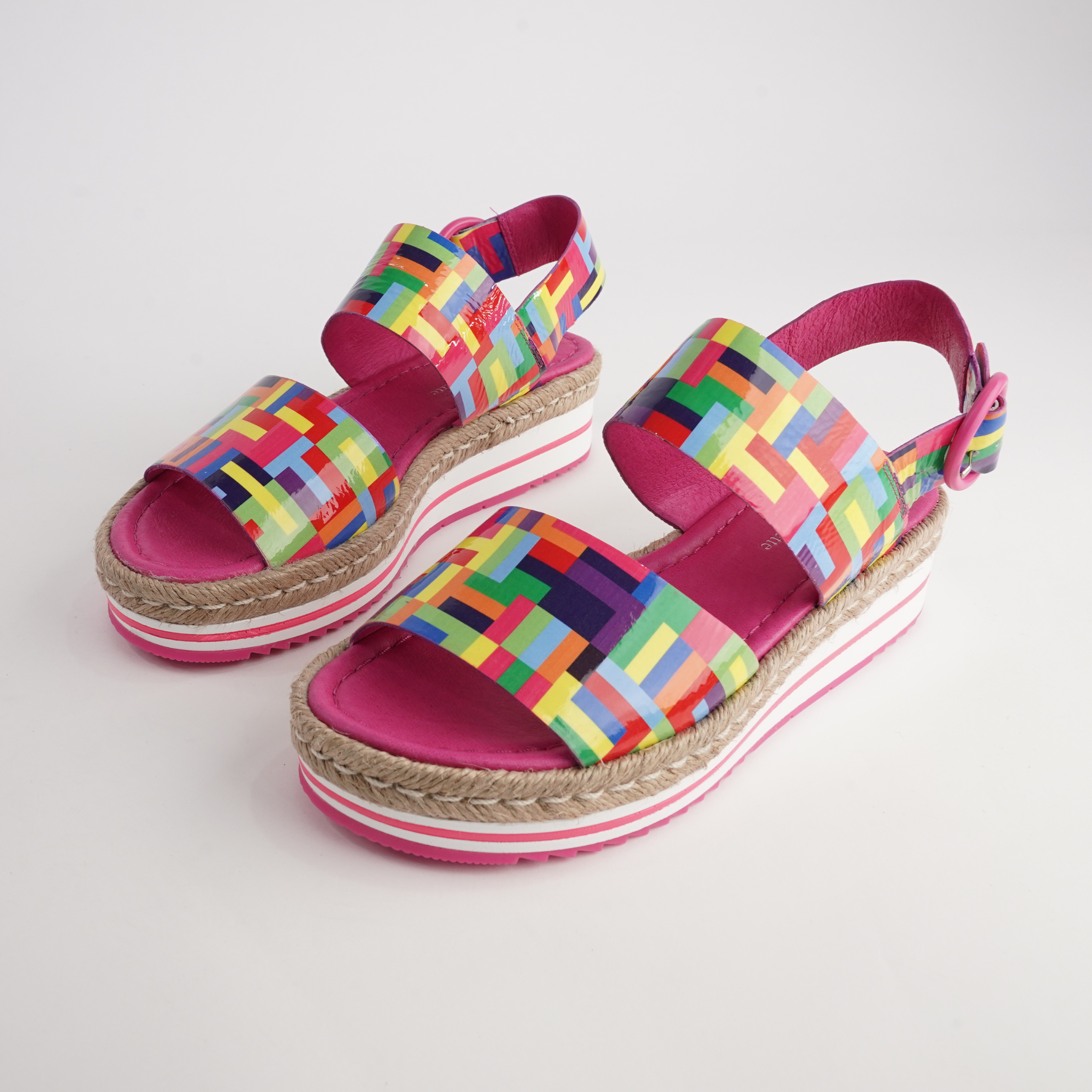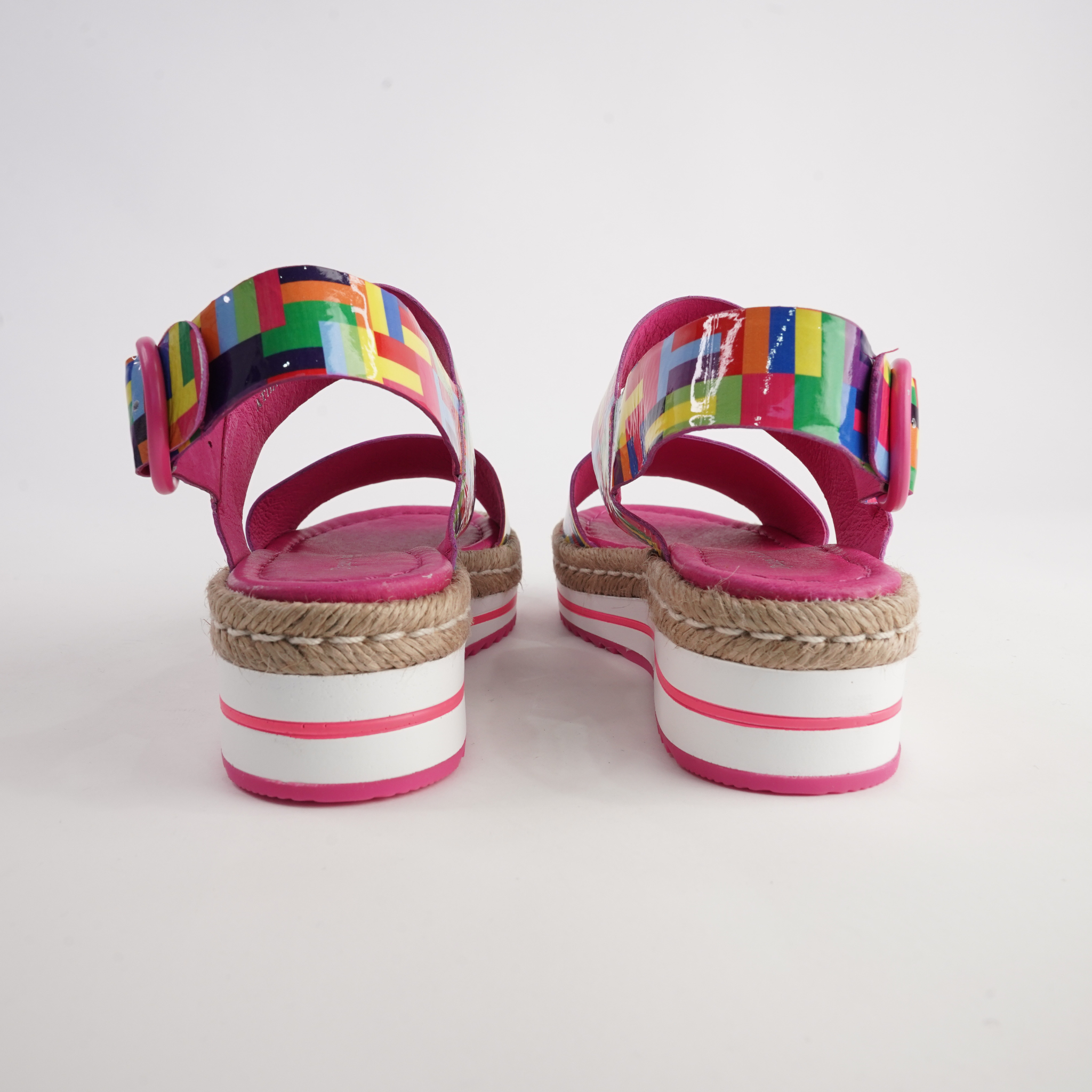Turn heads this summer in the Atha Pink Stripe Multi Leather Sandals by Django & Juliette. Designed with bold, colourful striped leather straps and set on a rope-wrapped flatform sole with pink-and-white detailing, these sandals are all about playful style and everyday comfort. The round buckle strap allows for a secure fit, while the cushioned footbed and lightweight sole make them perfect for long days in the sun.