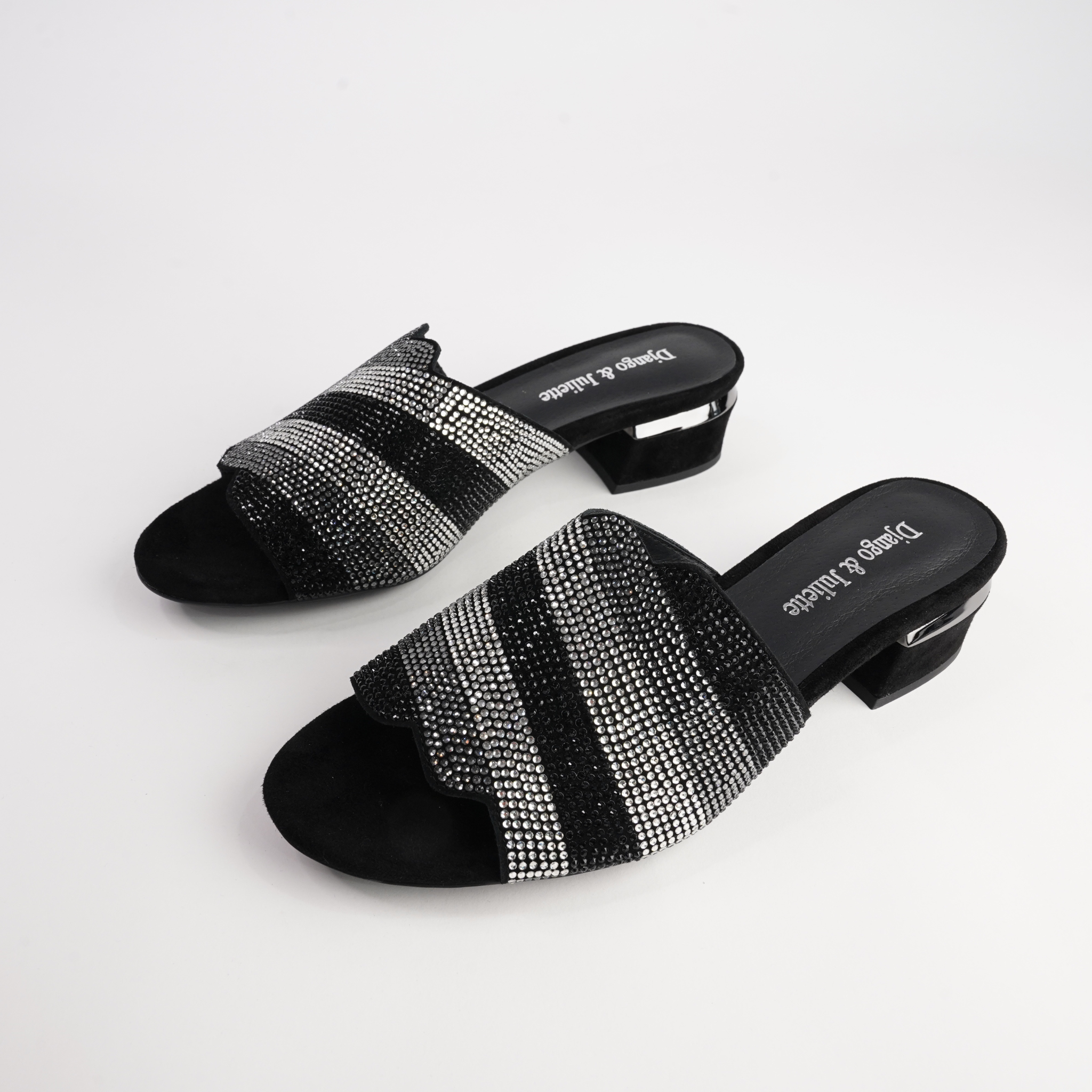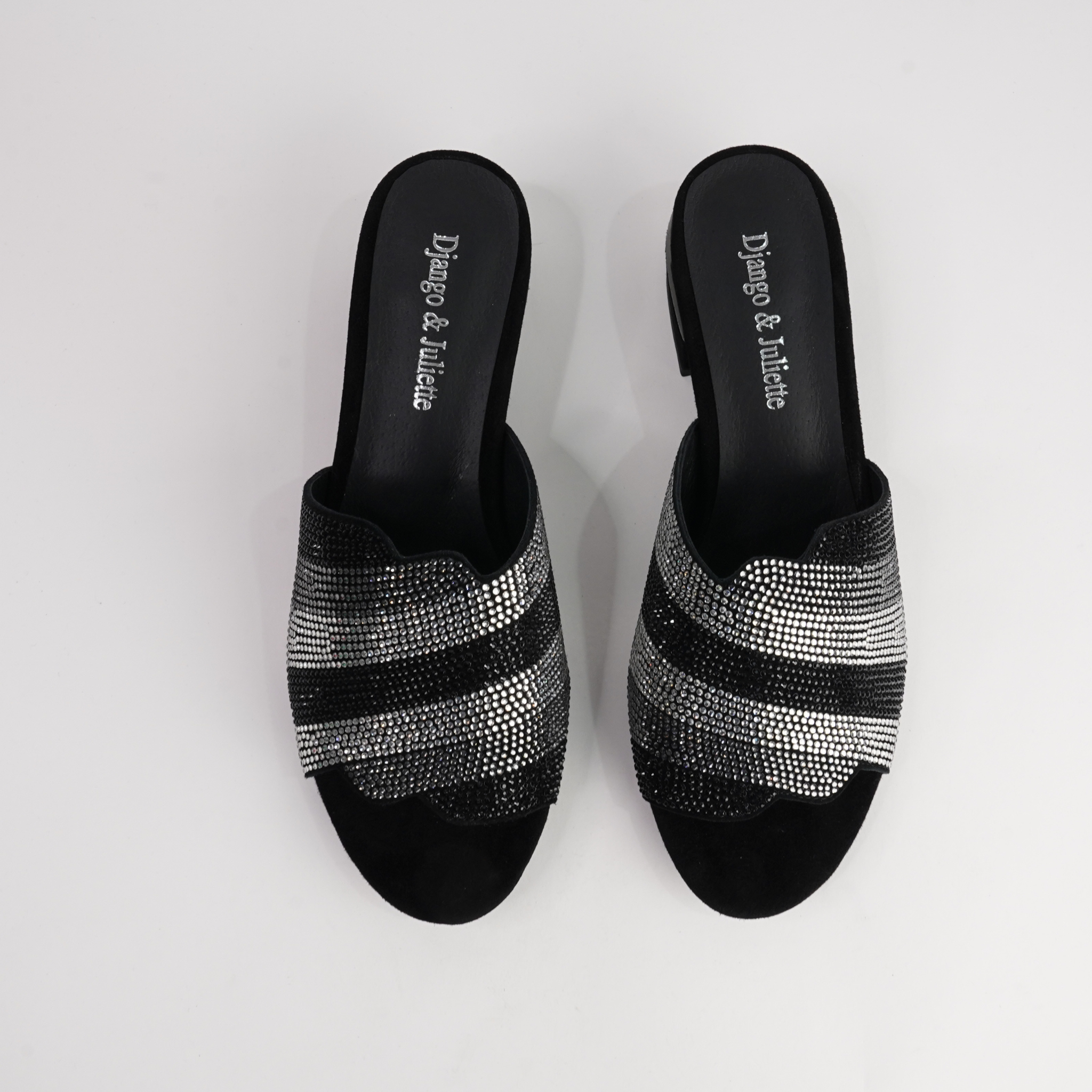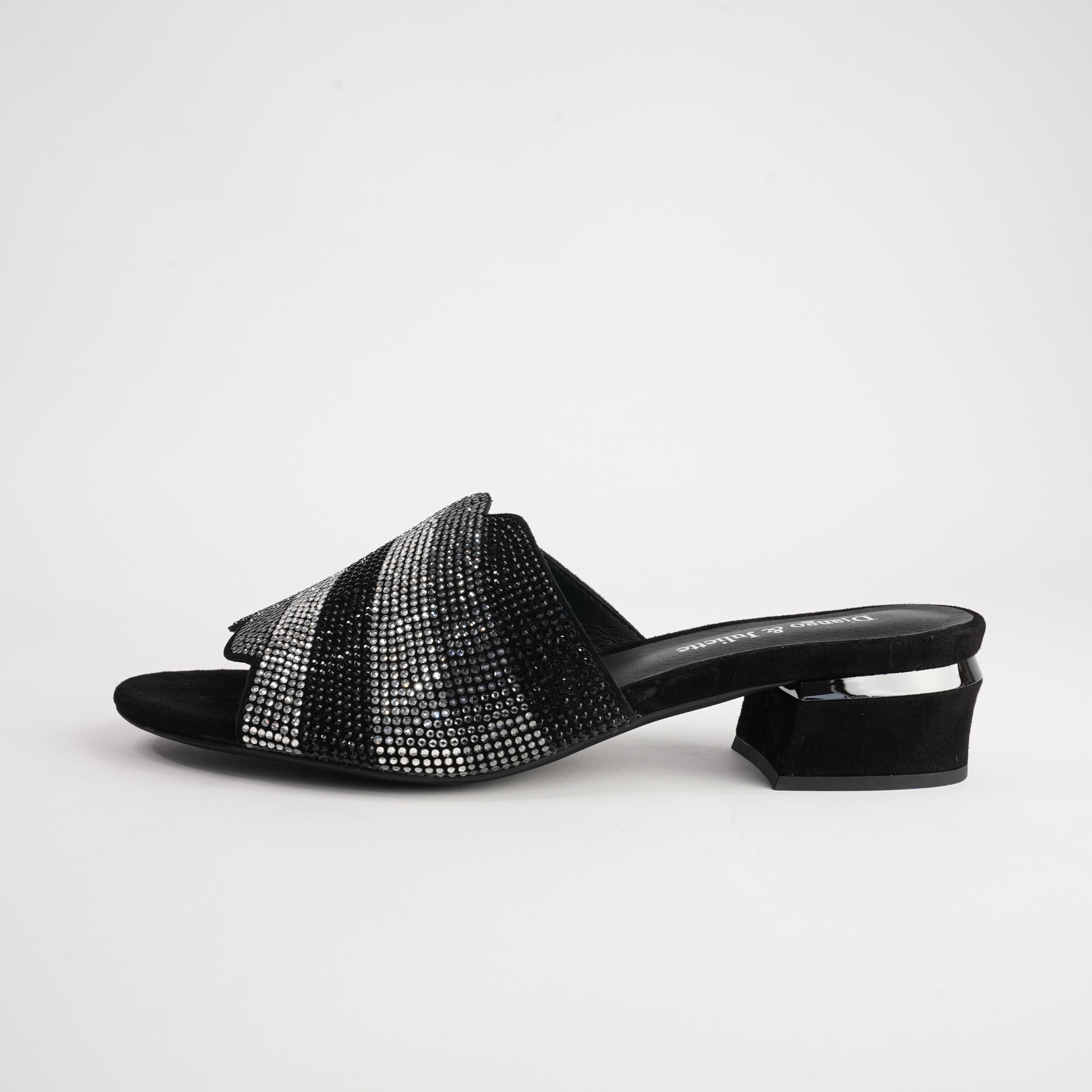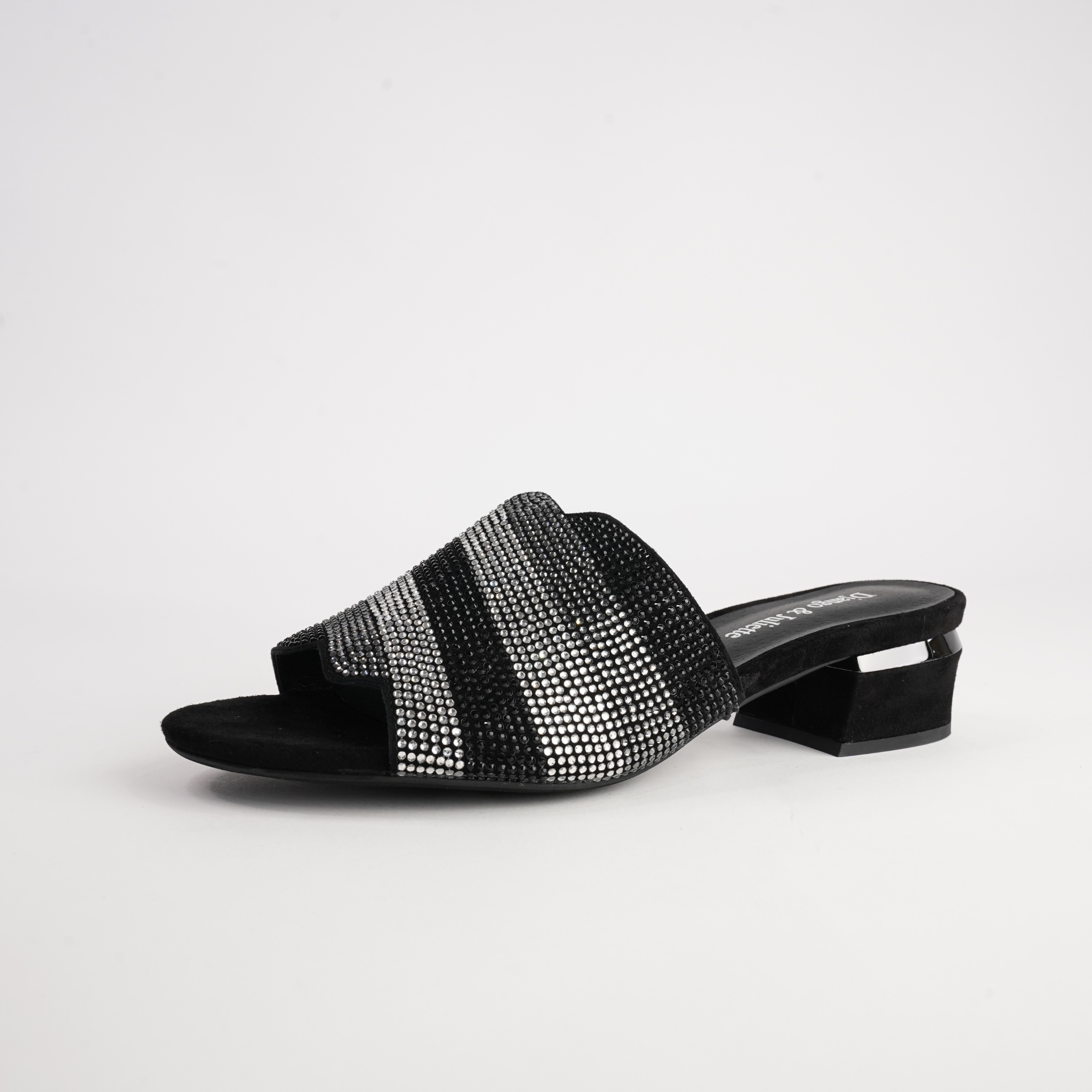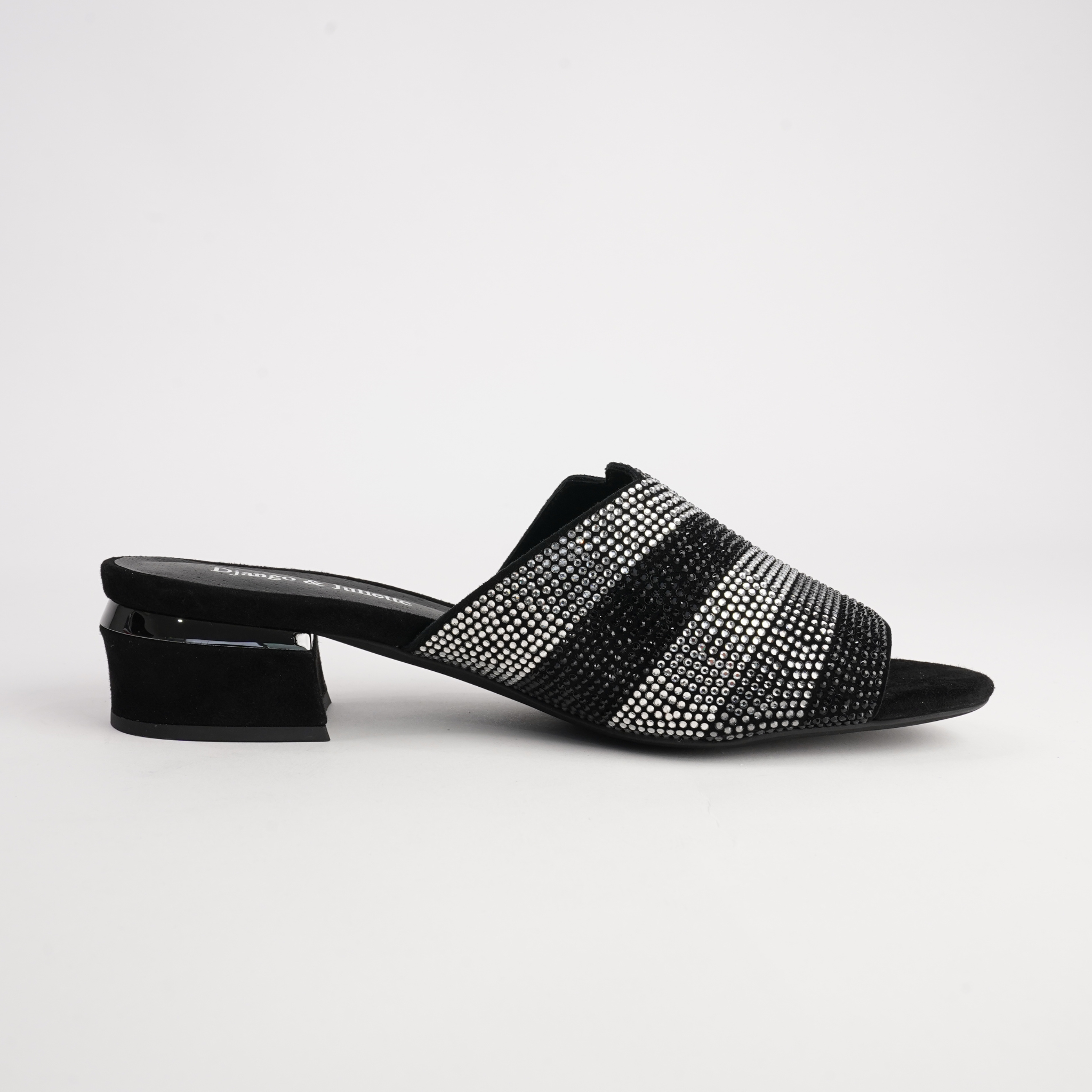 Add a touch of sparkle to your evening looks with the Tonda Black Multi Suede Heels by Django & Juliette. Crafted from soft suede with shimmering embellishments across the upper, these slip-on heels bring glamour and comfort in equal measure. The low block heel offers subtle lift, while the cushioned footbed ensures you can dance or dine in style all night long.