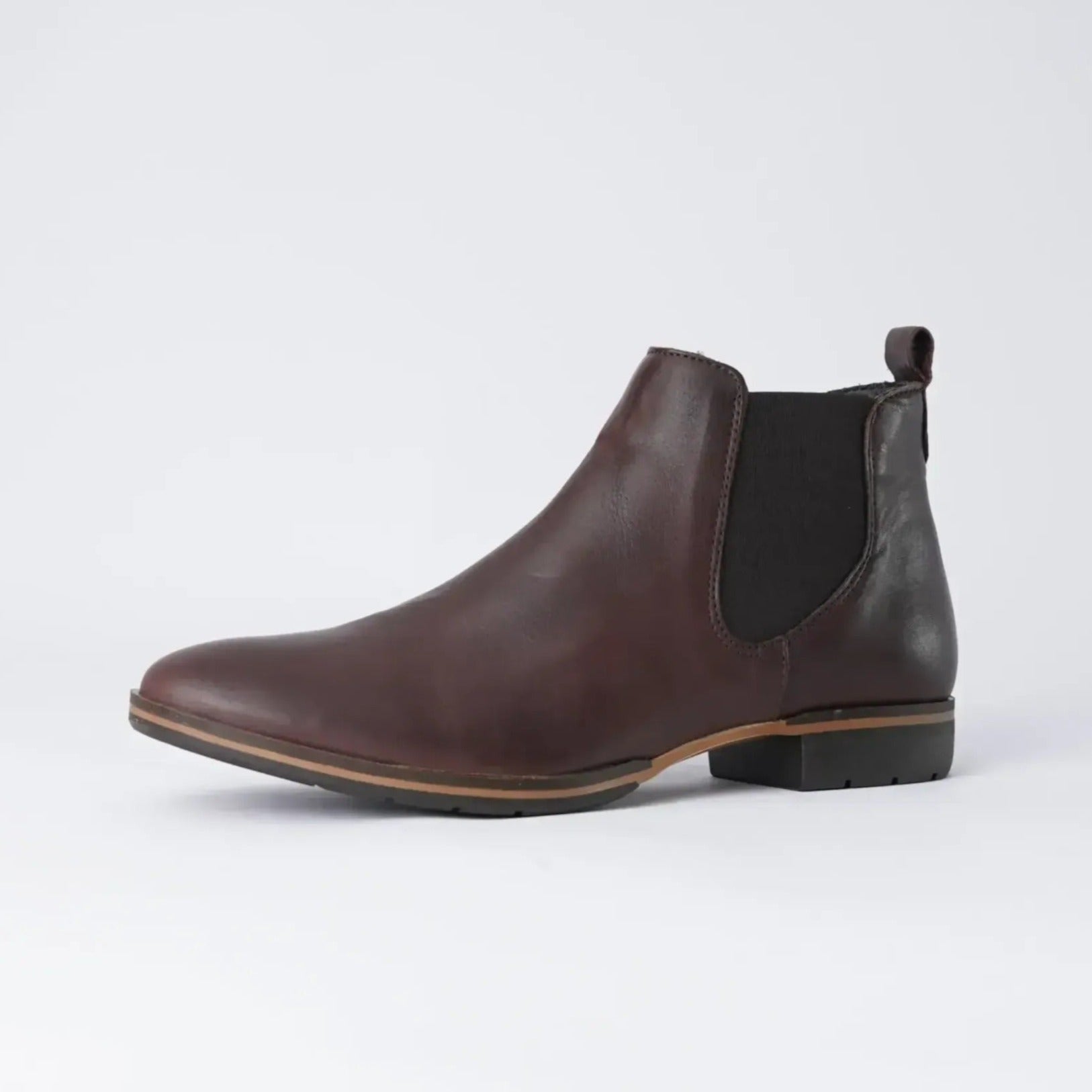 Step up your boot game with these Gala Chestnut Leather Ankle Boots by EOS Footwear. The leather upper, non-leather lining, and padded inner sole provide maximum comfort while the 2cm heel and wood-look stripe on the sole add a touch of sophistication. Made in Portugal with elasticated panels and a pull tab, these boots are both stylish and practical.