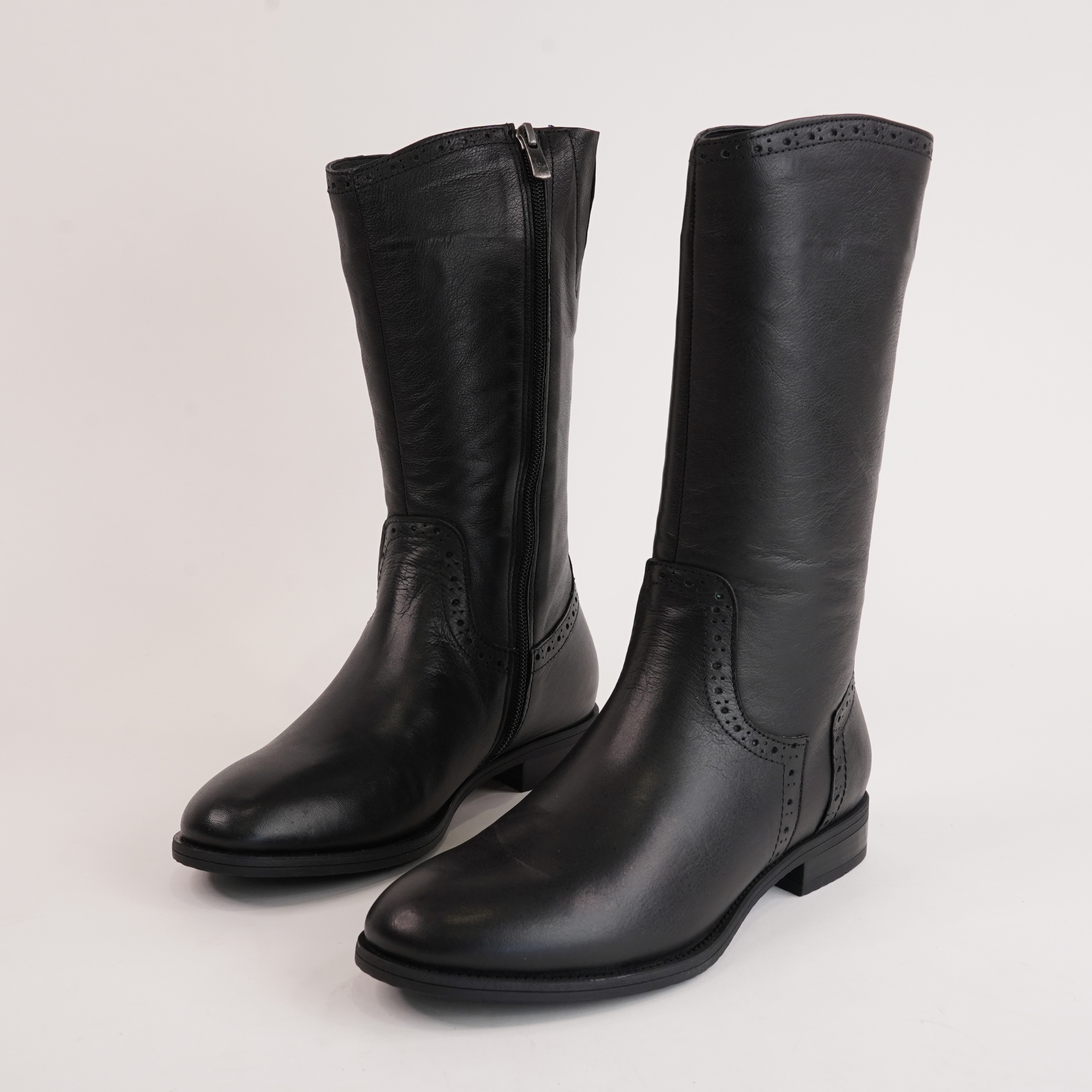 The Garda Black Leather Boots by Sala are a timeless addition to any wardrobe. Crafted from smooth leather with delicate brogue-inspired detailing, these boots offer an elegant yet versatile look for everyday wear.