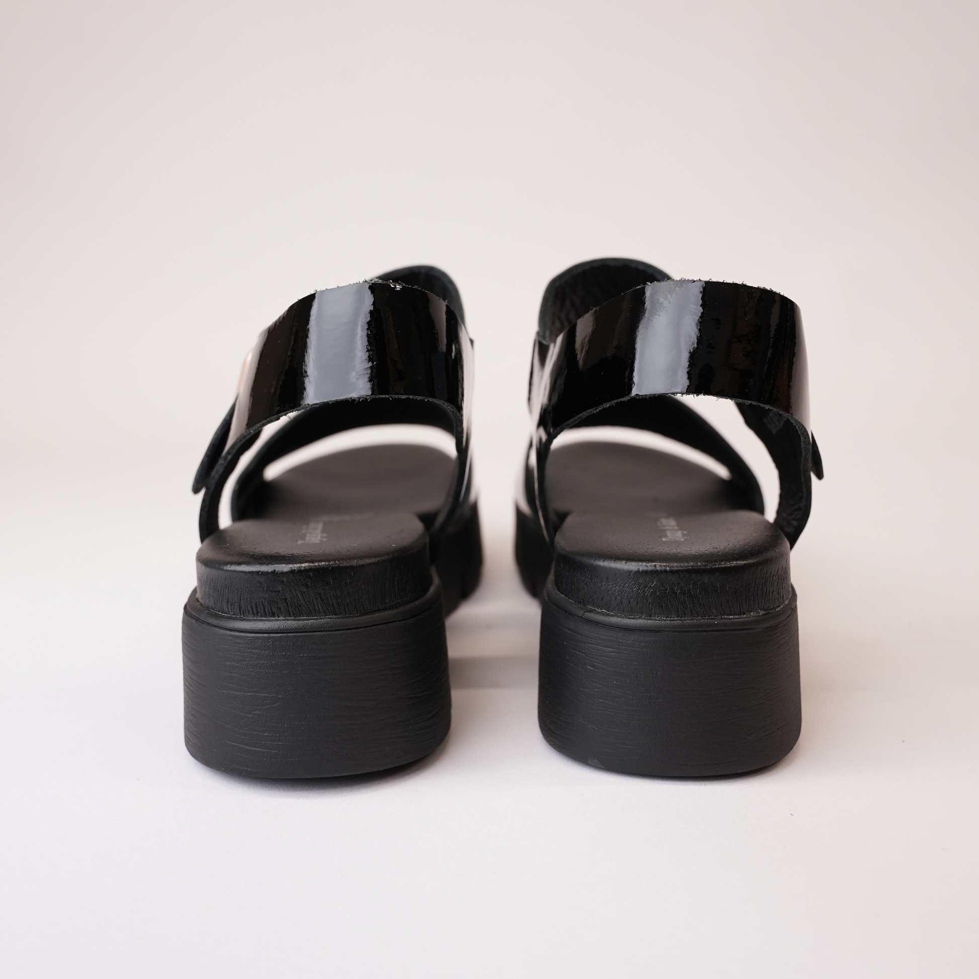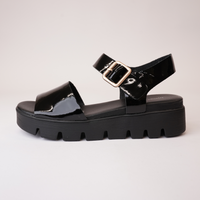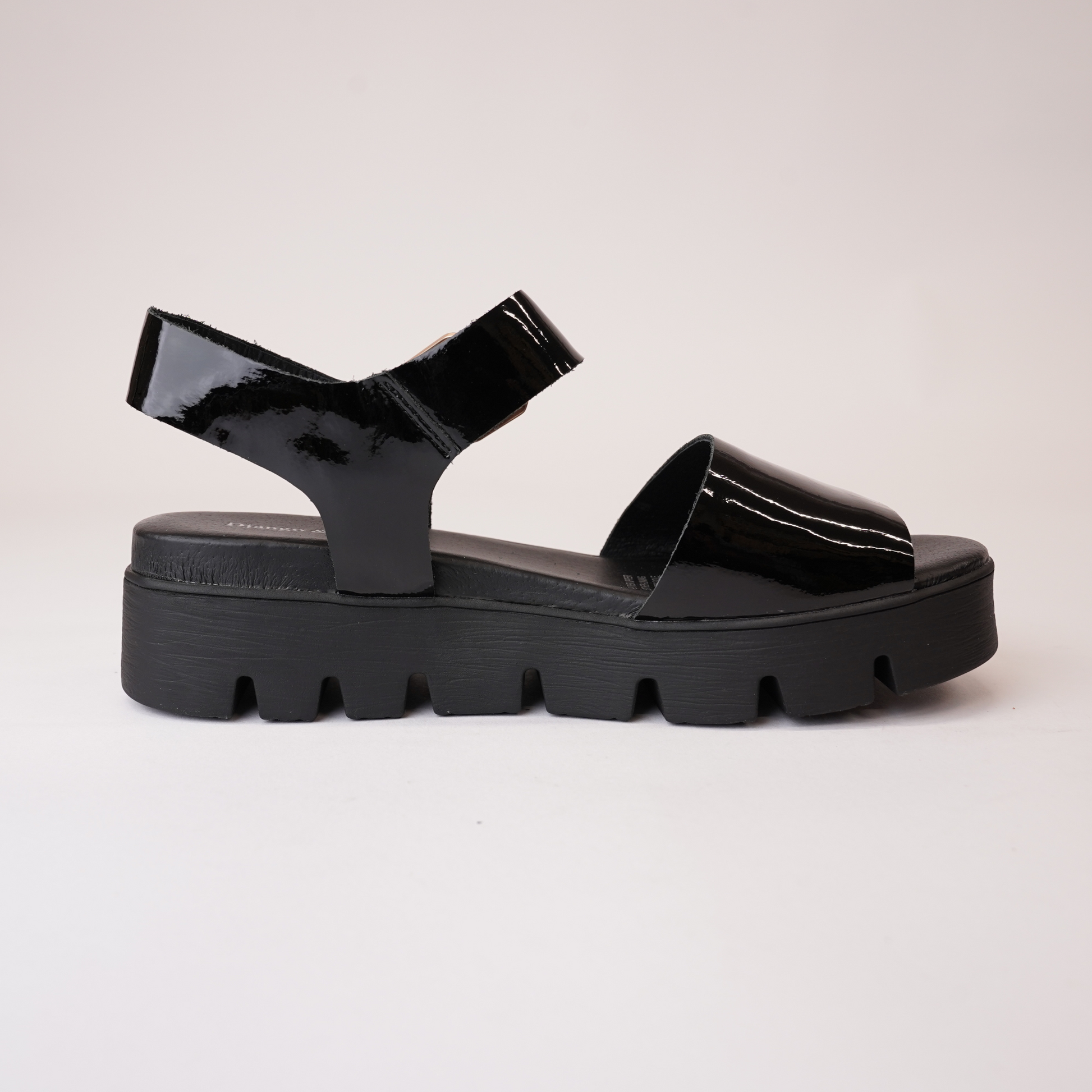 Embrace the unique style and comfort of Babels Black Patent Leather Sandals by Django & Juliette. With a leather upper and lining, these sandals offer a durable yet stylish option for any occasion. The chunky platform sole and 3.5cm heel add a touch of height, while the adjustable buckled ankle strap ensures a secure fit. Step out with confidence in these trendy sandals!
