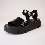 Embrace the unique style and comfort of Babels Black Patent Leather Sandals by Django & Juliette. With a leather upper and lining, these sandals offer a durable yet stylish option for any occasion. The chunky platform sole and 3.5cm heel add a touch of height, while the adjustable buckled ankle strap ensures a secure fit. Step out with confidence in these trendy sandals!