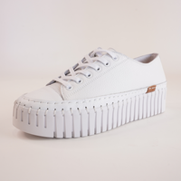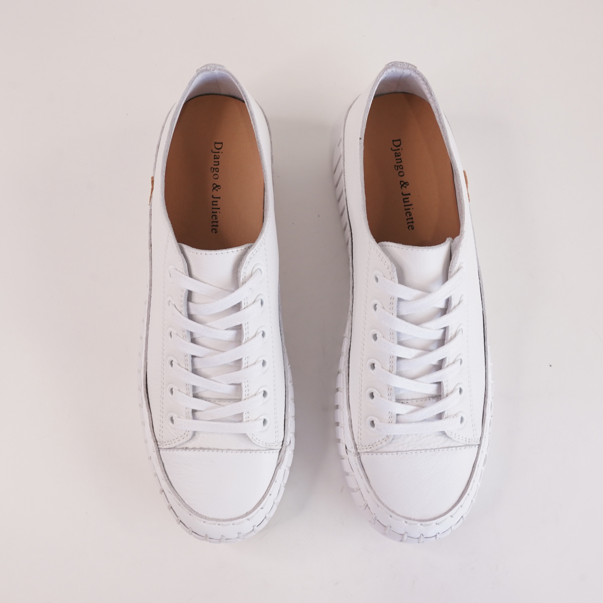 The Baselo White Leather Sneakers by Django & Juliette are the perfect blend of fashion and function. Crafted from soft, high-quality leather, these sneakers feature a chunky platform sole for a bold, modern look. With a removable cushioned insole, they’re orthotic-friendly, ensuring superior comfort and support all day long.