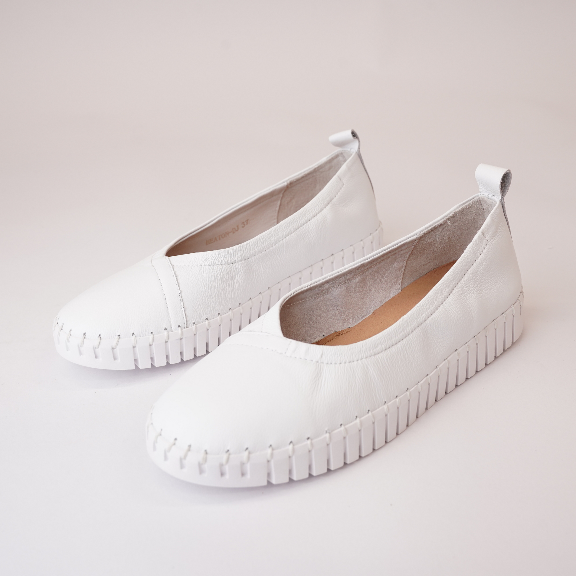 Indulge in comfort and style with Heaton White Ballet Flats by Django & Juliette. Crafted from leather and lined with the same luxurious material, these flats offer a soft and comfortable fit. The synthetic sole provides durability, while the 2cm sole and removable orthotic inner sole ensure maximum support. Complete with a convenient pull tab at the heel, these flats are a must-have.