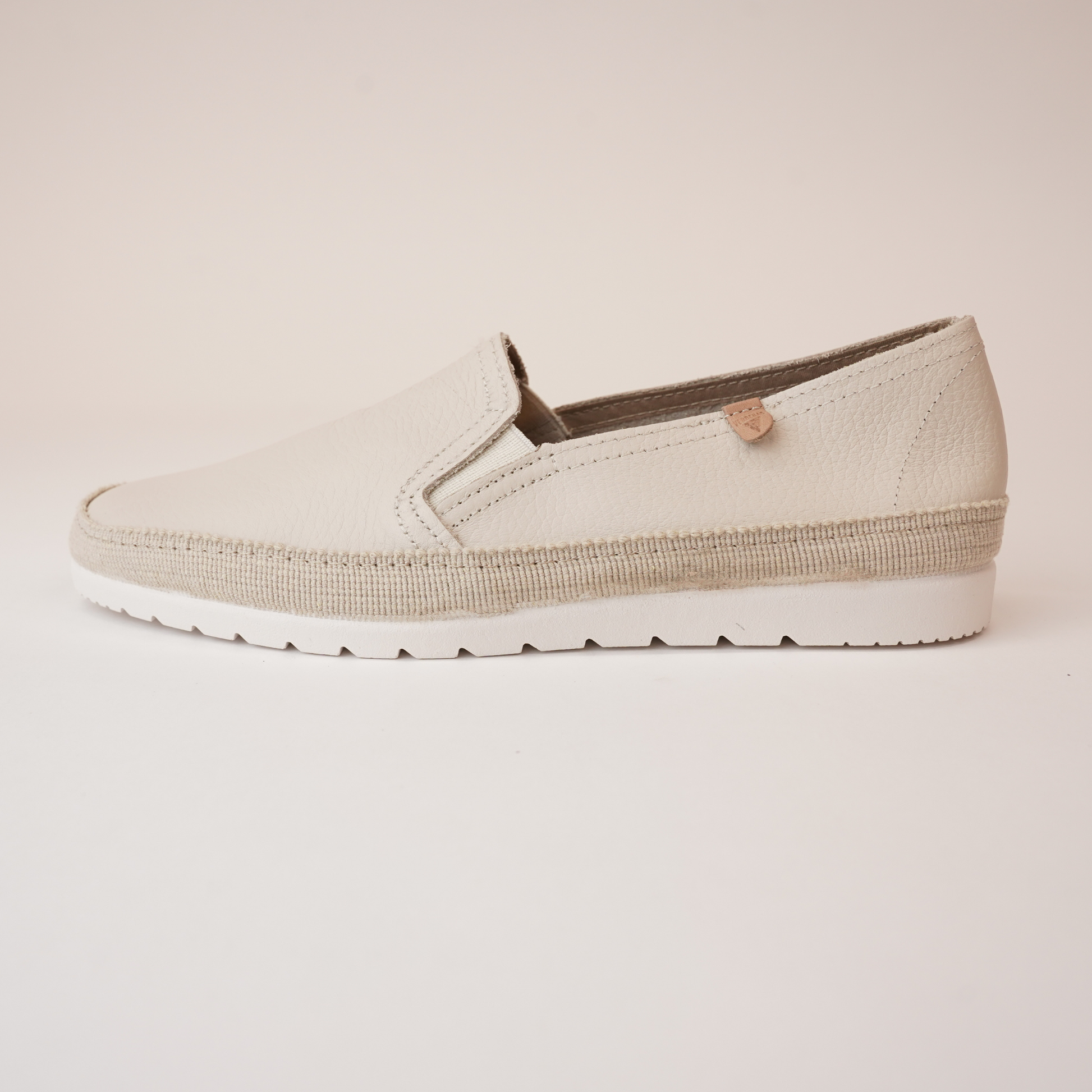 The Nuria Crudo Leather Espadrilles by Verbenas combine classic design with modern comfort. Crafted from soft leather, these slip-on espadrilles feature a neutral crudo tone, making them versatile for any wardrobe. The woven jute trim adds a traditional touch, while the lightweight, flexible sole ensures all-day comfort. Perfect for casual summer outings or a relaxed weekend look, these espadrilles offer both style and ease.