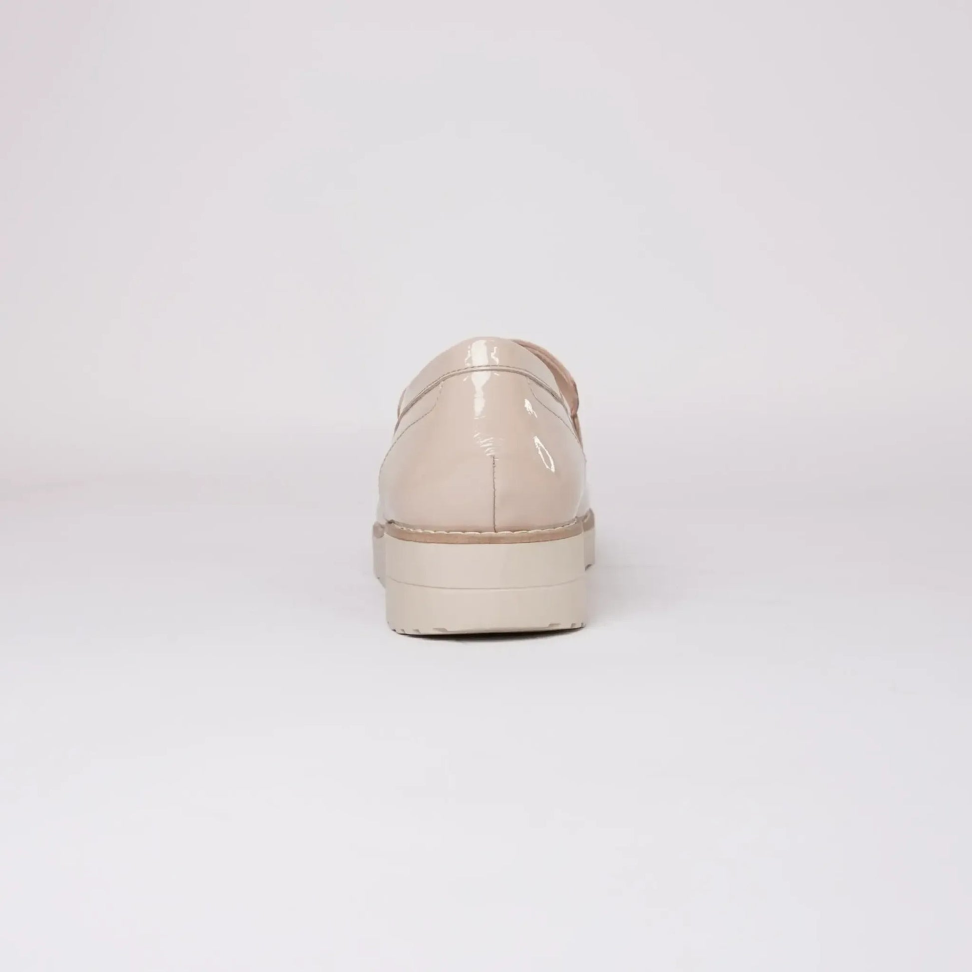 The Ozama Cafe Patent Leather Loafers by Top End are the perfect blend of style and comfort. With a sleek leather upper and lining, along with a 3cm wedge heel, these loafers will keep your feet feeling and looking great all day long. And with a gold chain detail across the vamp, you'll add a touch of elegance to any outfit. Step into luxury with these loafers!