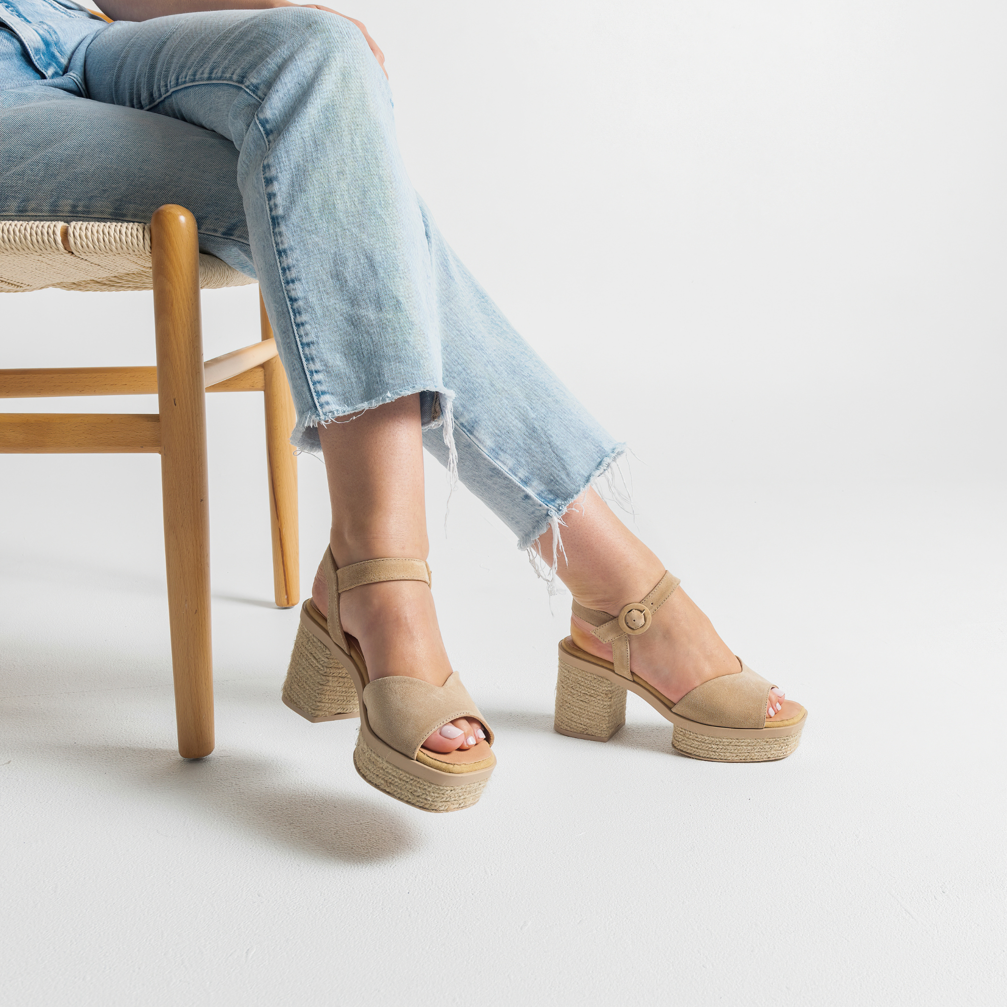 Gain height and style with Prinia Camello Leather Espadrille Heels by Gaimo. Made in Spain, these quirky heels feature a suede leather upper, lined buckle closure, and a 9cm organic jute block heel for added comfort. Perfect for a striking finishing touch without sacrificing comfort.