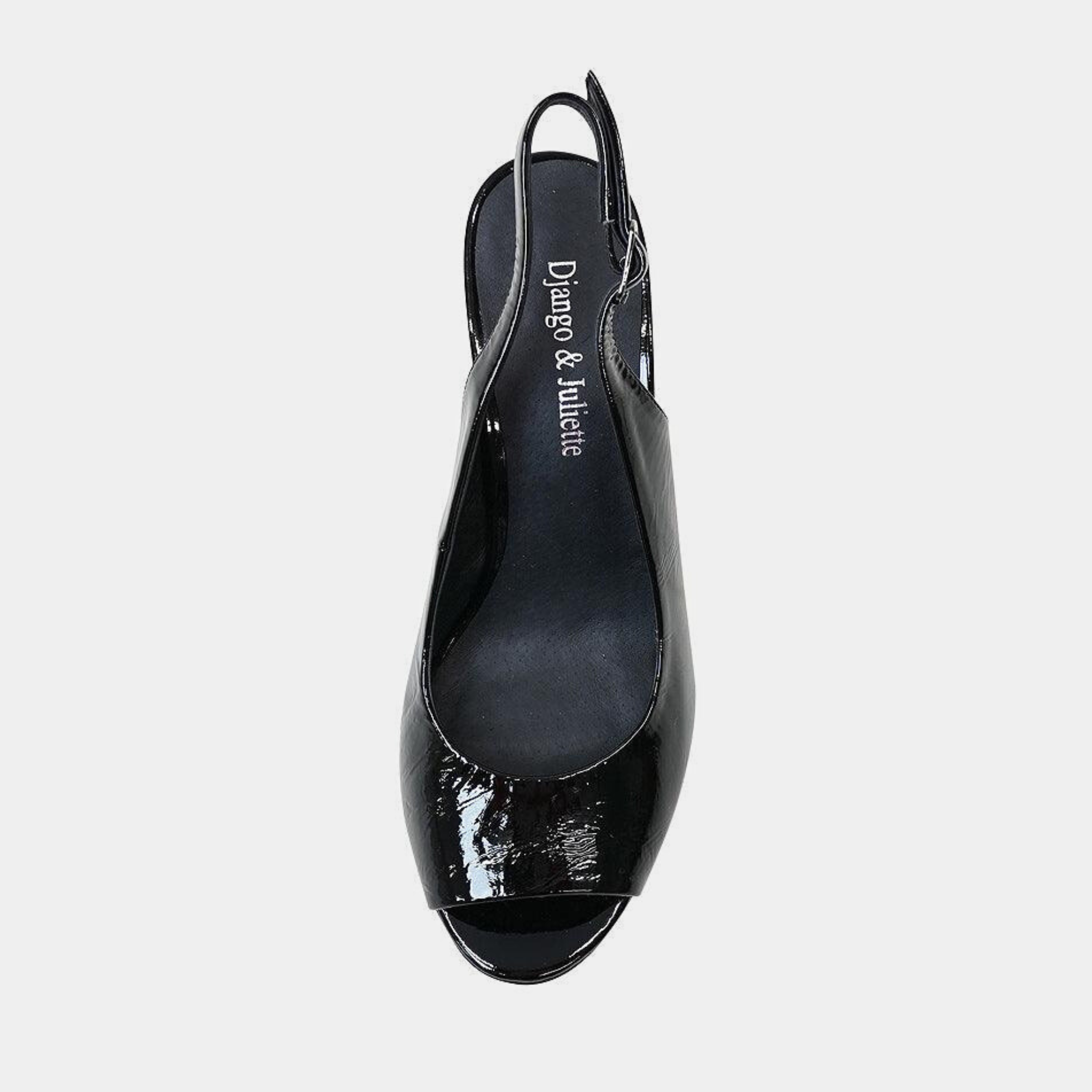 Meet Django & Juliette's stunning slingback heel, Kianna. Made with beautiful patent leather, this peep-toe heel is the wardrobe staple that every woman needs in her life. Kianna has an 8cm heel, adjustable slingback and metallic detail on the inner heel that gives Kianna a subtle point of difference. Wear Kianna with your work clothes to dress up your 9-5 look or with a beautiful flowy dress to a wedding, this versatile heel can do both!