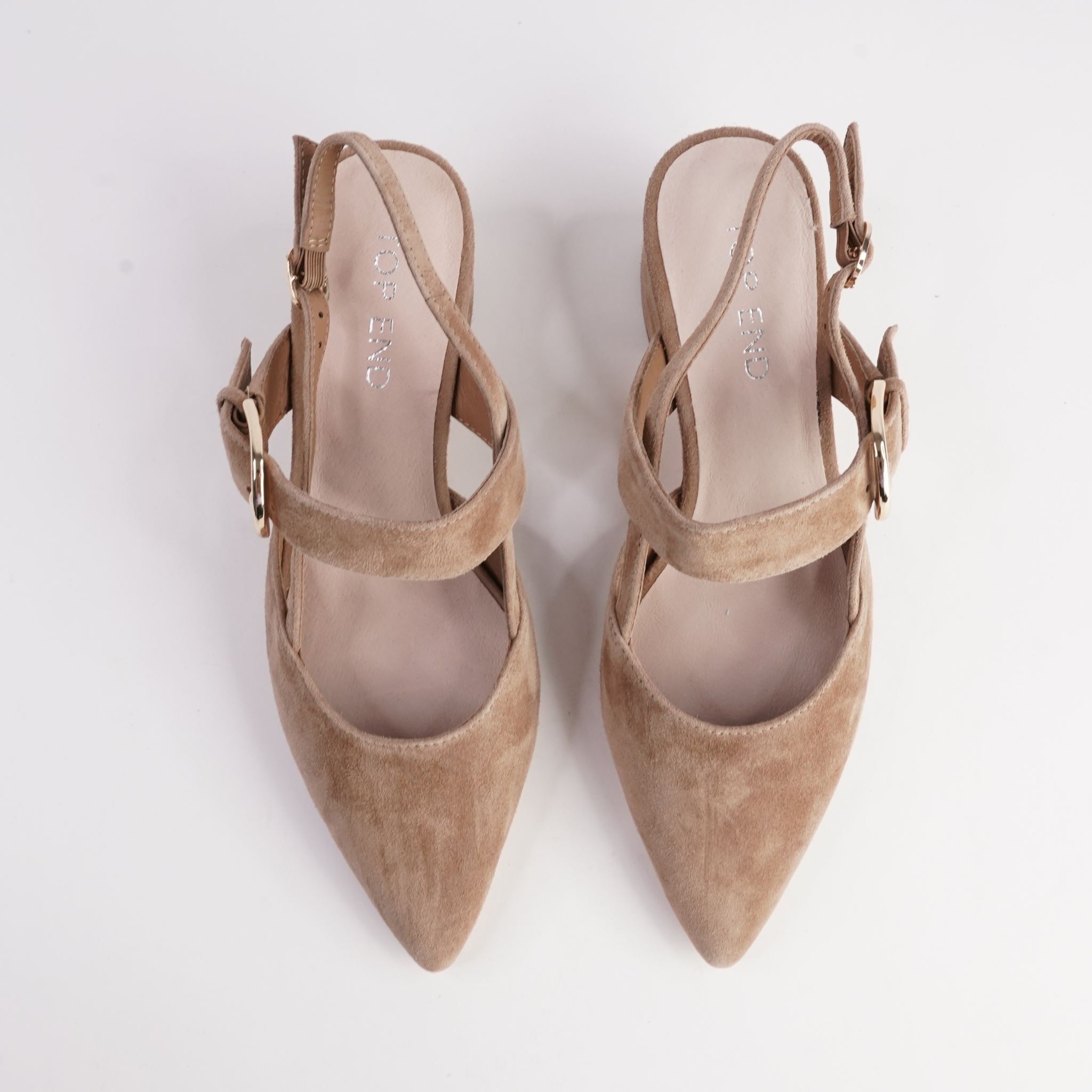 • Slim buckled heel strap
