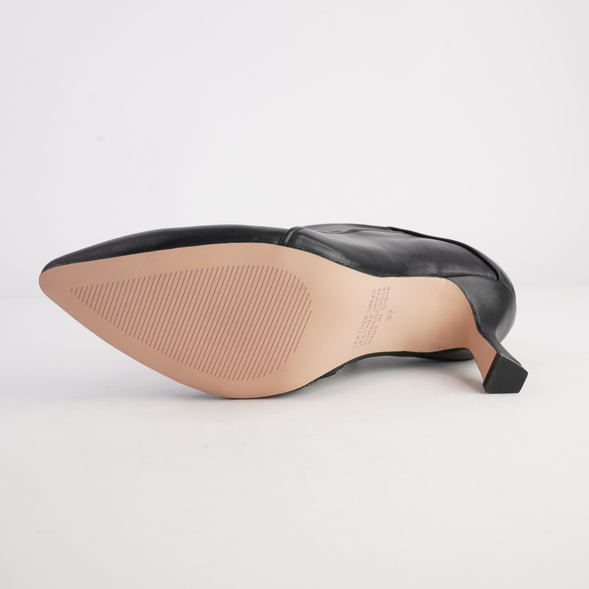 Sleek and sophisticated, the Lazel Heels by Top End bring a modern edge to classic styling. Crafted from smooth black leather, this refined silhouette features clean, layered panel detailing and a pointed toe for an effortlessly polished finish. Perfect for work or after-dark dressing, Lazel is your go-to for understated elegance.