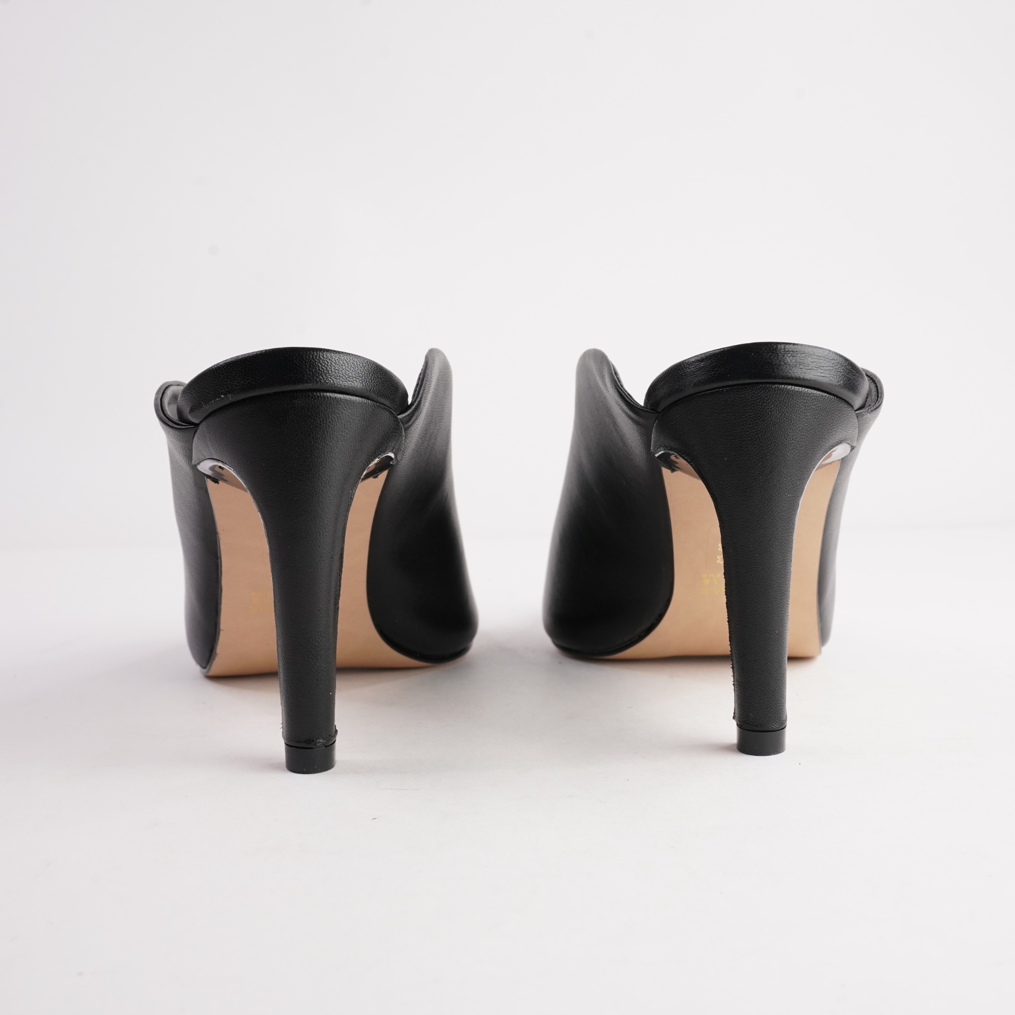 Sleek, sculptural and effortlessly sophisticated, the Xalina Heels by Nu by Neo are designed to make a statement. Crafted from smooth black leather, this elevated mule features a clean, minimal upper paired with a striking metallic heel for a modern edge. The open toe silhouette adds a touch of allure, making it the perfect choice for evening styling or refined day-to-night looks.
