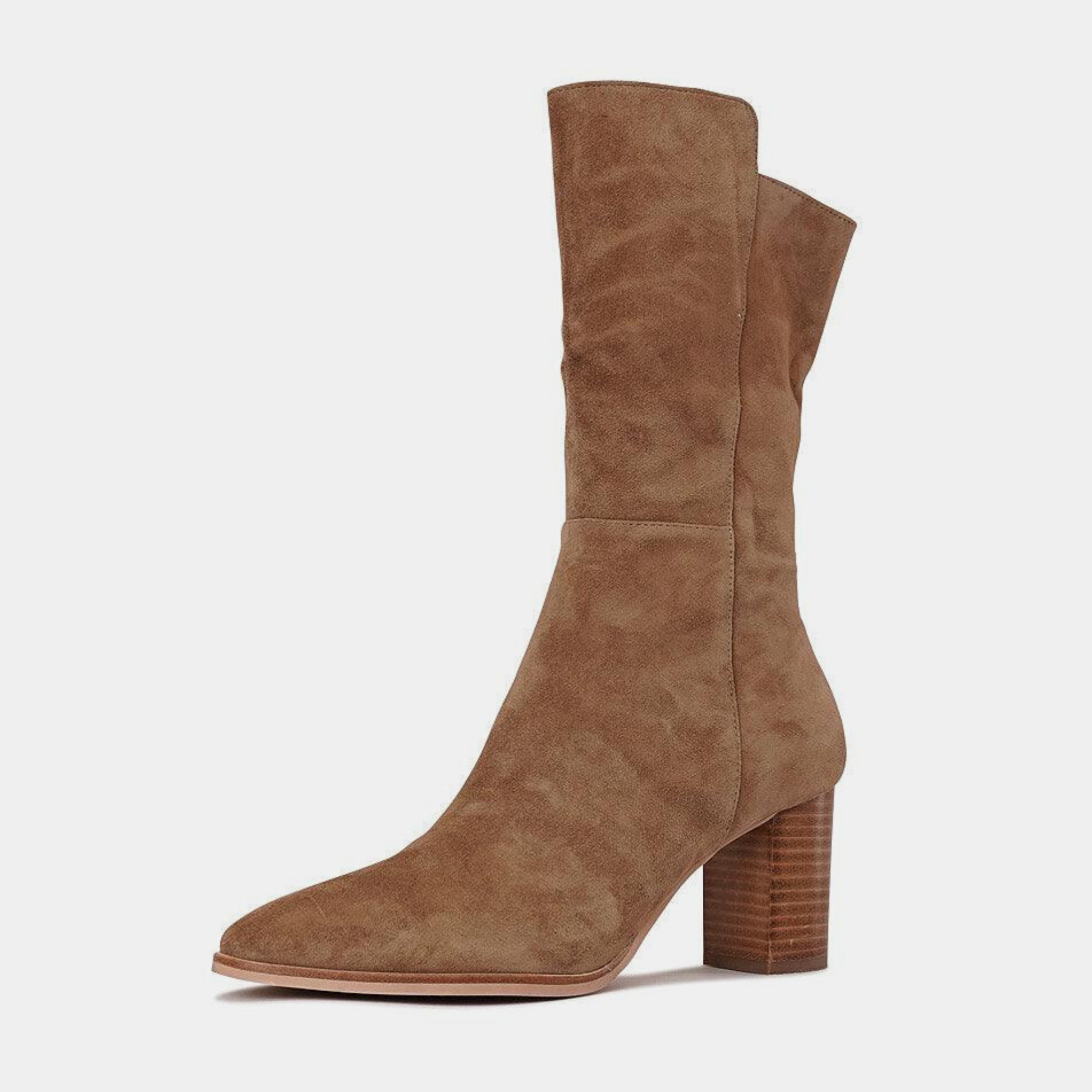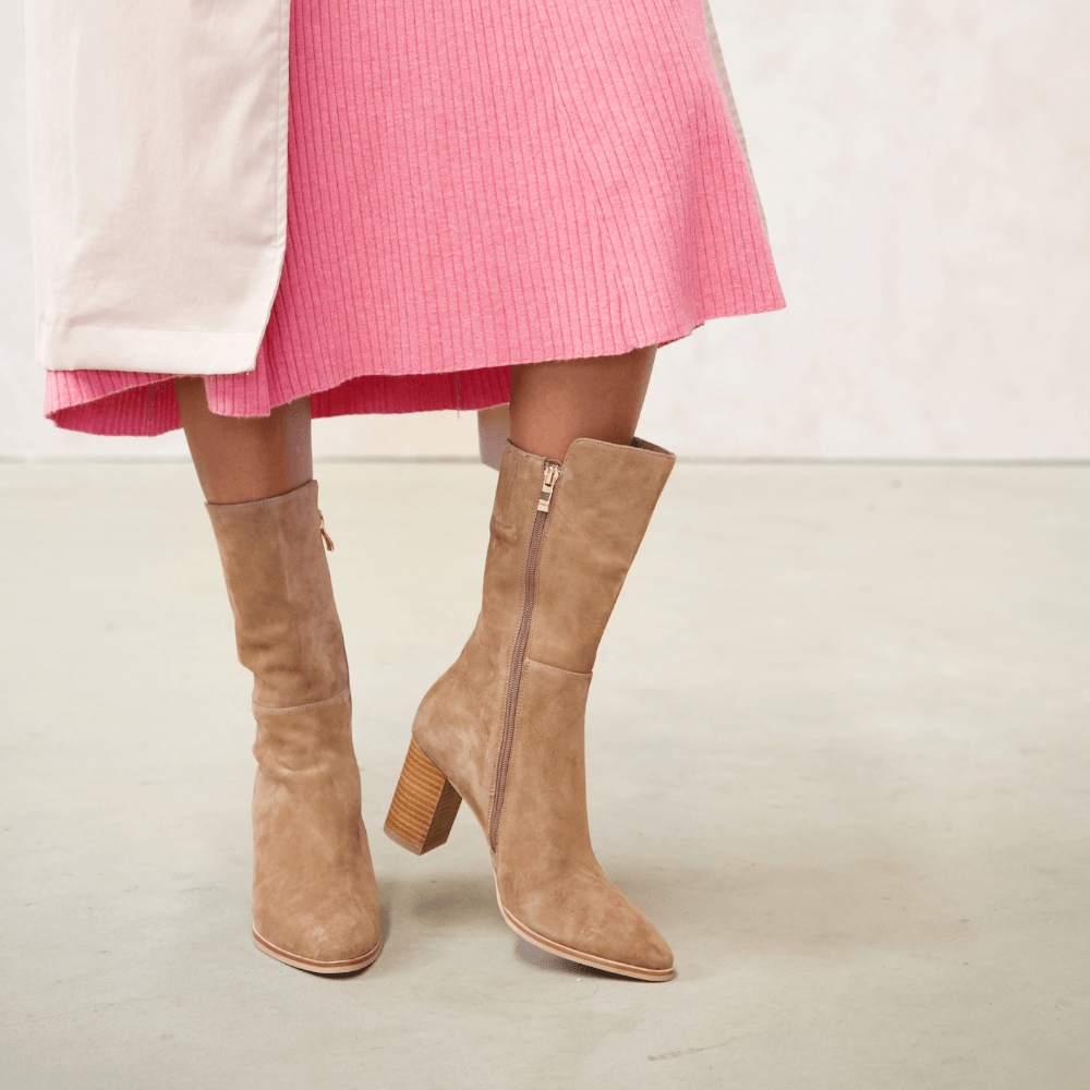 These Aisley Light Choc Suede Boots by Django & Juliette are a perfect blend of style and comfort. Crafted from luxurious leather with a soft suede finish, they feature a functional metal zip and elasticated pleats for ease of wear. The 7.5cm heel adds a touch of elegance, while the padded inner sole provides extra cushioning for all-day wear. Experience sophistication and support with these must-have boots.