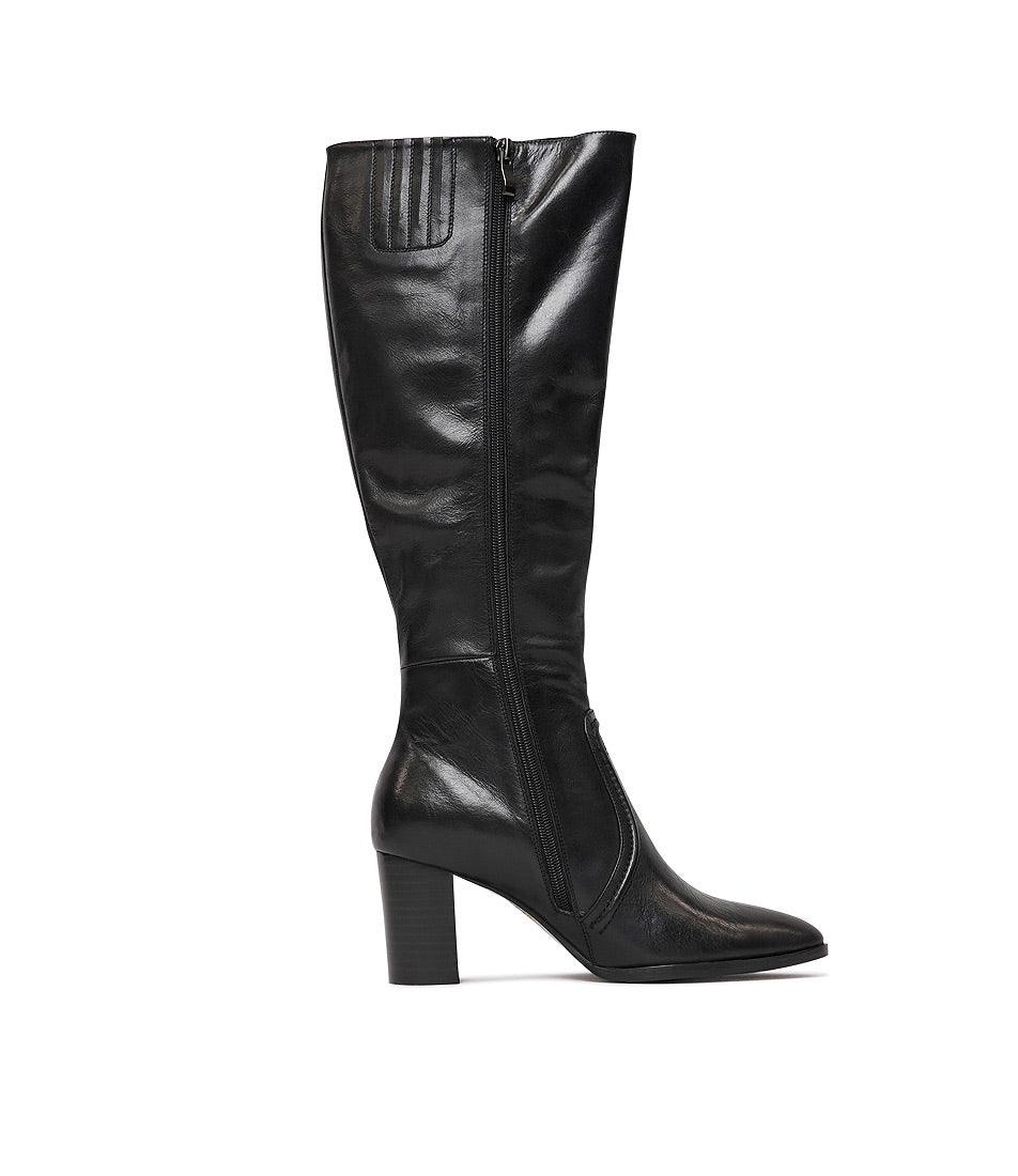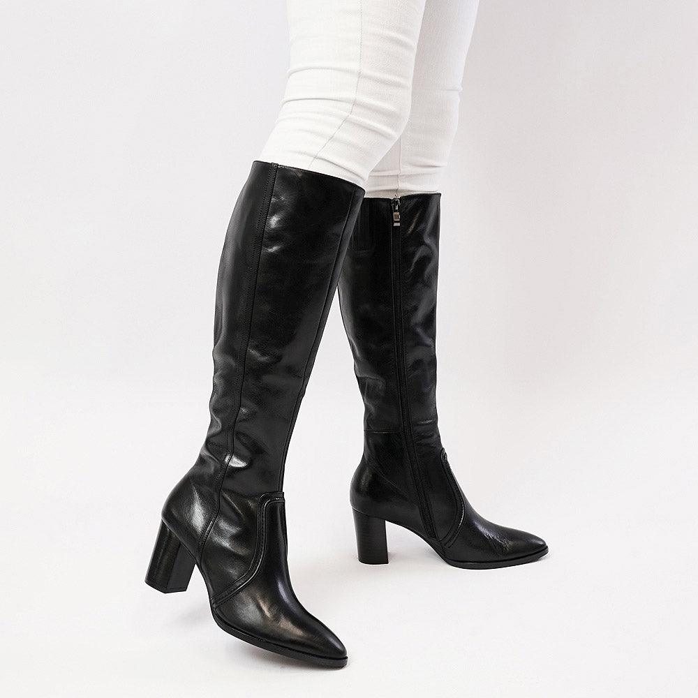 The Ammies Black knee-high boots by Django & Juliette are set on a 7.5cm block heel and feature an almond toe, stitching detailing on the vamp and a knee-high cuff. Style yours with everything from midi skirts and dresses to jeans and pantsuits.