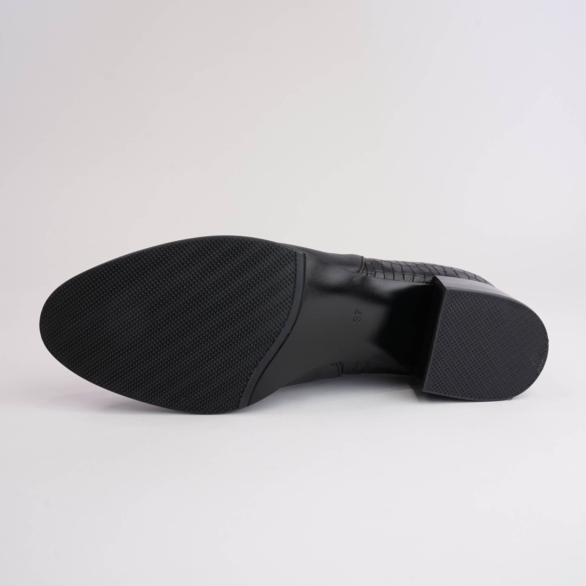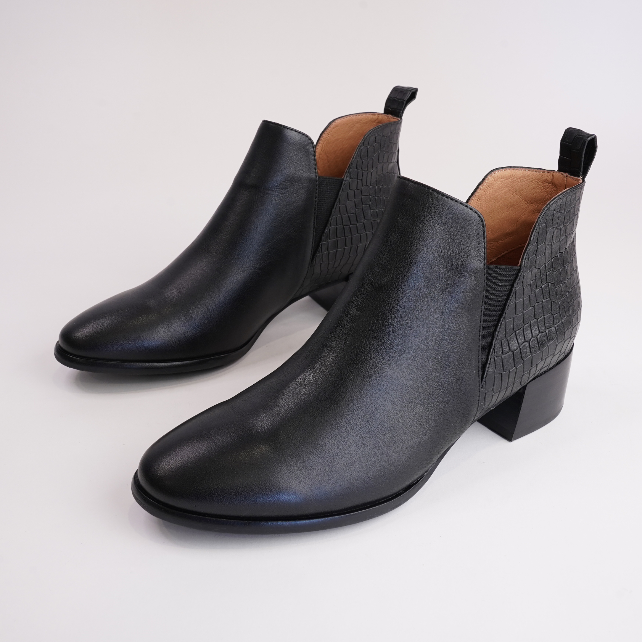 The Anexia Black Croc Leather Ankle Boots by Bresley feature a low shaft that hits just above the ankle. They also feature a croc-embossed heel, elasticated side gussets and a tapered silhouette. Style yours from autumn through to spring with your favourite workwear and casual pieces.