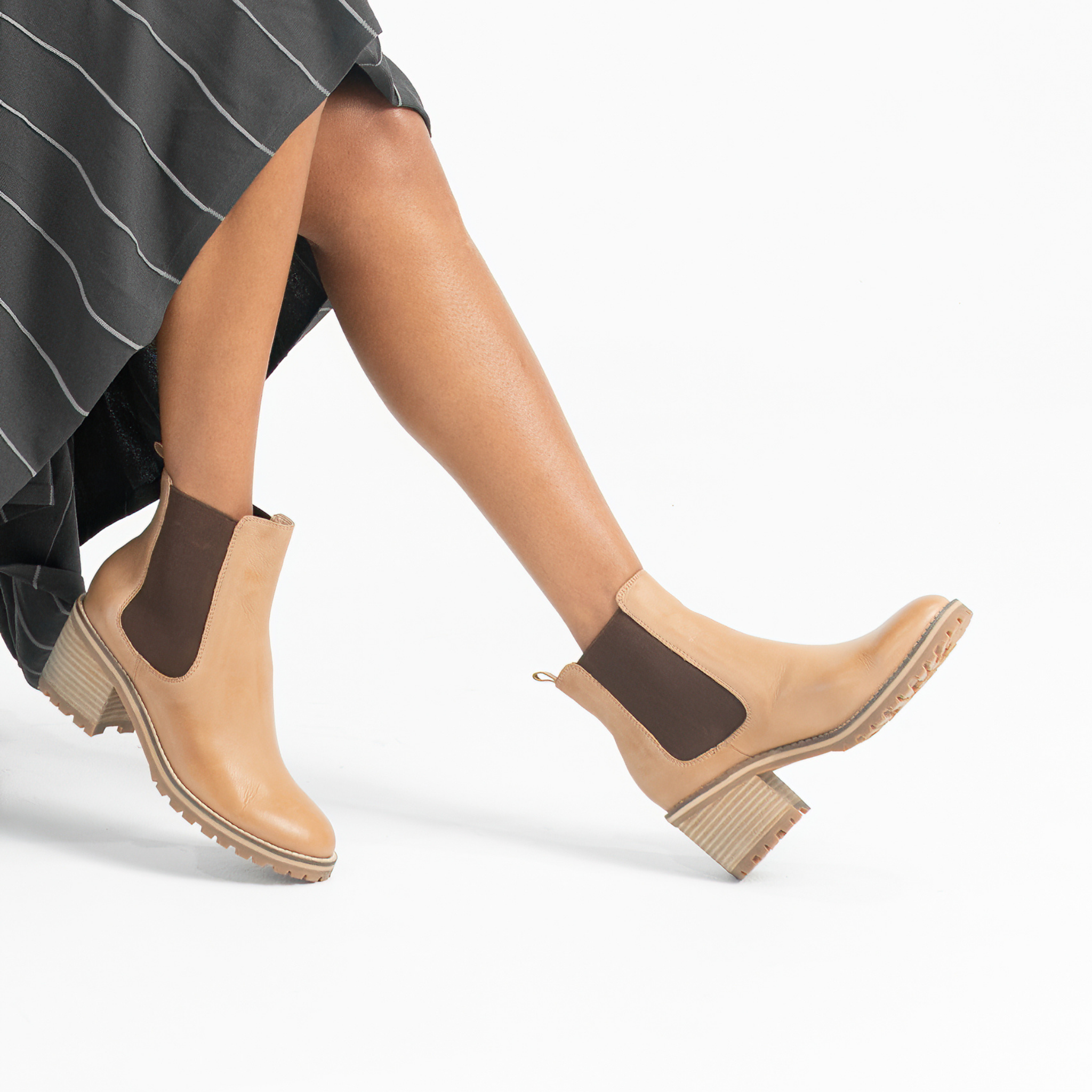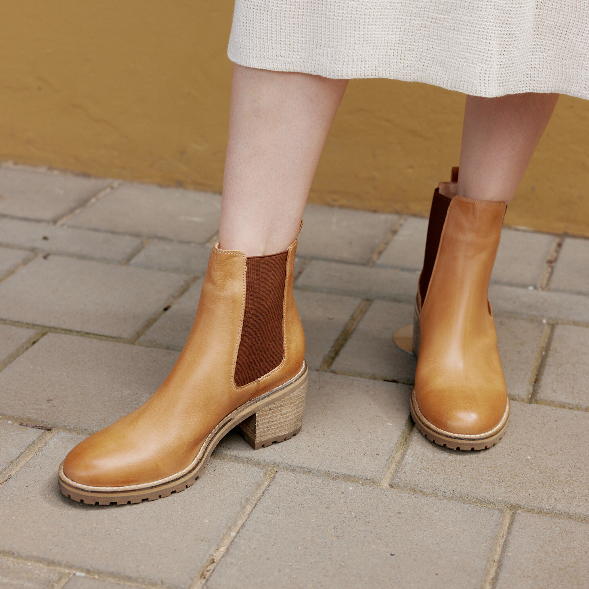 Durability meets style with Mollini's Biscotti Dark Tan ankle boots. With a cleated sole and stacked heel, you can wear the Biscotti through winter and beyond. This boot is made for wineries - team it with wide-cut, frayed-hem jeans and a faux-fur coat for the perfect weekend outfit.