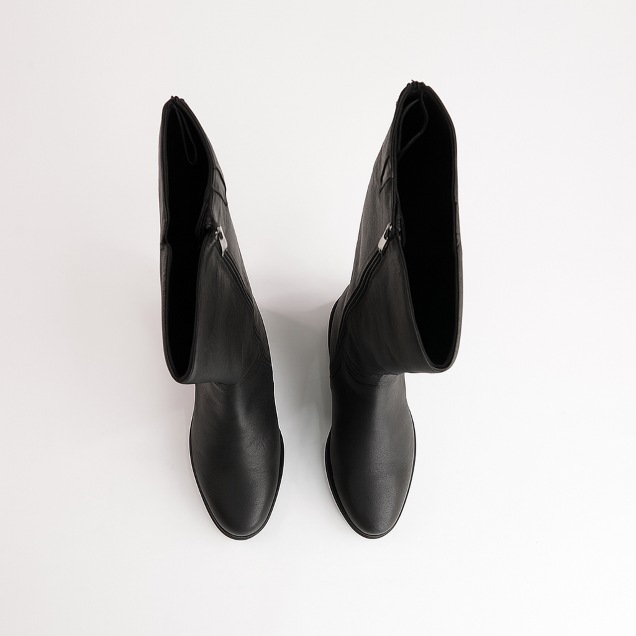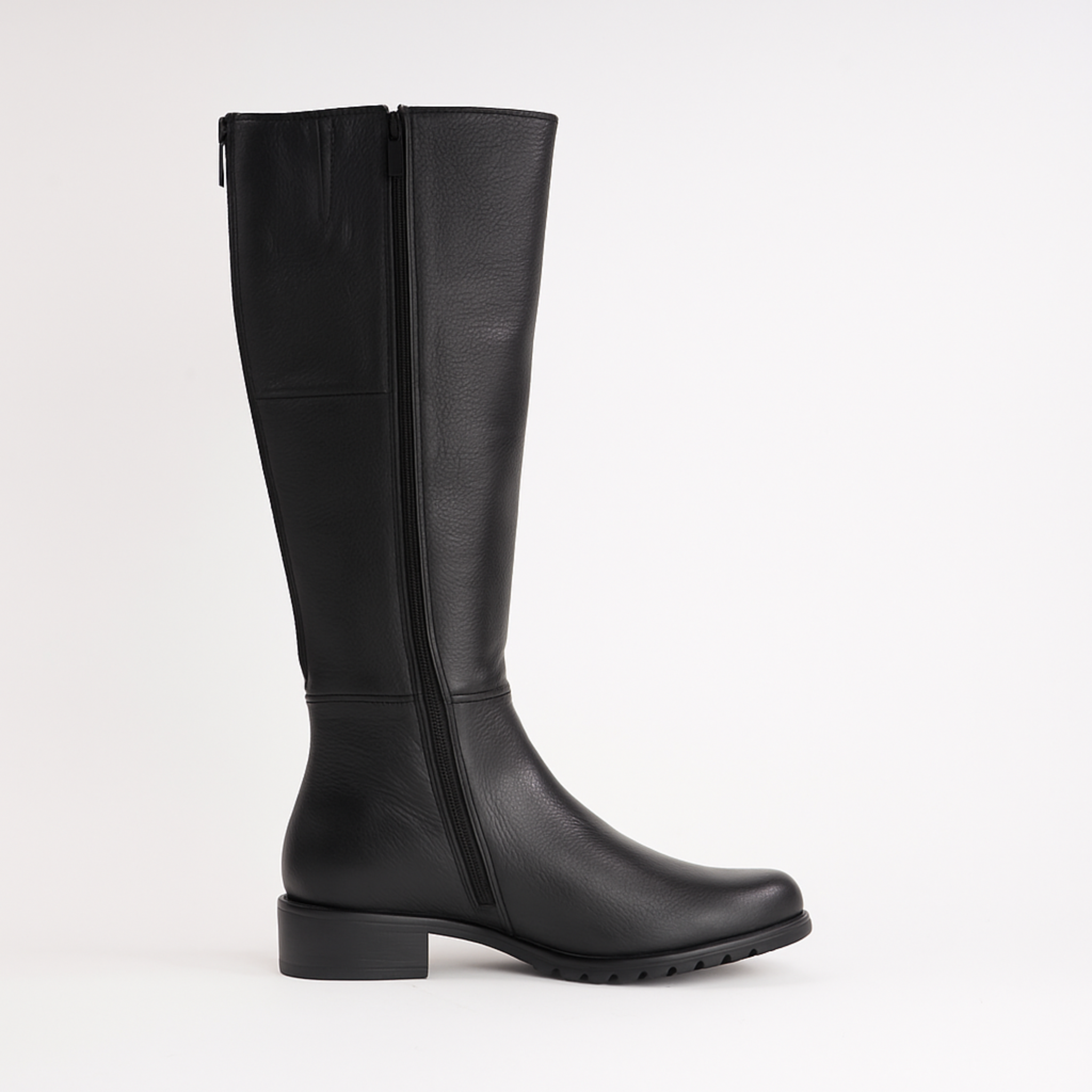 Make a bold statement with the Josef Seibel's Chiara 01 in matte black leather. These knee-high boots fuse retro glam with everyday comfort, featuring a flexible sole, cushioned footbed, and stretch panel for an easy fit. Whether you're dressing up or keeping it classic, Chiara brings the shine.