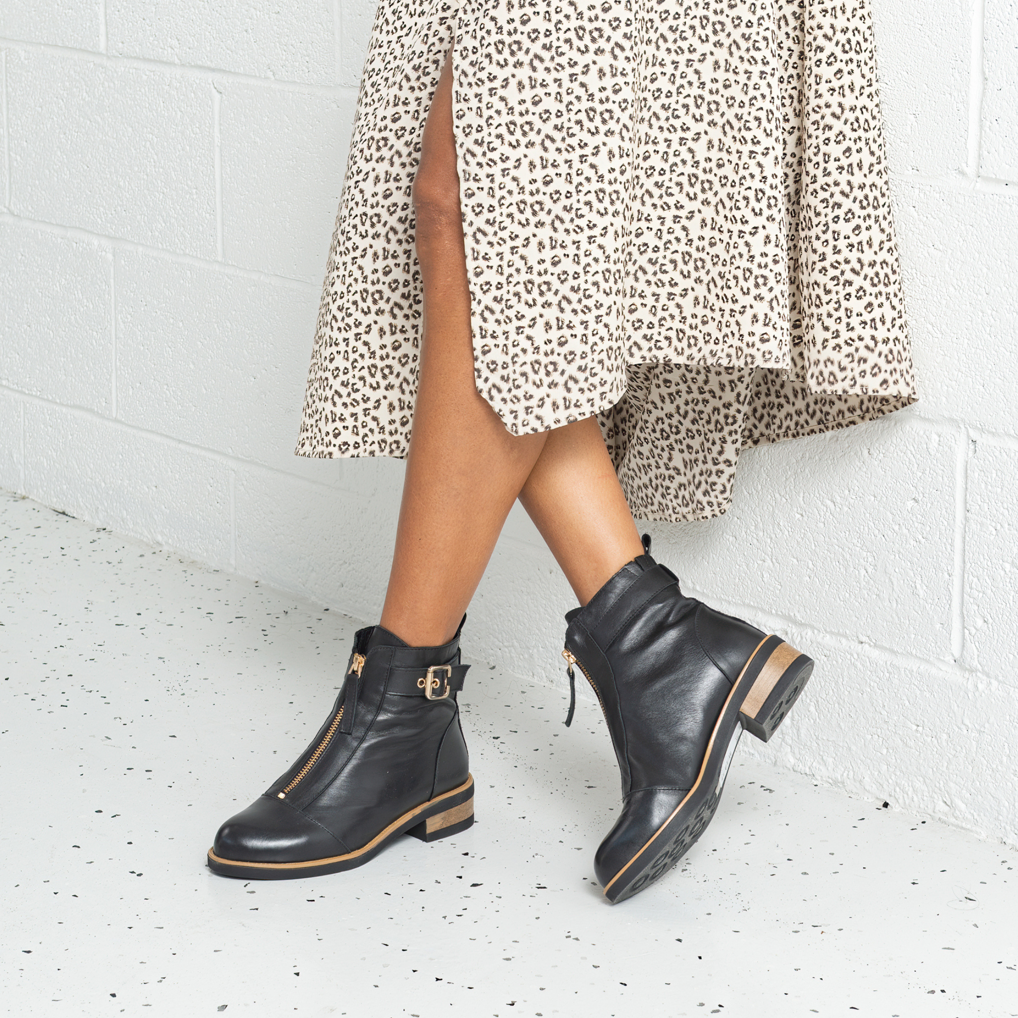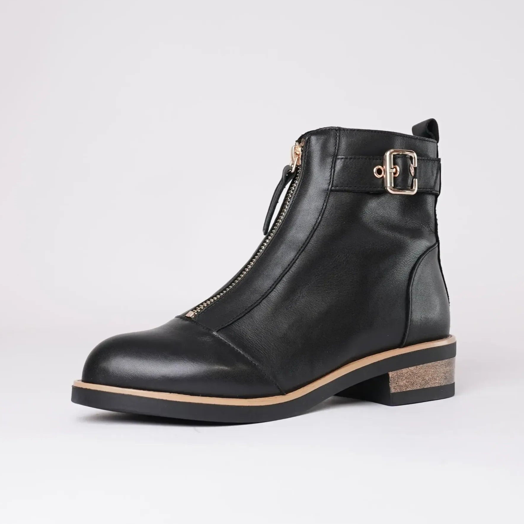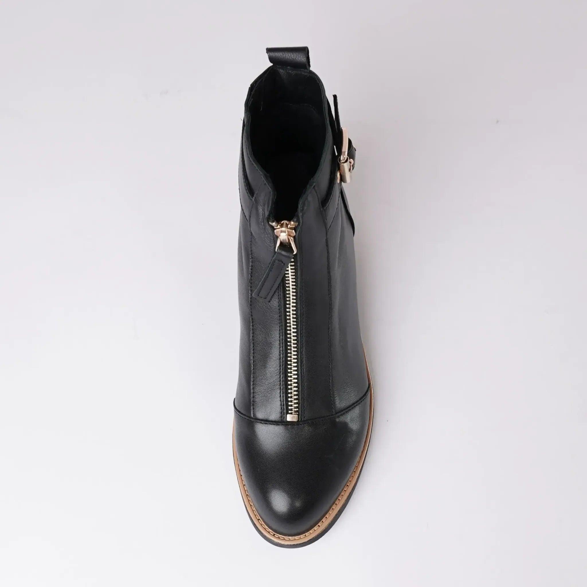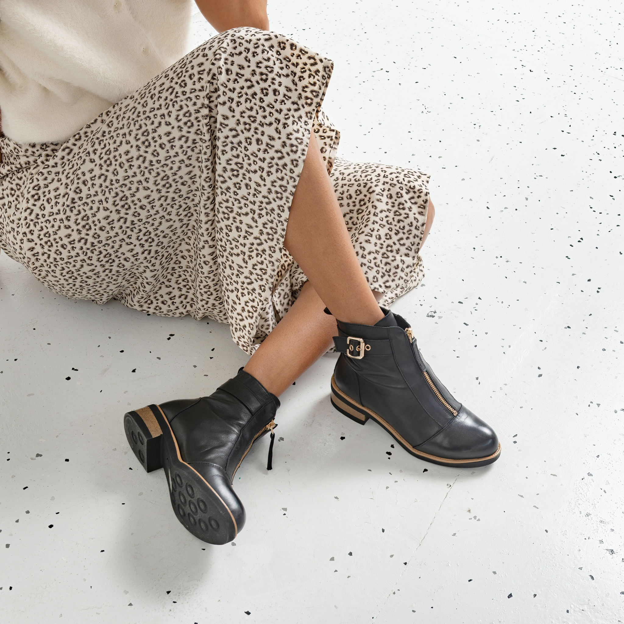 Introducing the Dooley Black Leather Ankle Boots by Bresley where style meets comfort and functionality. Made with a leather upper and lining, they feature a 3cm cork look and rubber heel, a functional metal zip and decorative buckle and strap. Plus, with a back pull tab and elasticated inner top, they are both easy to slip on and remove. Take on the day with these orthotic friendly boots!