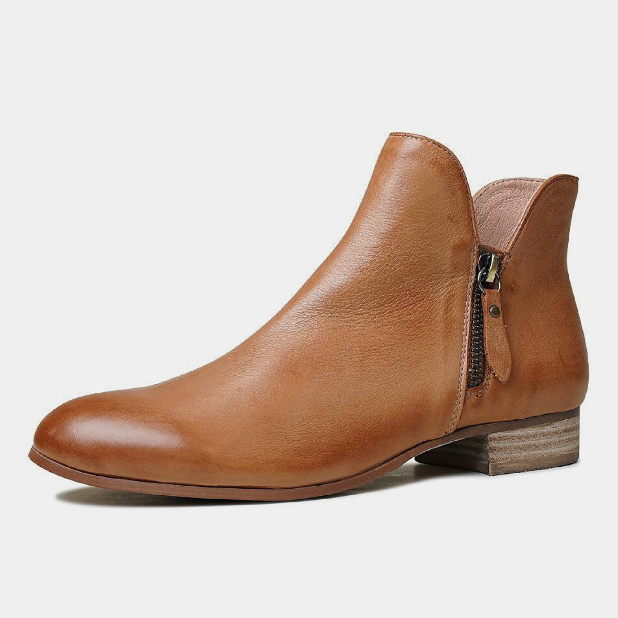Certain to become your winter go-to, the Faye Dark Tan ankle boot by Django & Juliette is an uncomplicated, elegant shoe for everyday. The side zips make for easy on-off with this flat boot. We also love its warm, bright tan leather that complements all our favourite winter essentials.